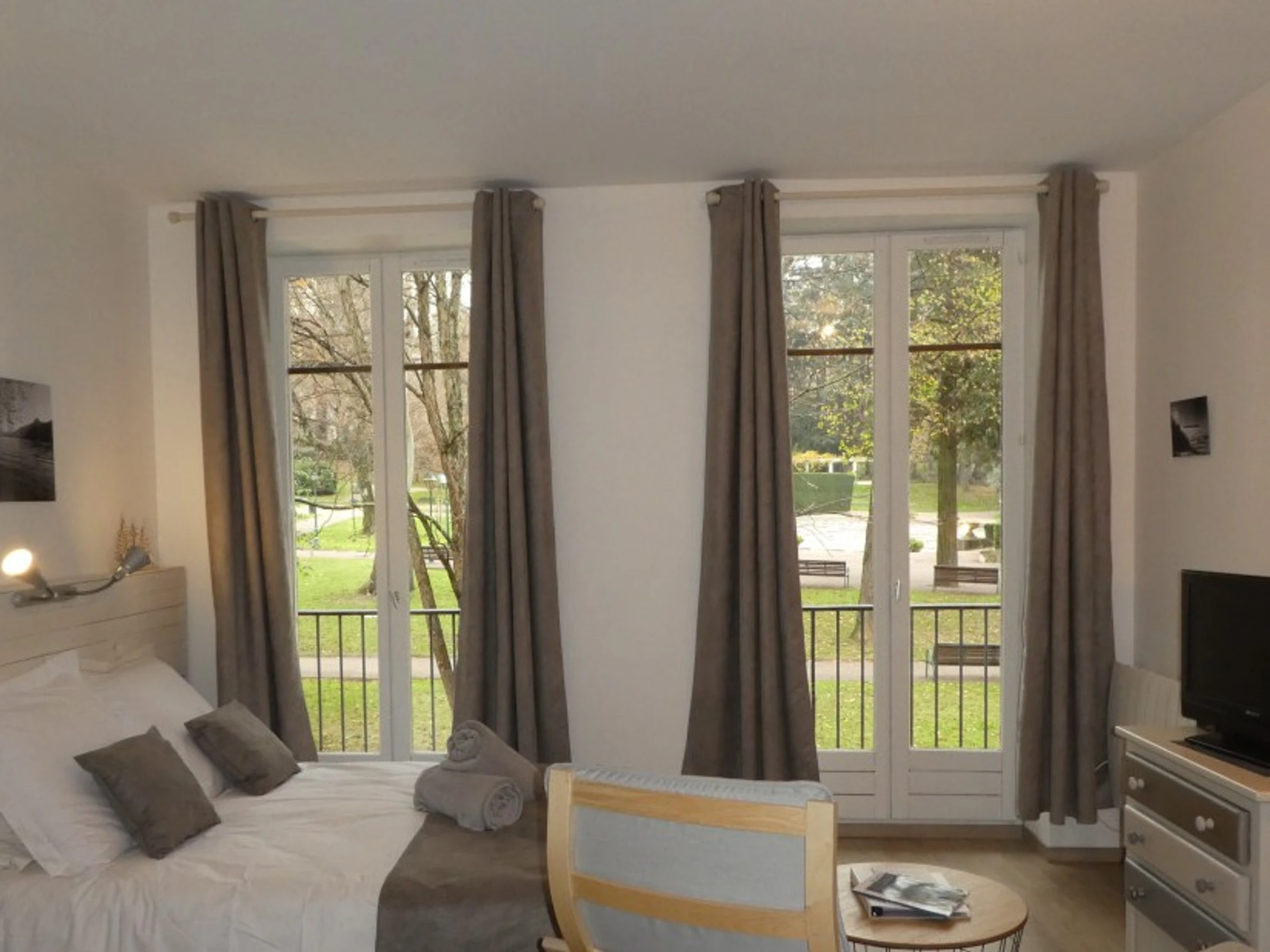 Dans un immeuble en copropriété, sécurisé, situé en centre ville, à proximité immédiate du Parc de Verdure, à proxmité des commerces, à 640 mètres de la Gare, à 1,5 km des Thermes Marlioz, à 1,2 km des Thermes Chevalley, à 260 mètres de l'Atrium (ancien Thermes) et à 3,7 km du Lac.