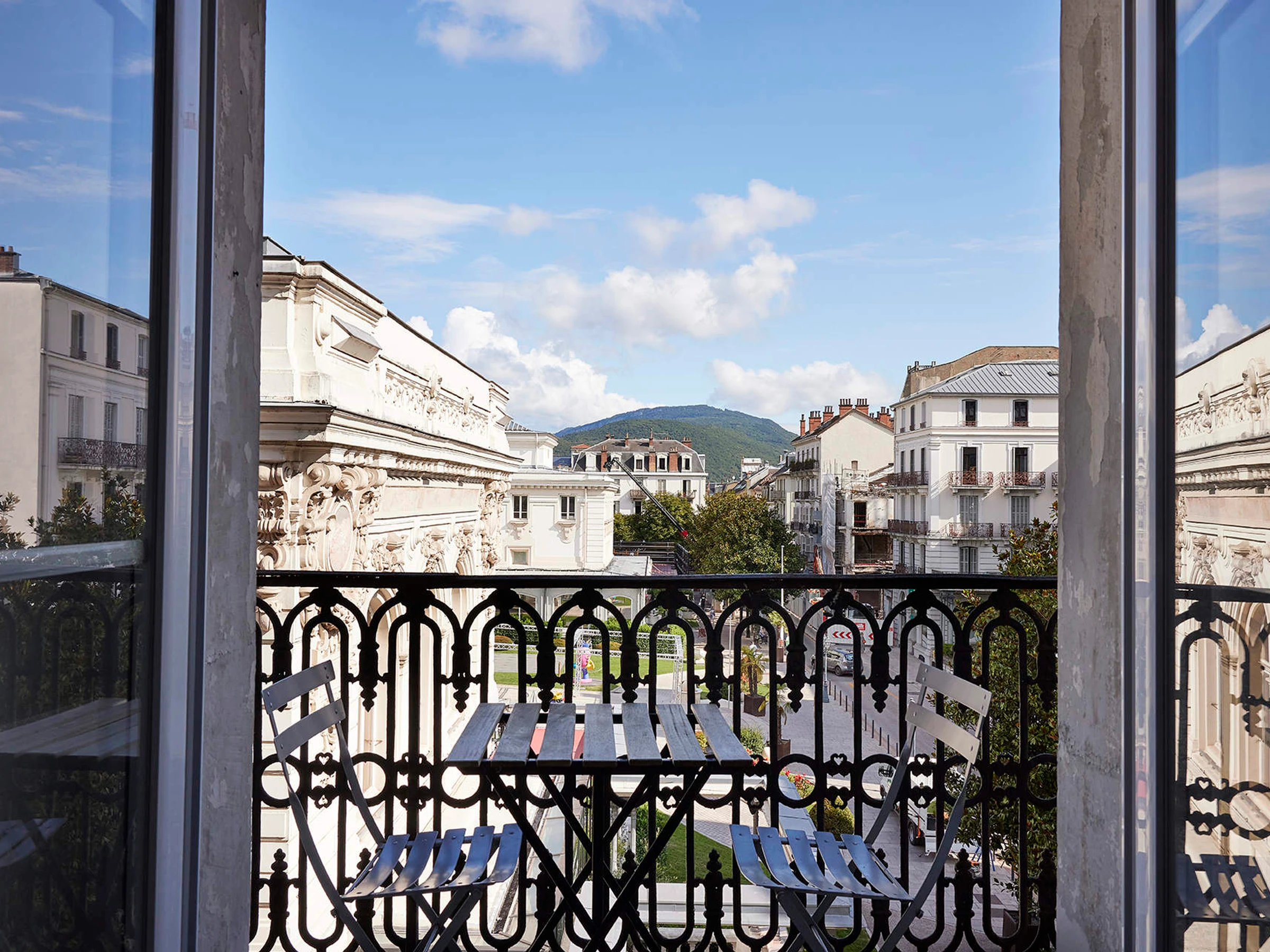 C'est le tout premier palace aixois construit en 1853, il est de style ART DECO, tout comme le Casino de la ville jouxtant cet édifice classé. Il est très recherché pour sa situation idéale : en plein cœur du centre-ville, à proximité des bus et de tous les commerces, du parc de verdure, de la Gare, à 15 min à pieds des Thermes Chevalley.