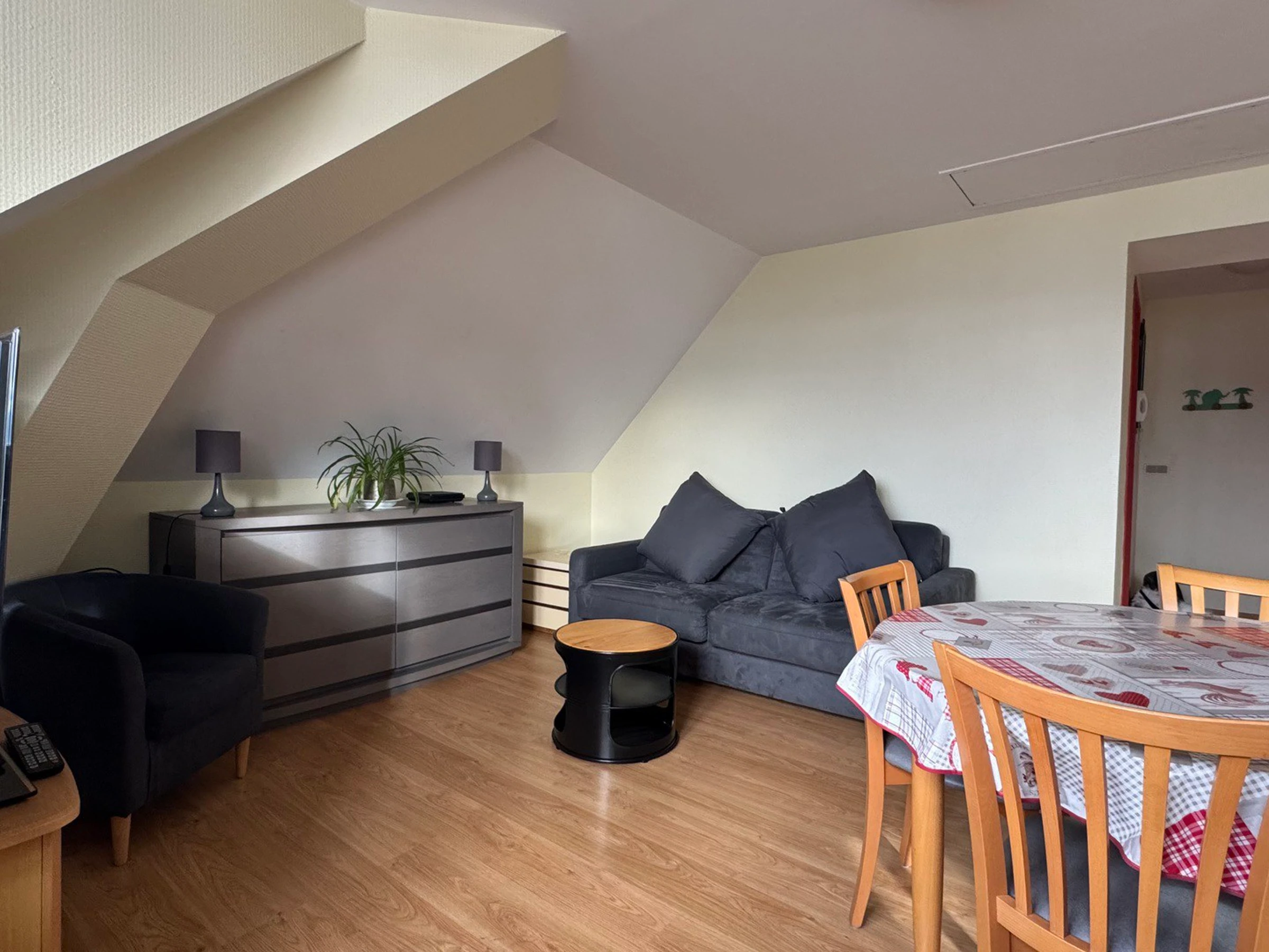 - PIECE PRINCIPALE (parquet - peinture) : table ronde avec 4 chaises, meuble TV + meuble, 1 bahut bas, 1 canapé 2 places (BZ), 1 fauteuil, 1 meuble bout de canapé avec tiroir.