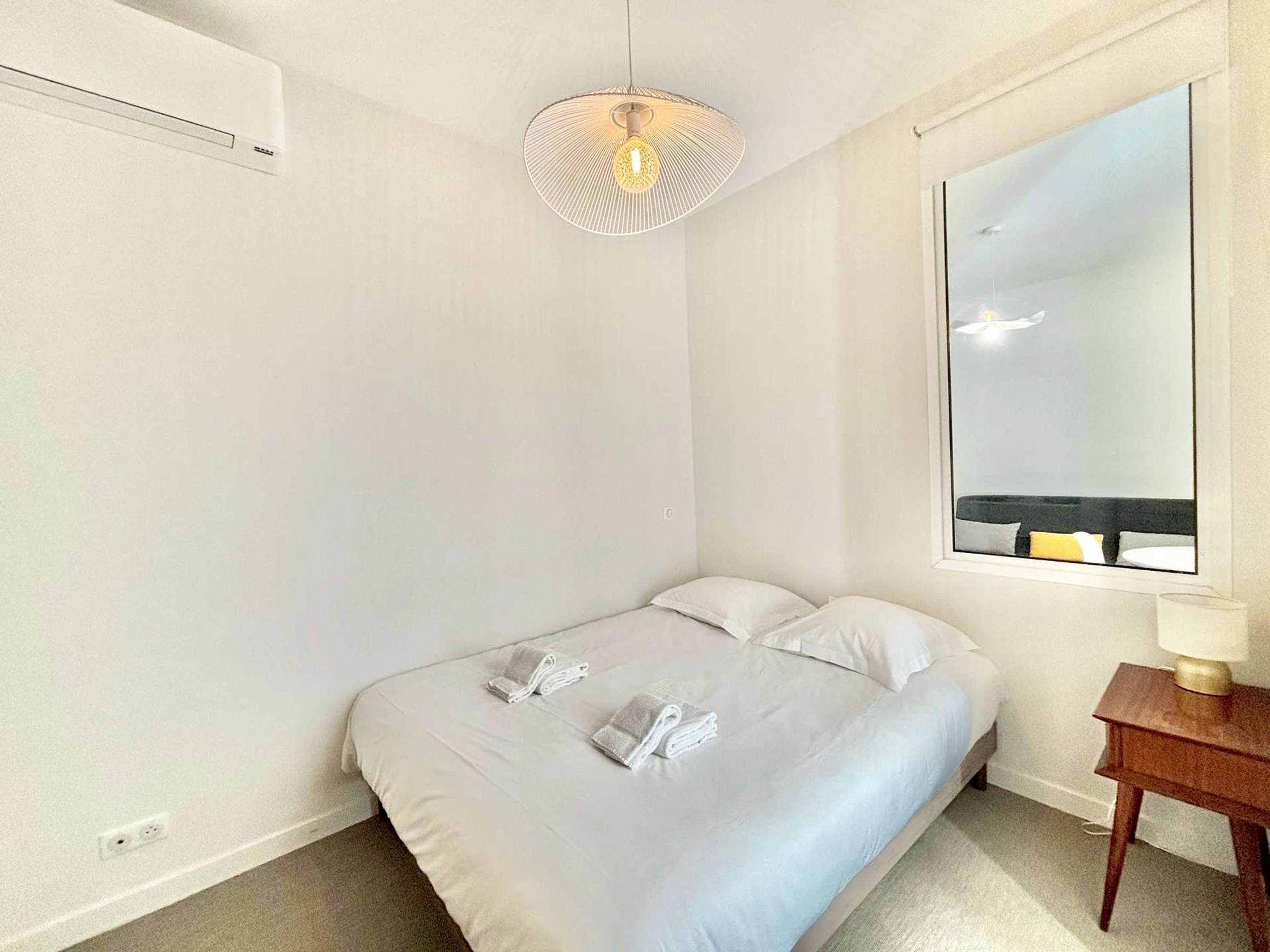L'appartement dispose d'un séjour climatisé, un espace cuisine et un coin nuit séparé, également climatisé.