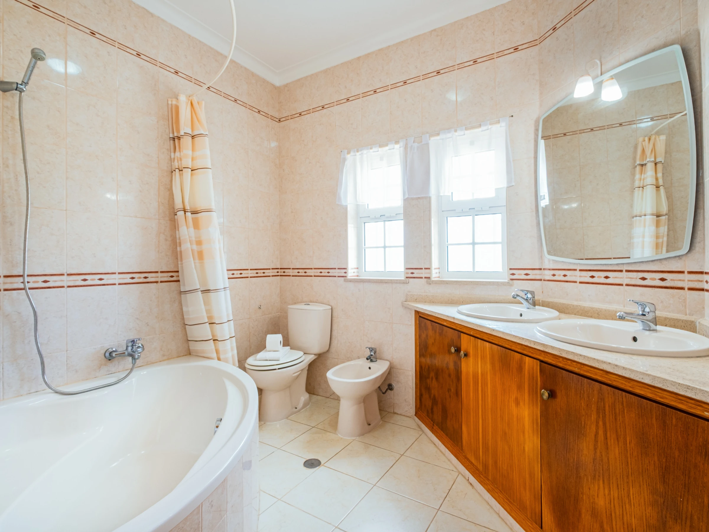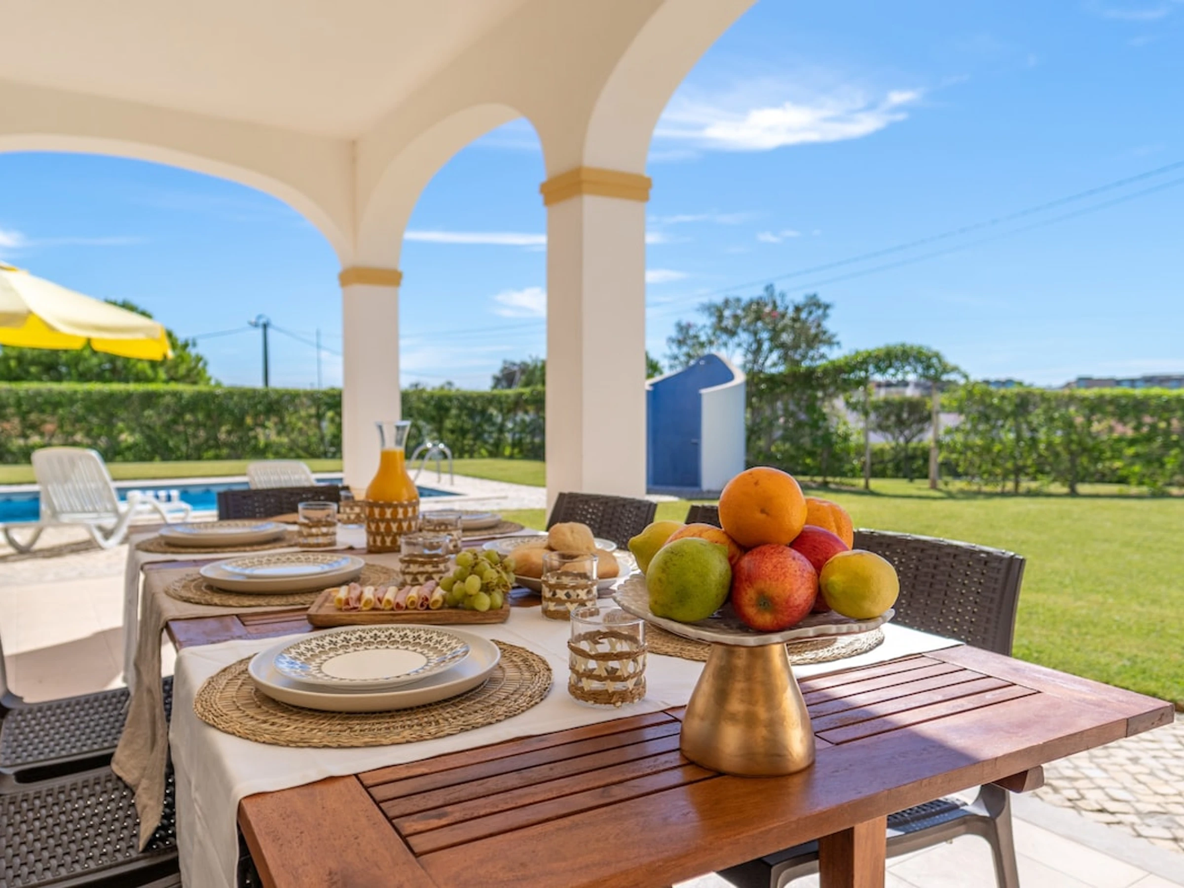 La villa a un décor typiquement portugais, avec des tuiles traditionnelles de l'Algarve. Il est doté de tout le matériel nécessaire pour des vacances équilibrées. Il dispose de 4 chambres équipées d'une salle de bain privative, et toutes disposent d'un balcon. La cuisine est spacieuse, tout comme le salon et la salle à manger.