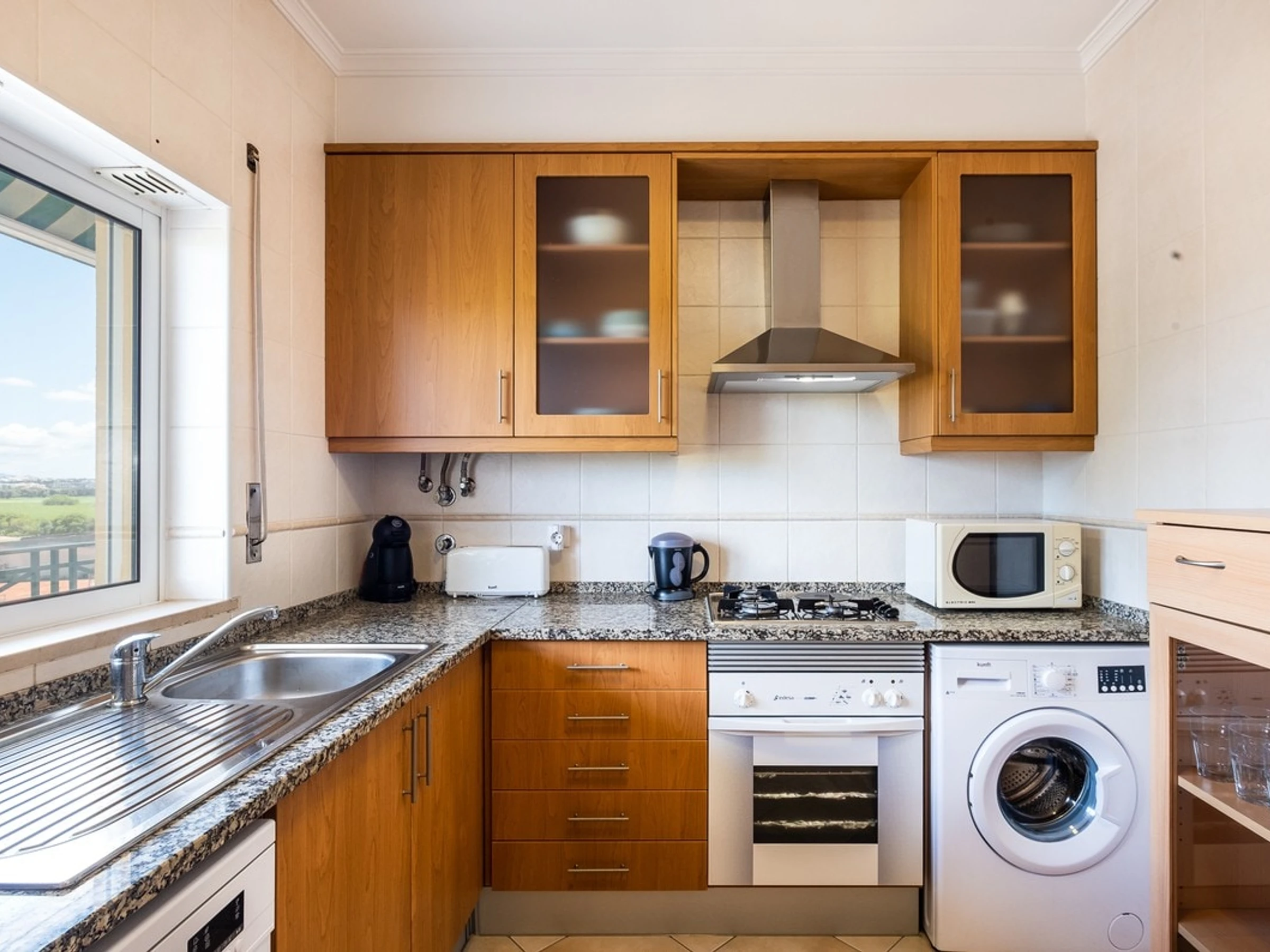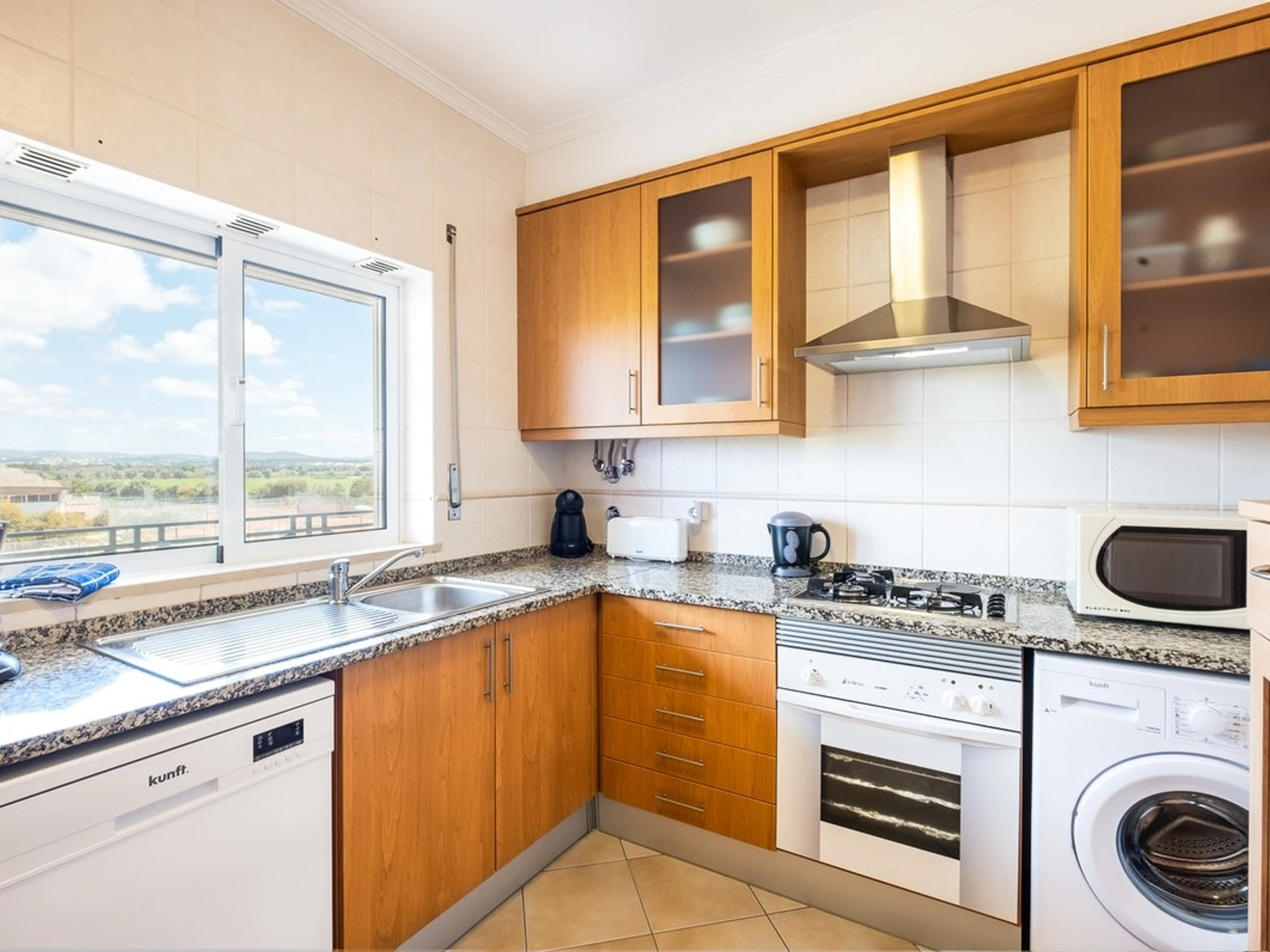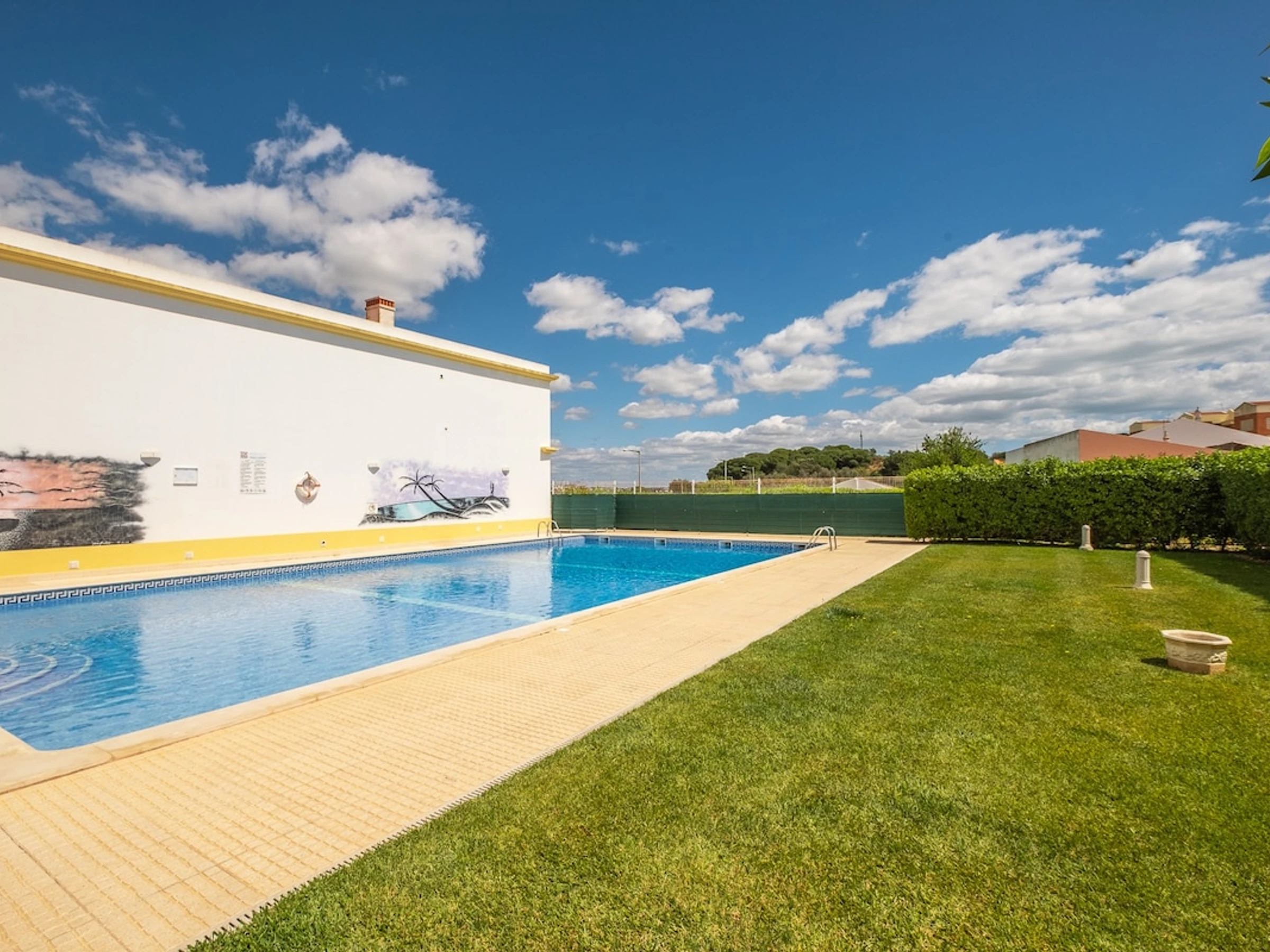 Appartement T2 confortable et spacieux dans une grande copropriété Alfamar avec piscine extérieure commune située à 8 minutes à pied de Praia da Falésia. L'espace extérieur est très calme, spacieux et verdoyant.