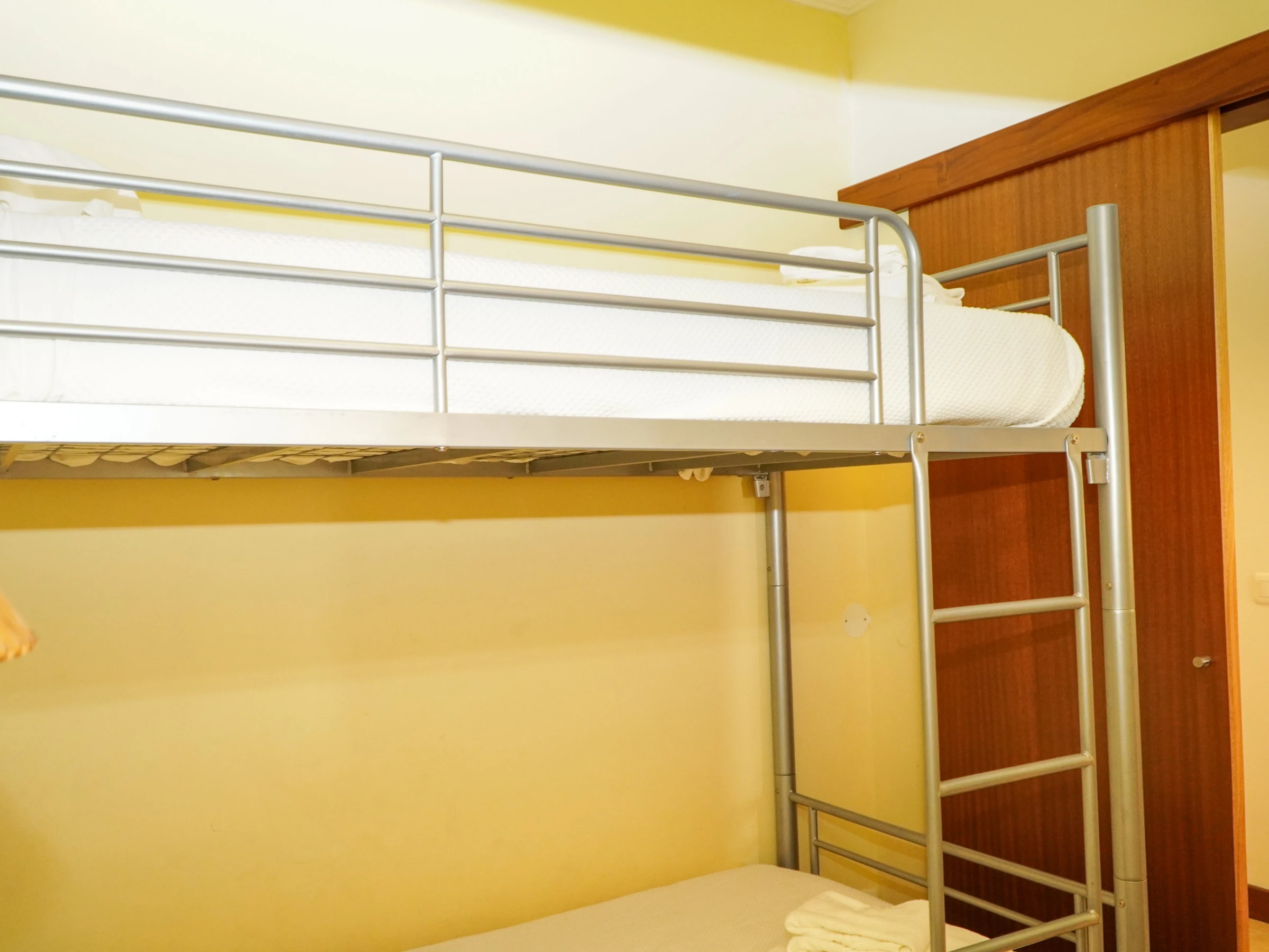 L'appartement dispose de 2 salles de bains, dont une avec baignoire et l'autre avec seulement des toilettes. Il y a 3 lits, dont un lit superposé et un lit supplémentaire, pouvant accueillir confortablement jusqu'à 6 personnes.