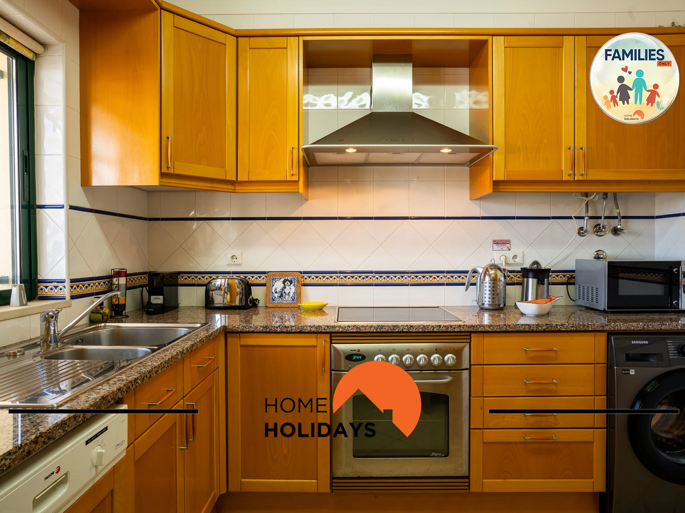La cuisine indépendante, à mixte: gaz et électricité, est équipée avec réfrigérateur, micro-ondes, four, congélateur, lave-vaisselle, vaisselle/couverts, ustensiles/cuisine, cafetière, grille pain, bouilloire, presse-agrumes, assiettes et bols, cuisinière.