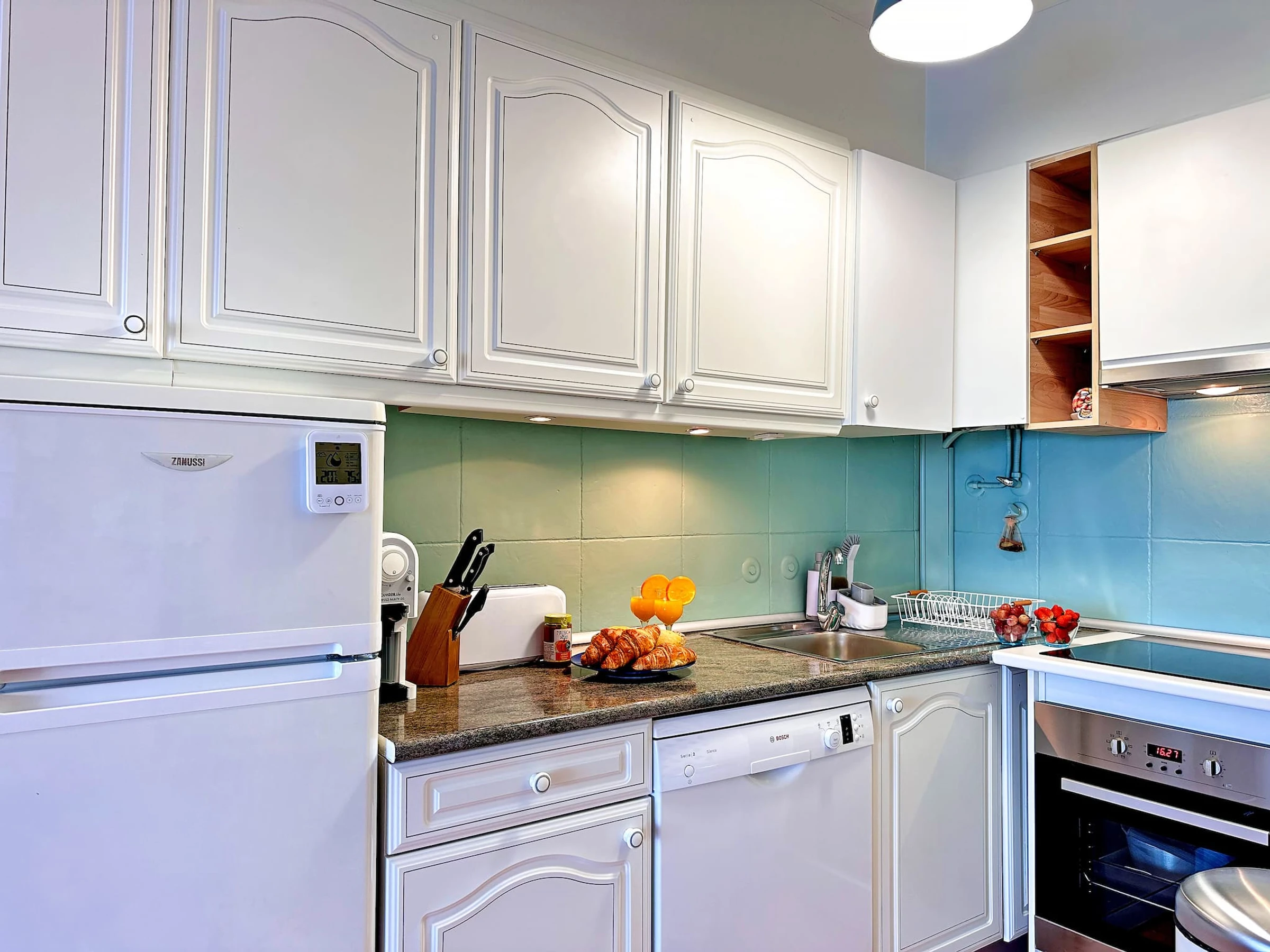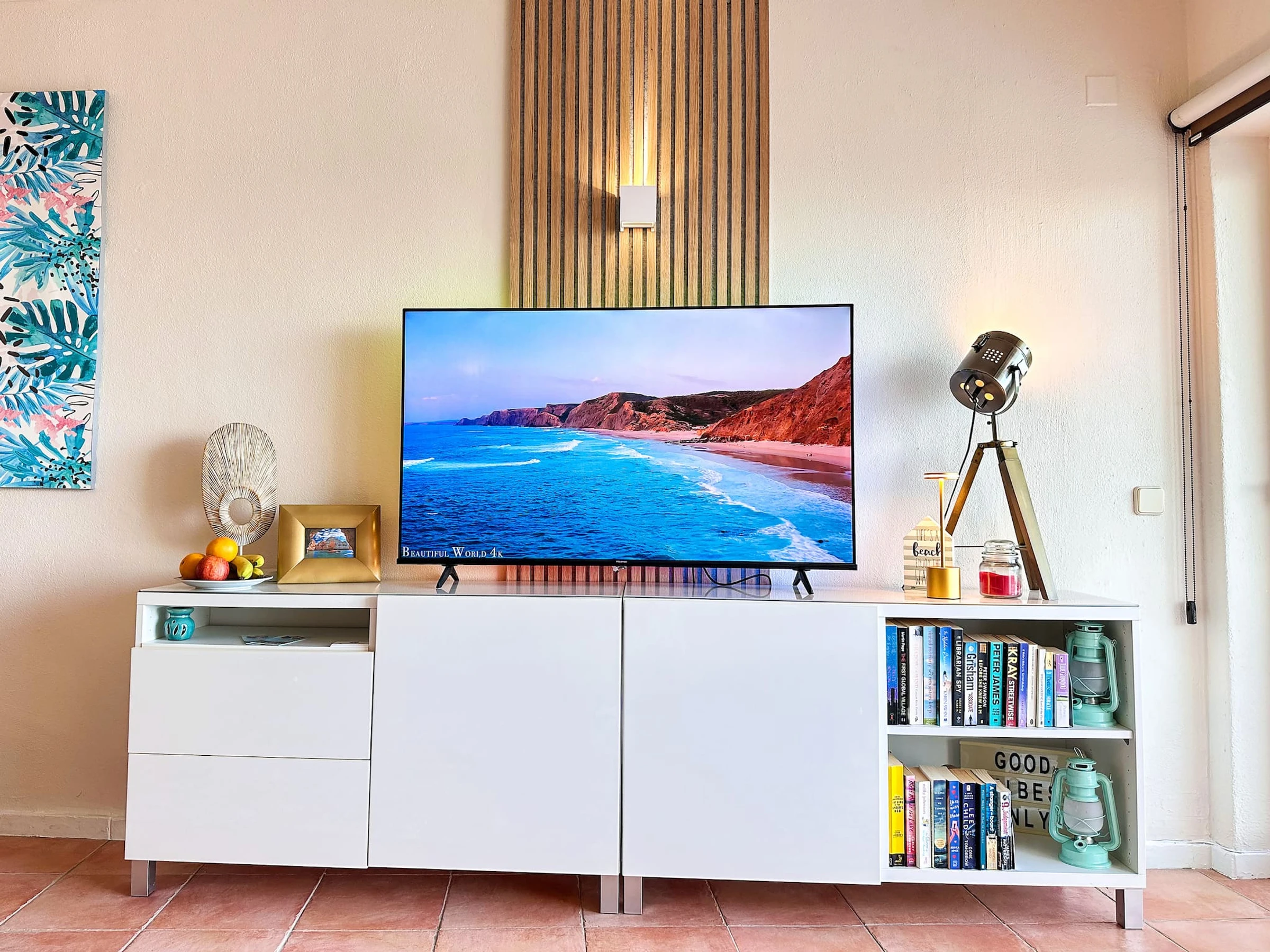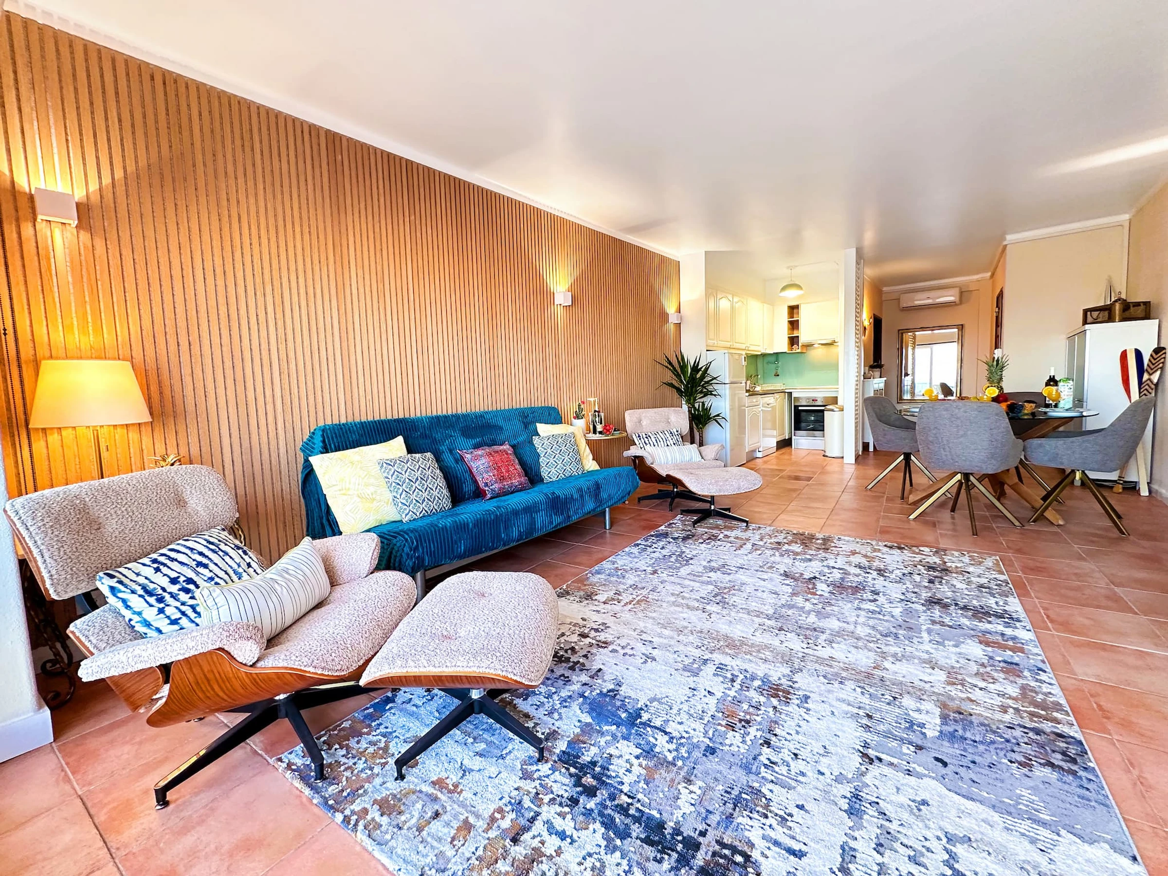 Elle offre une kitchenette entièrement équipée avec tous les ustensiles dont vous pourriez avoir besoin. Dans le salon, vous trouverez un canapé confortable et des chaises de repos, un grand téléviseur intelligent à écran plat et une connexion internet à haute vitesse !