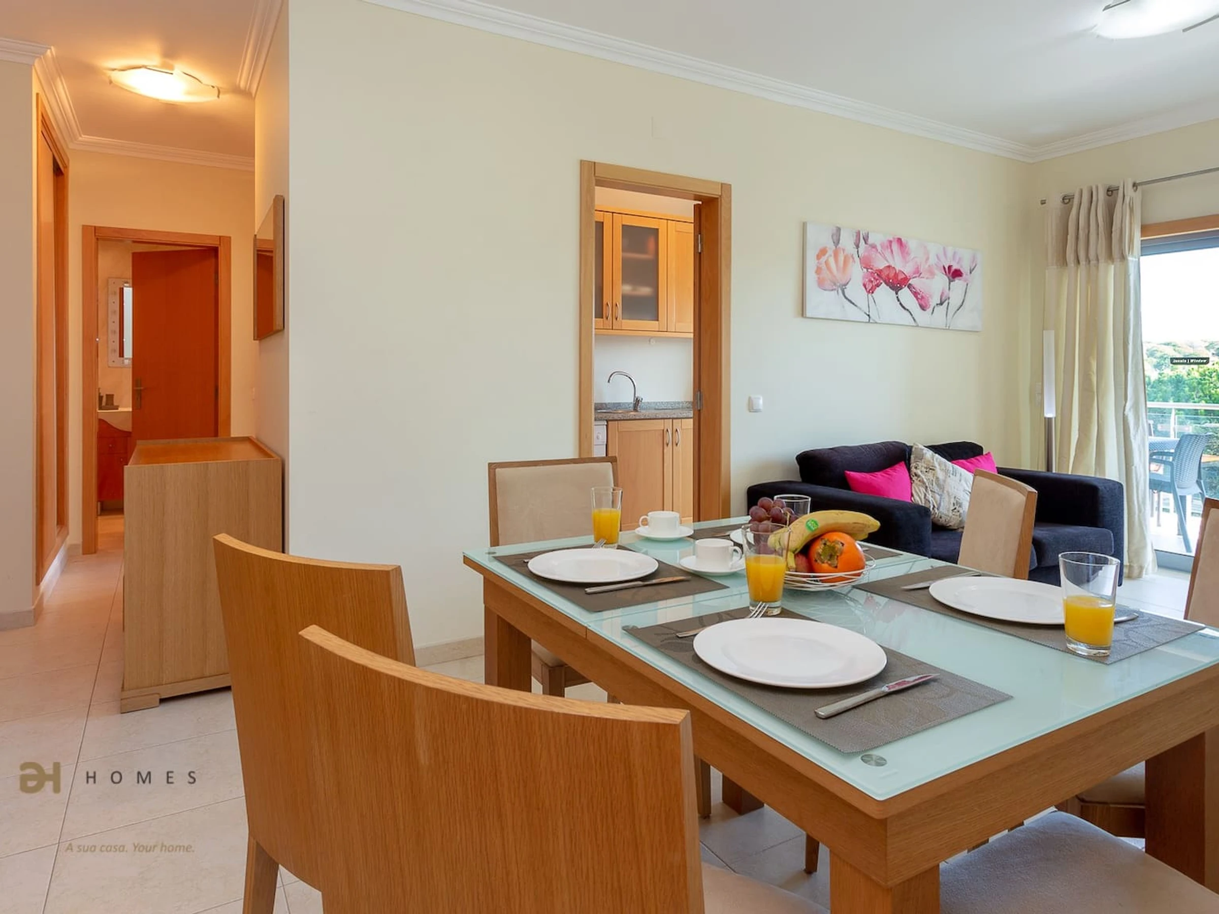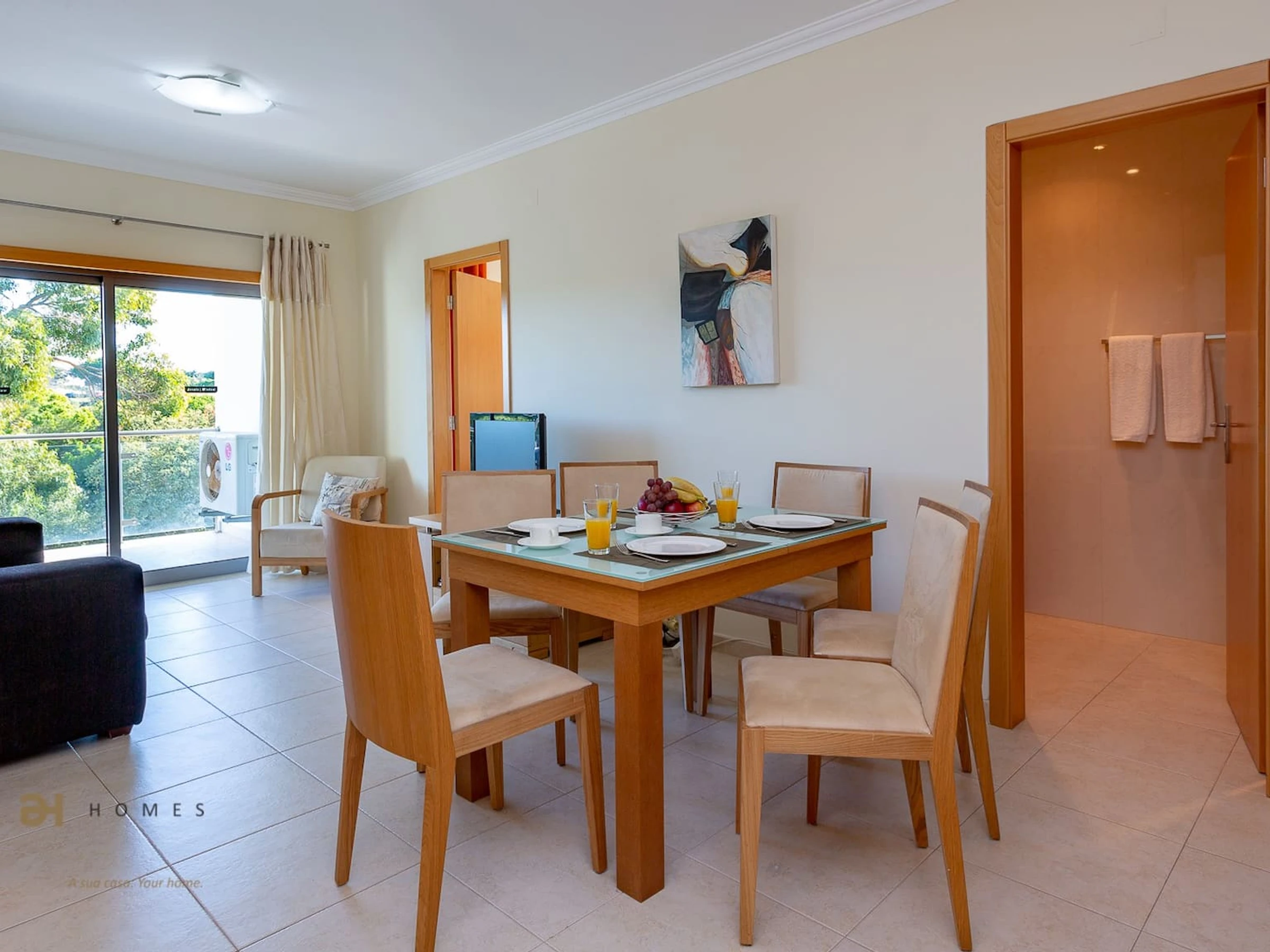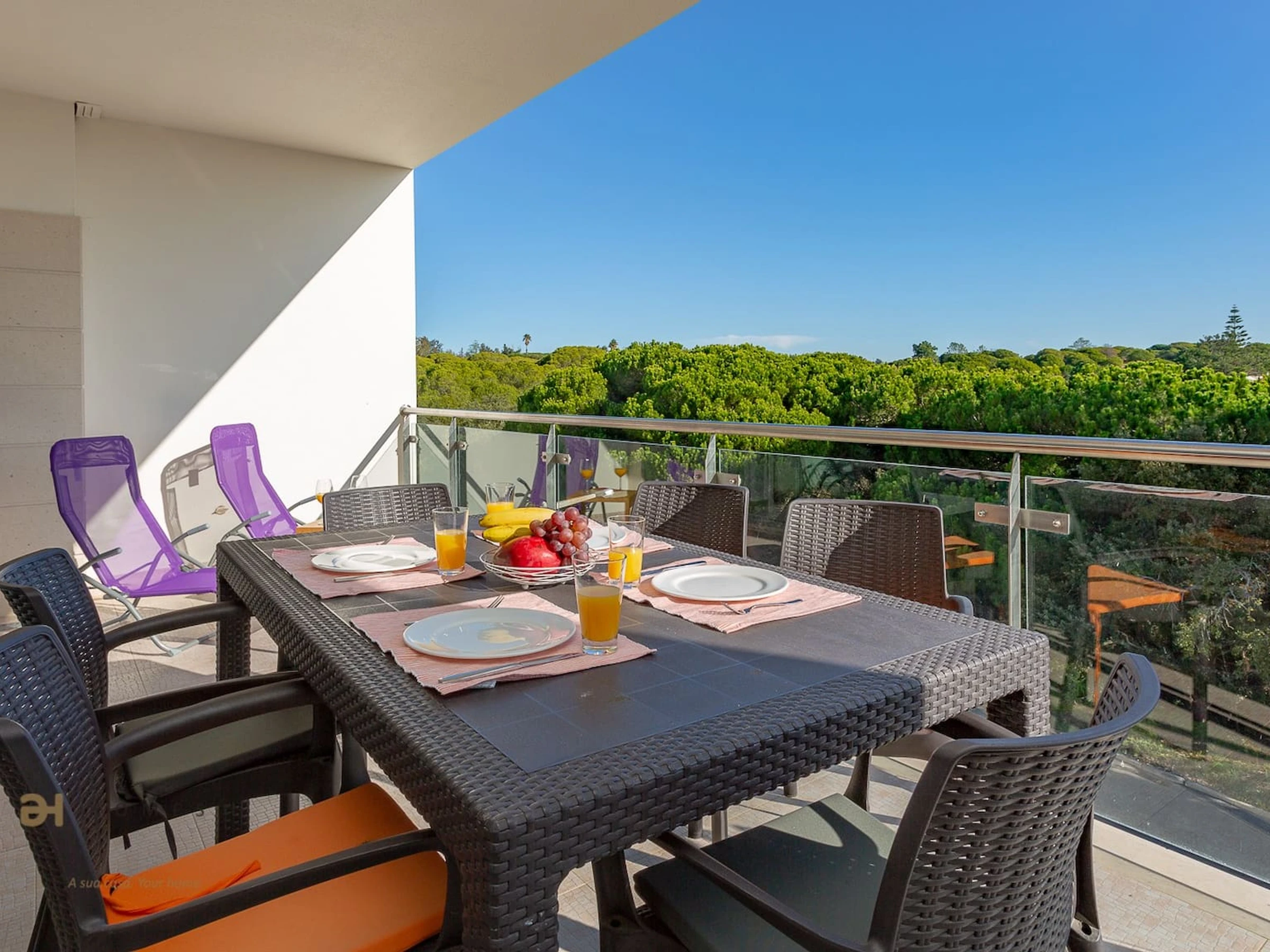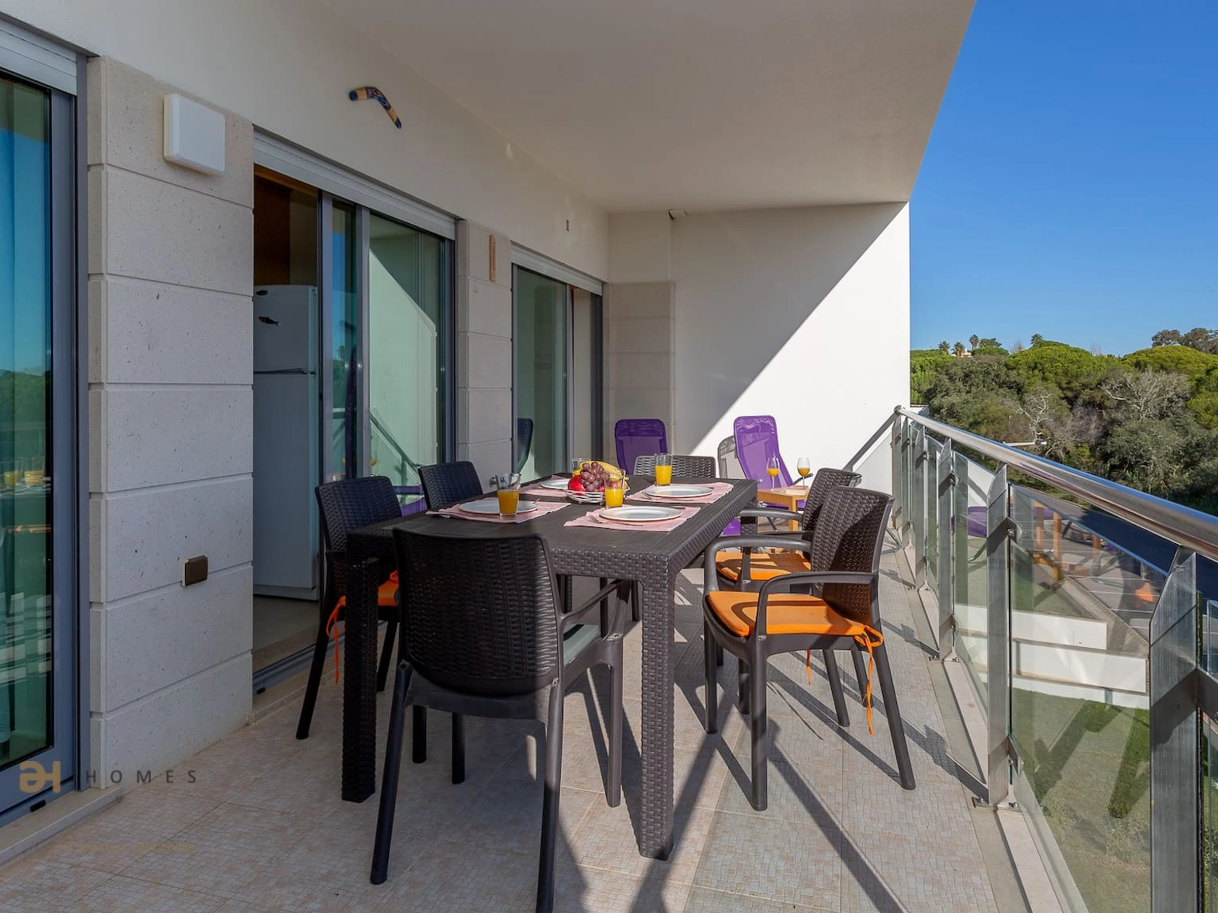 Comprenant 2 chambres dont une en suite avec baignoire, grand salon, cuisine entièrement équipée avec lave-linge, micro-ondes, four et lave-vaisselle, grand salon et un balcon spectaculaire avec vue sur la nature et avec mobilier extérieur pour profiter de vos moments de repos et d'été. repas, en profitant de la brise de l'Algarve.