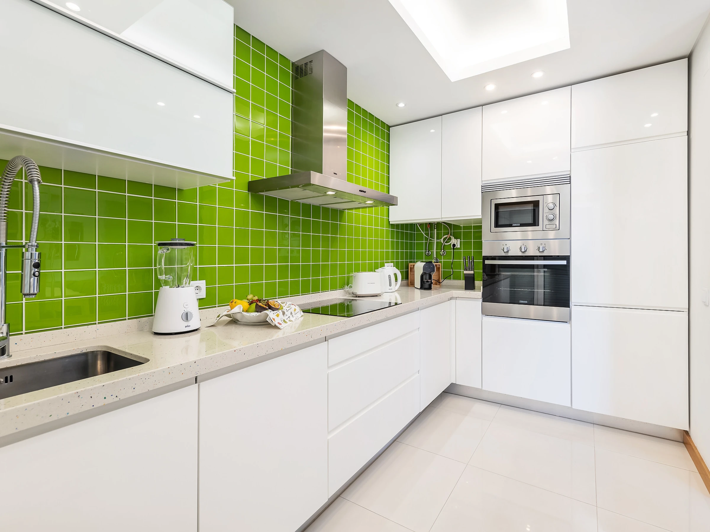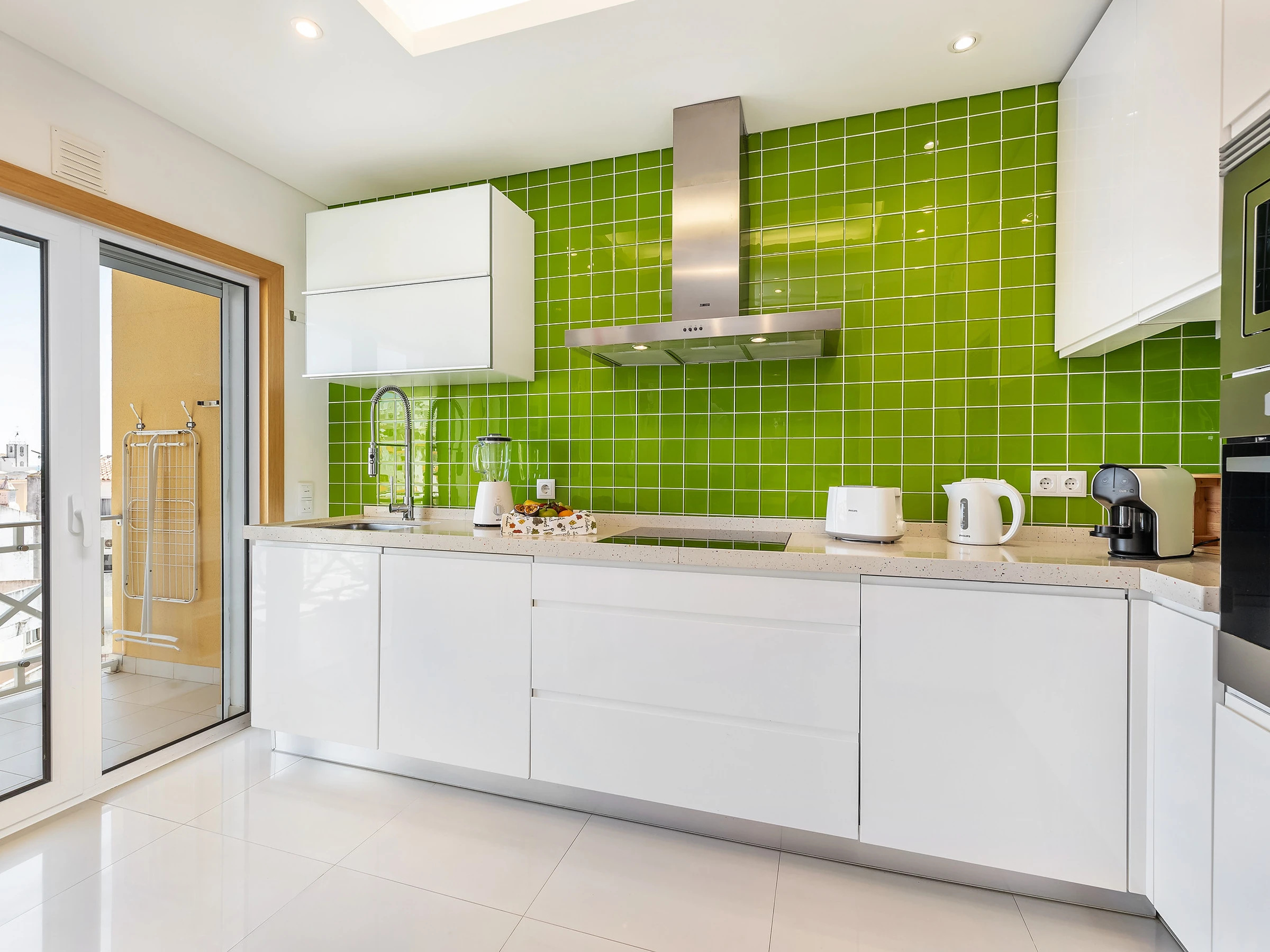 The fully equipped, ample kitchen has all the utilities needed including microwave, built-in oven, and full-size fridge/freezer. Appliances include a toaster, blender, coffee maker and electric juicer for making delicious fresh juice from the Algarve’s oranges. The kitchen has a charming balcony overlooking the pools and lovely surrounding grounds. It is here that the iconic vista of Old Town can be viewed and where your breakfast and morning coffee can be enjoyed.