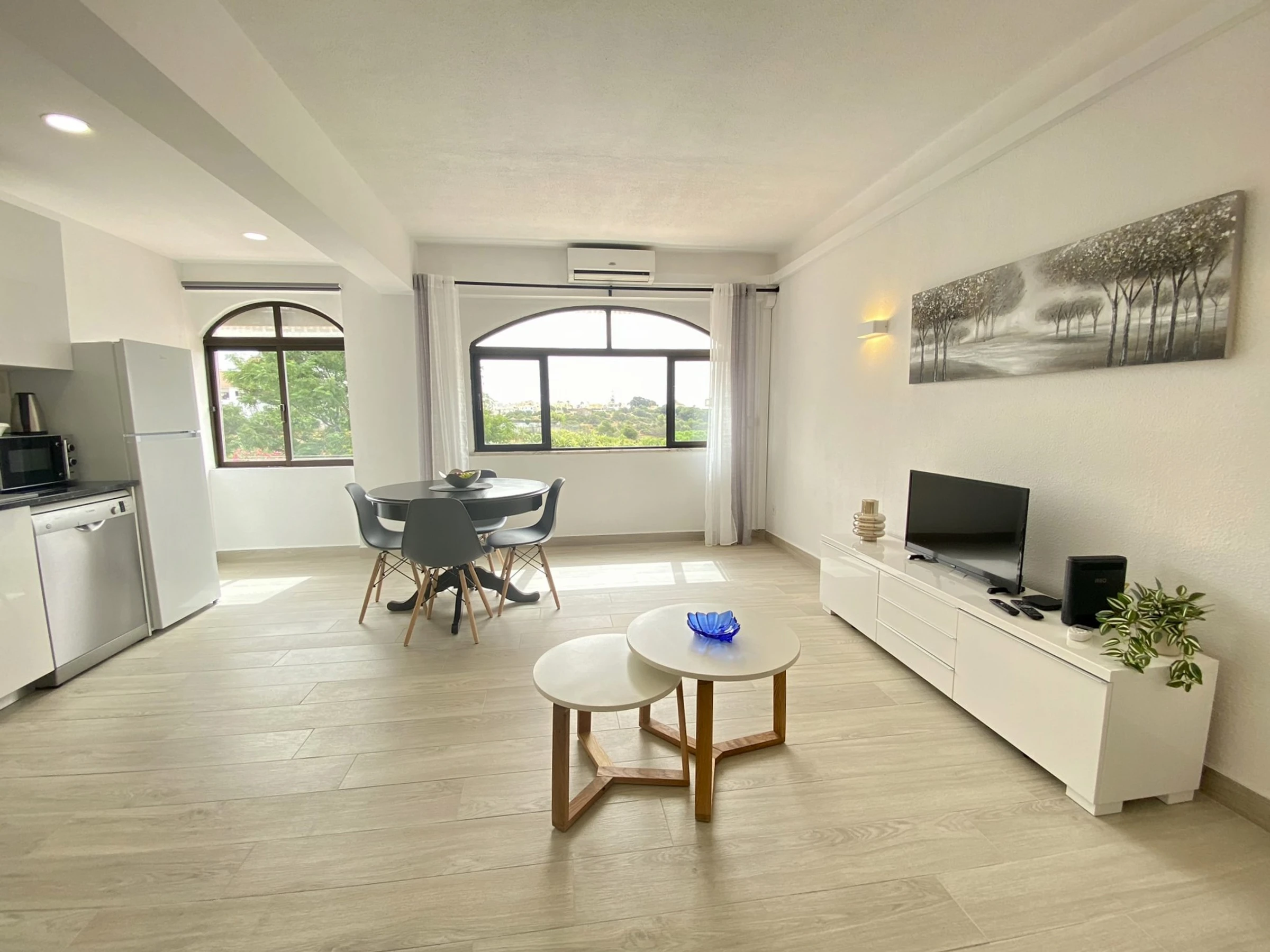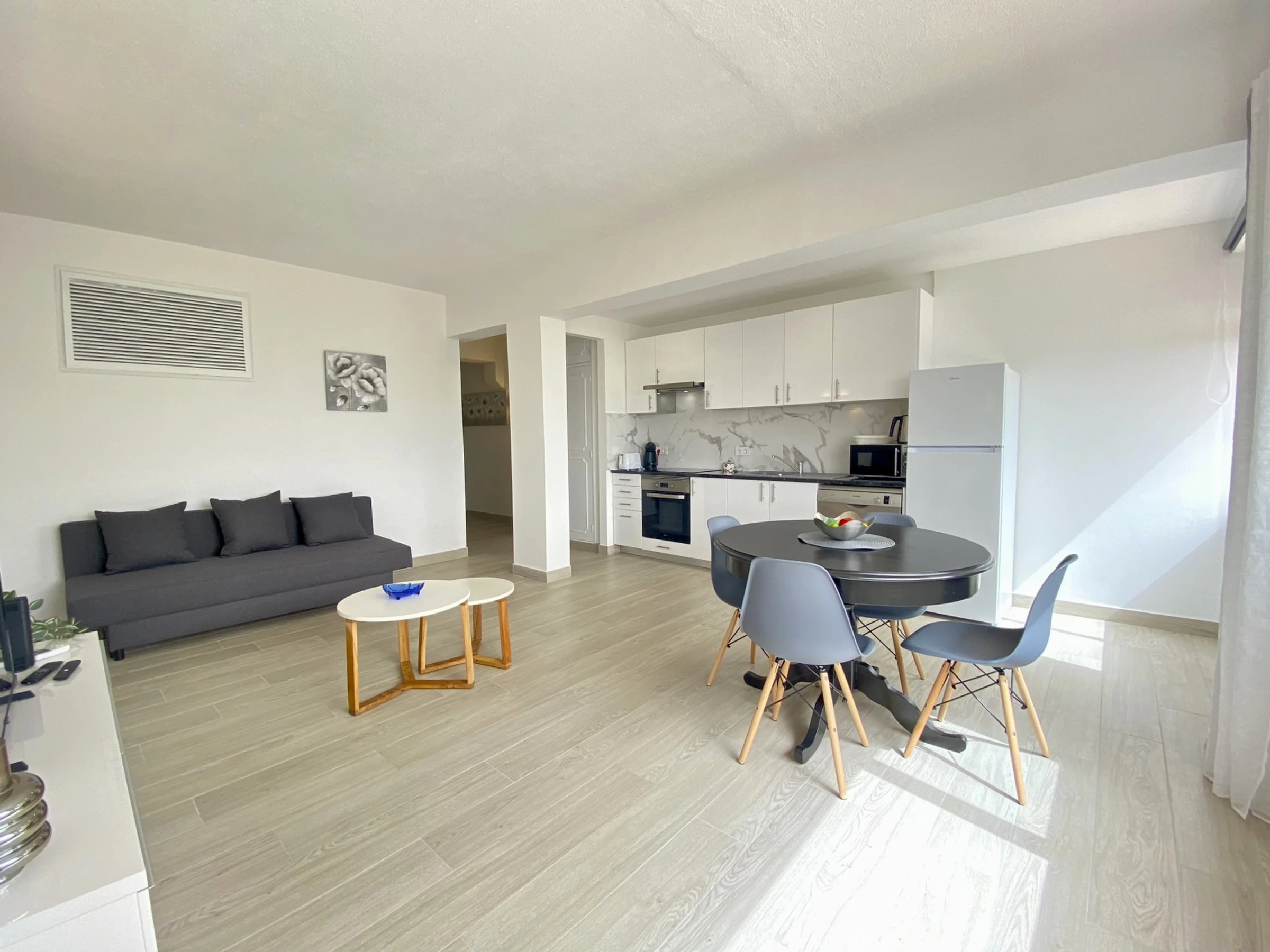 La cuisine compacte est entièrement équipée, offrant tout ce dont vous avez besoin pour préparer vos repas avec facilité. L'espace de vie est confortable, offrant un environnement parfait pour se détendre et profiter de votre séjour.