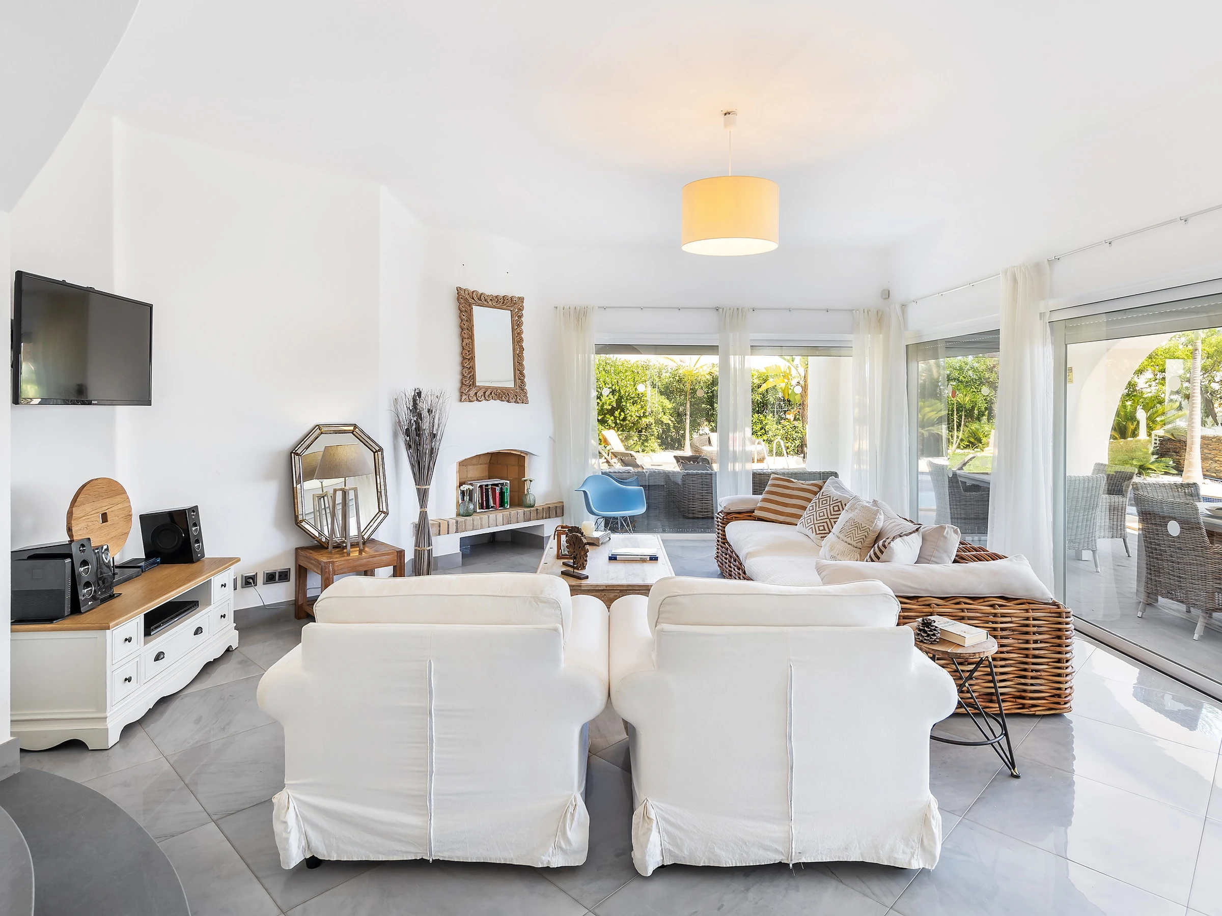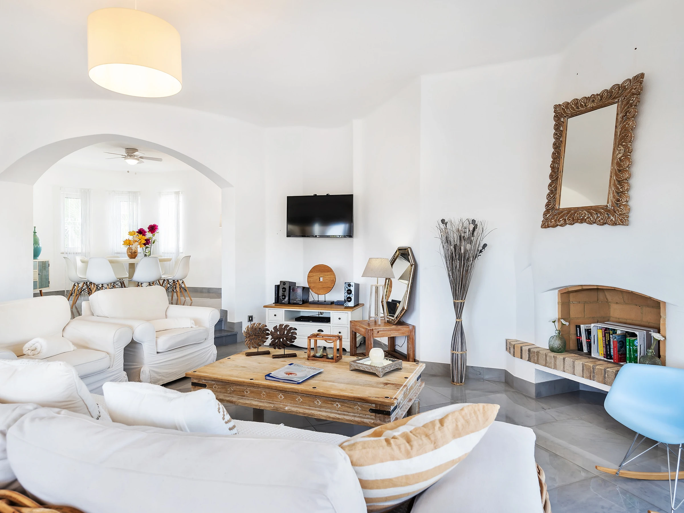 The large living room is very comfortable with a fireplace, equipped with LCD TV, foreign television channels, internet and has access to the outdoor dining area, barbecue, swimming pool and garden.