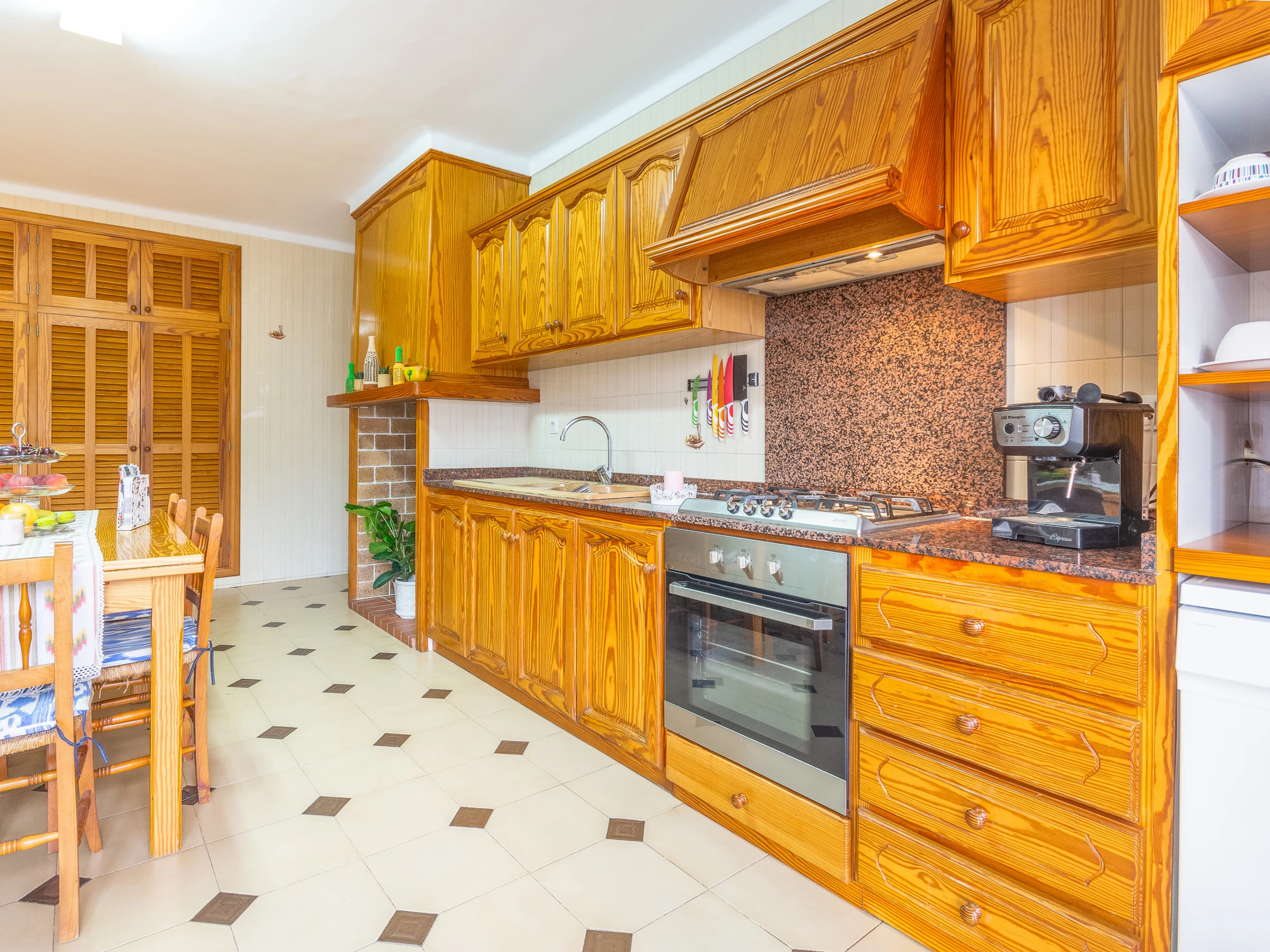 L'intérieur de la villa est spacieux et moderne, avec un salon-salle à manger lumineux parfait pour les réunions familiales ou entre amis. Équipée de TV satellite, lecteur CD et climatisation dans toutes les pièces, cette villa offre un environnement confortable toute l'année. La cuisine au gaz est entièrement équipée pour que vous puissiez préparer de délicieux repas, et la maison dispose également d'une buanderie indépendante avec machine à laver, planche à repasser et fer.