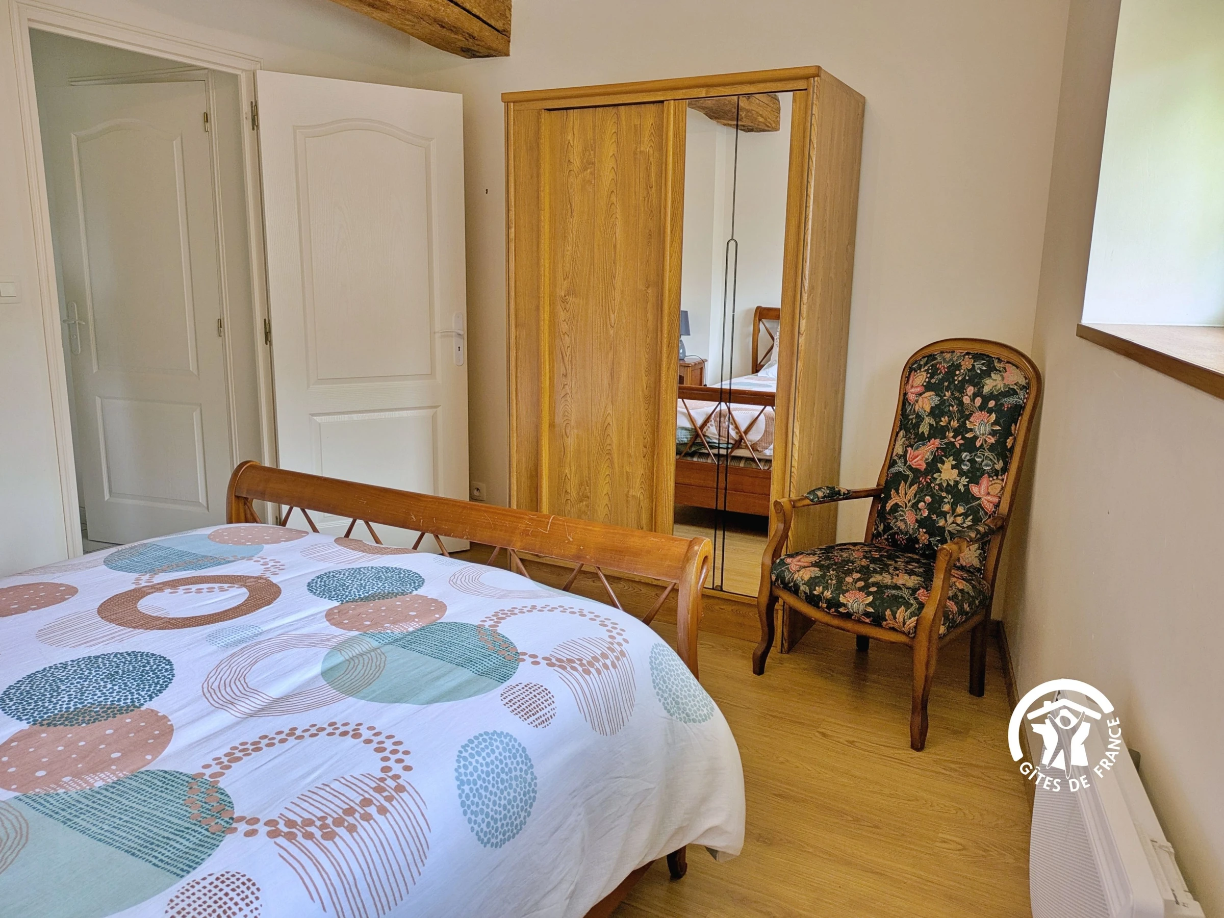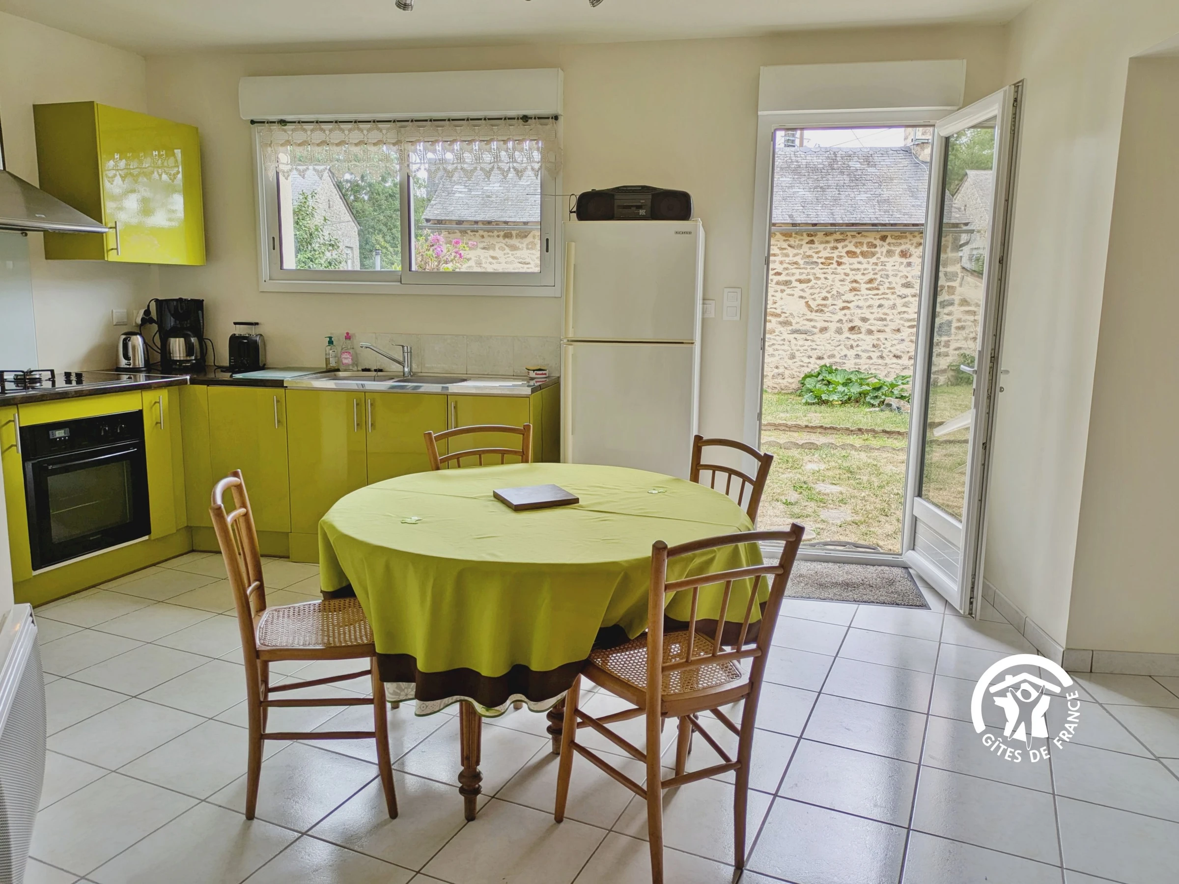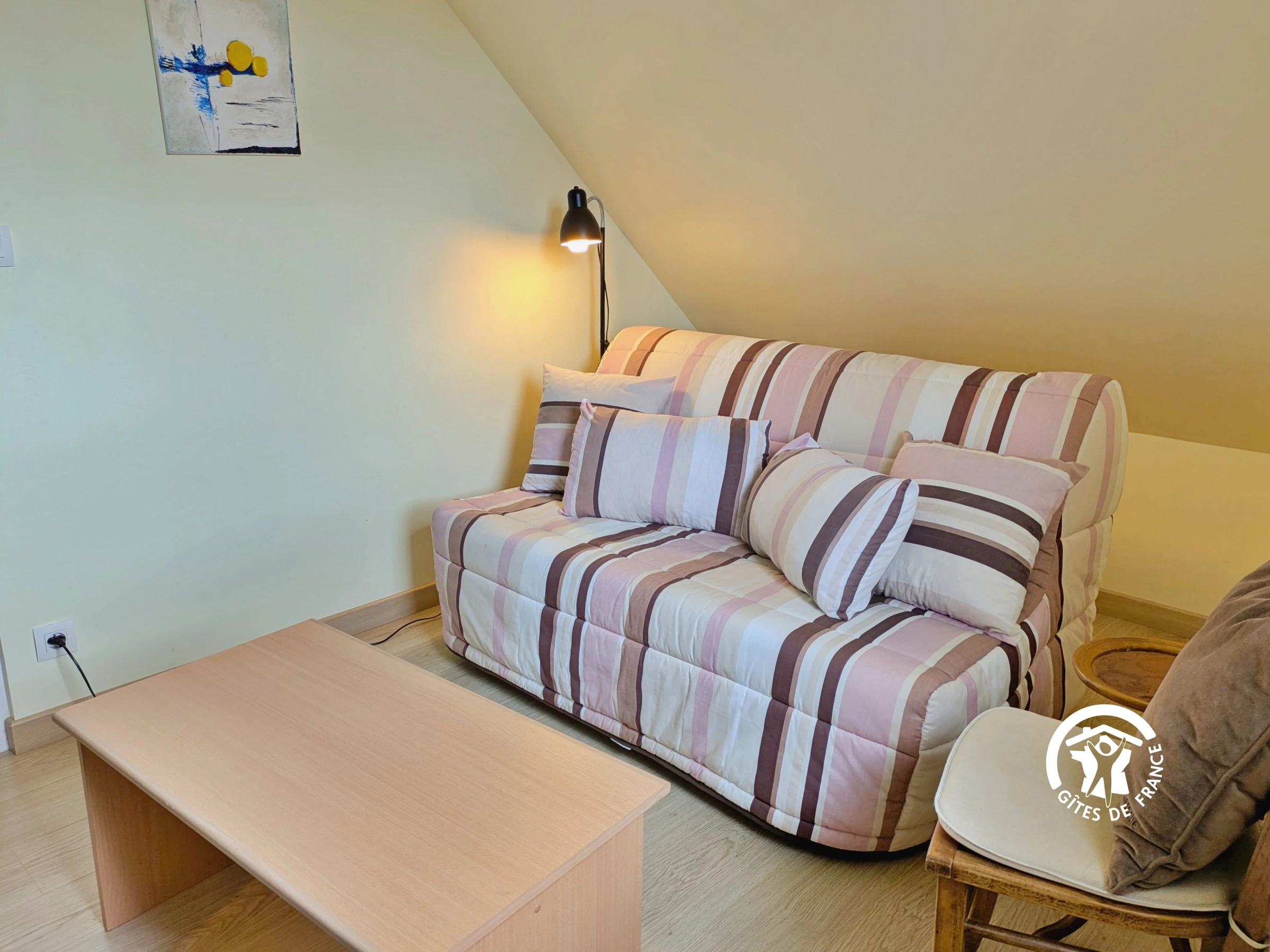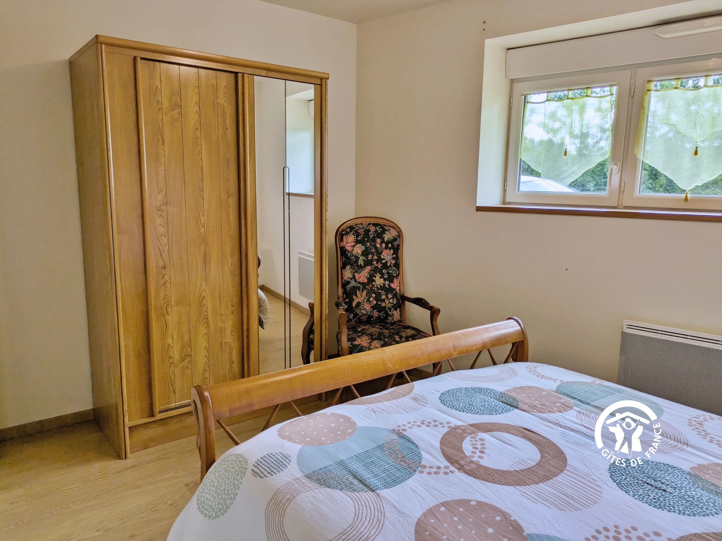 Séjour professionnel : 4 personnes maximum - 1 forfait ménage obligatoire par séjour de 1 à 14 nuitées. Le gîte est indépendant sur deux niveaux. NIVEAU 0 : Entrée par le salon 22,8m² (canapé, fauteuils et télévision) - 1 marche entre le salon et la cuisine - Cuisine équipée 20,7m² : réfrigérateur, compartiment congélateur, table de cuisson 4 feux (gaz et élec), bouilloire, grille-pain, cafetière filtre, micro-ondes, table de repas 6 personnes - Cellier avec machine à laver - Salle d'eau 3m² avec lavabo, cabine de douche, sèche serviettes, sèche-cheveux - WC indépendant - Chambre (1) 12,2m² avec 1 lit 140x190, rangement.