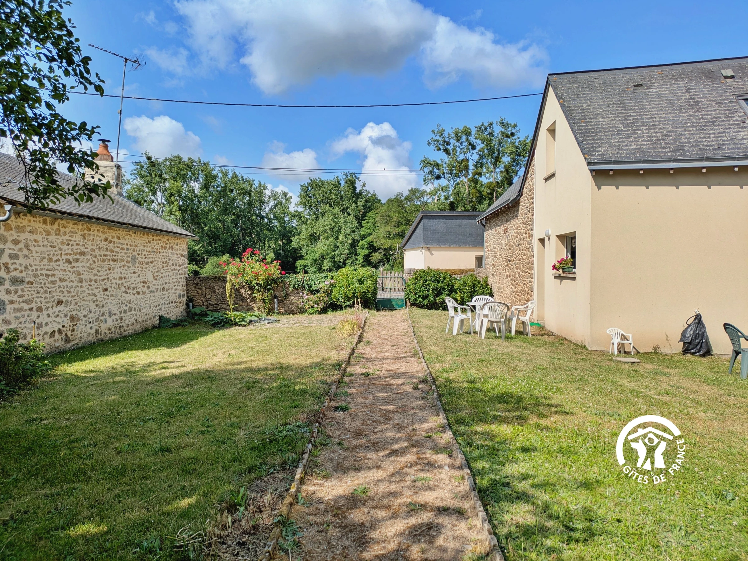Gîte à 100m de l'écluse de Mongiroux et de la Vélo Francette (chemin de halage et vélo de Ouistréam à La Rochelle). Tous les commerces à 4km dans le village de Martigné sur Mayenne. Guinguette à l'écluse en saison. Gage de beaux circuits de vélo et de randonnée, accès aux ville de Mayenne et de Laval par la voir verte.