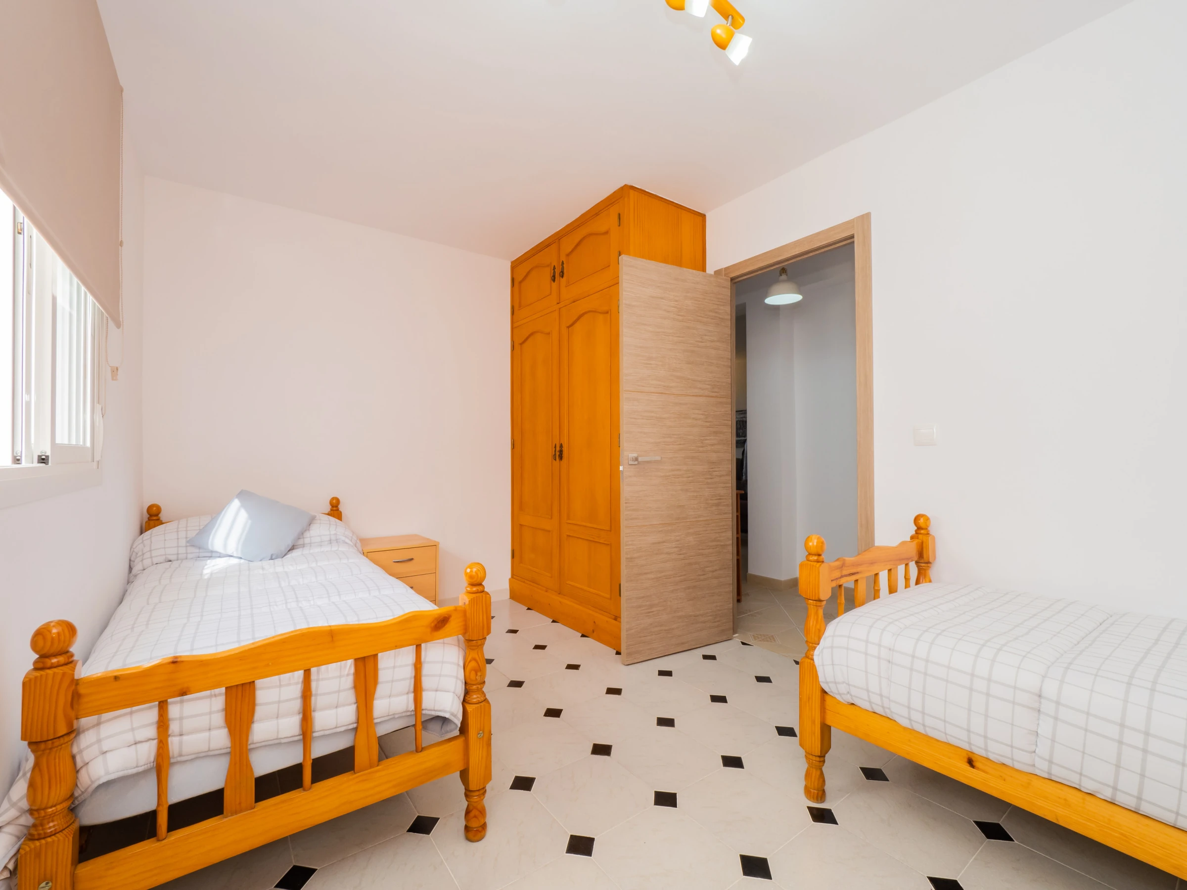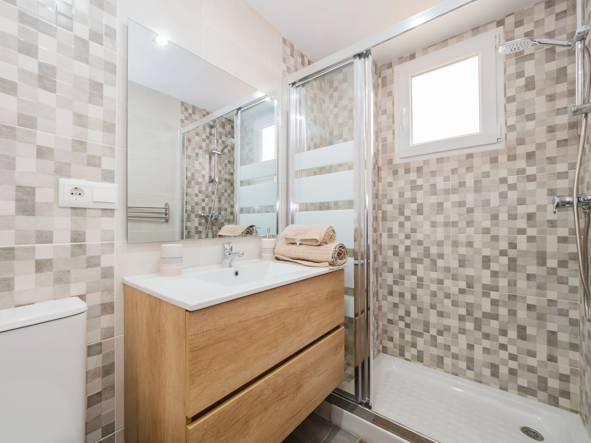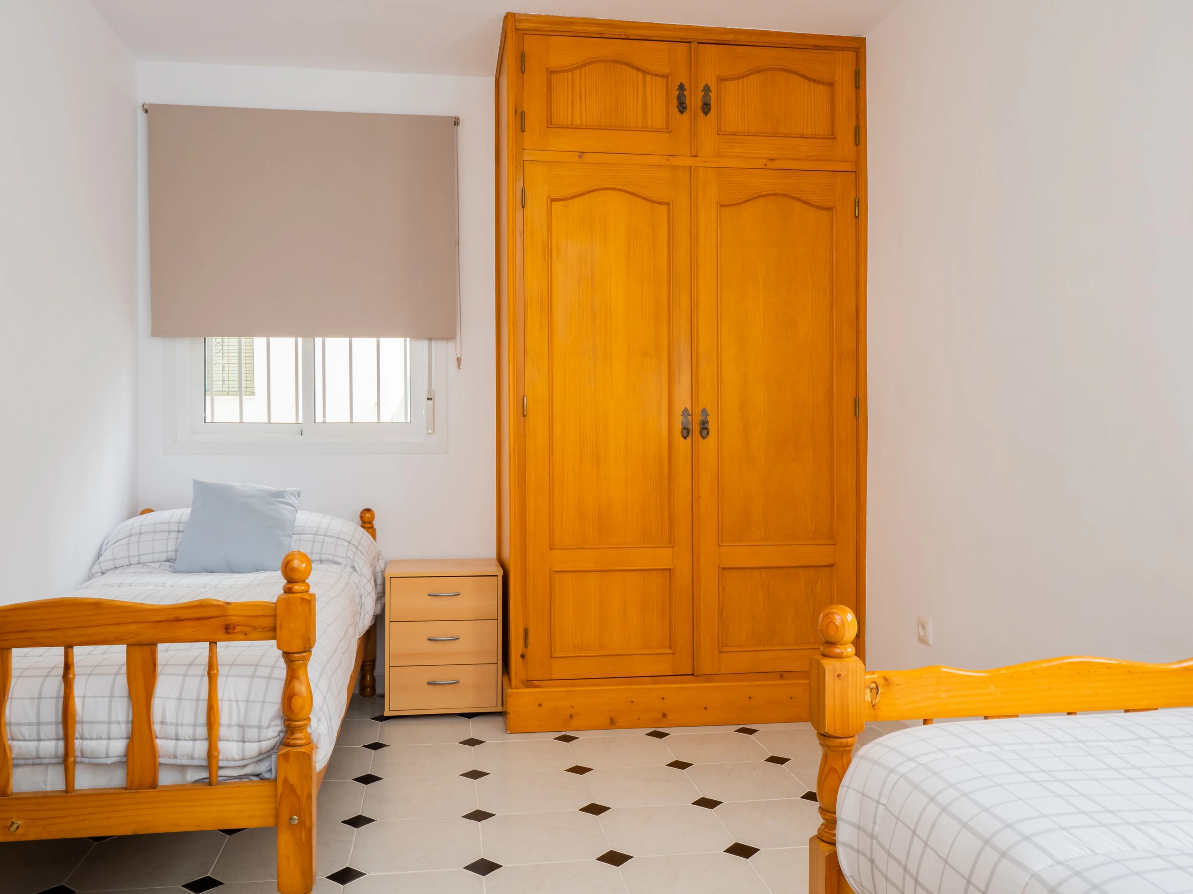 Le logement dispose de deux chambres avec des fenêtres donnant sur l'extérieur et un espace pour ranger les bagages : une avec un lit double et l'autre avec deux lits individuels. De plus, le canapé-lit du salon permet une cinquième place, bien que dans certaines saisons, cela puisse avoir un coût supplémentaire. La salle de bain complète dispose d'un receveur de douche. 🚿🛏️