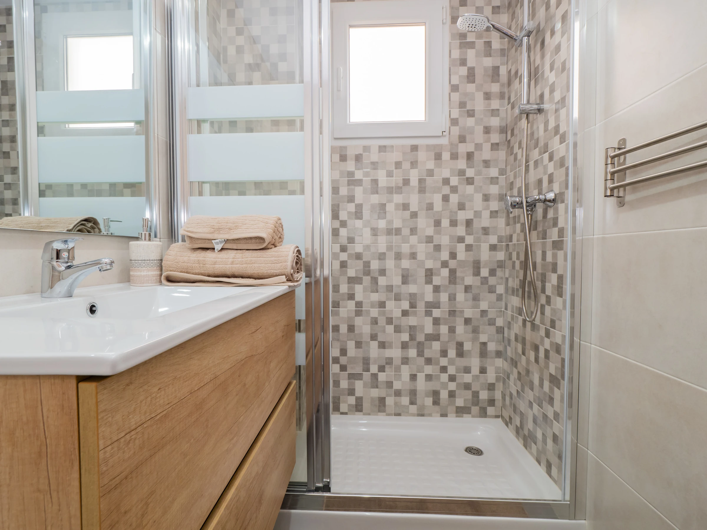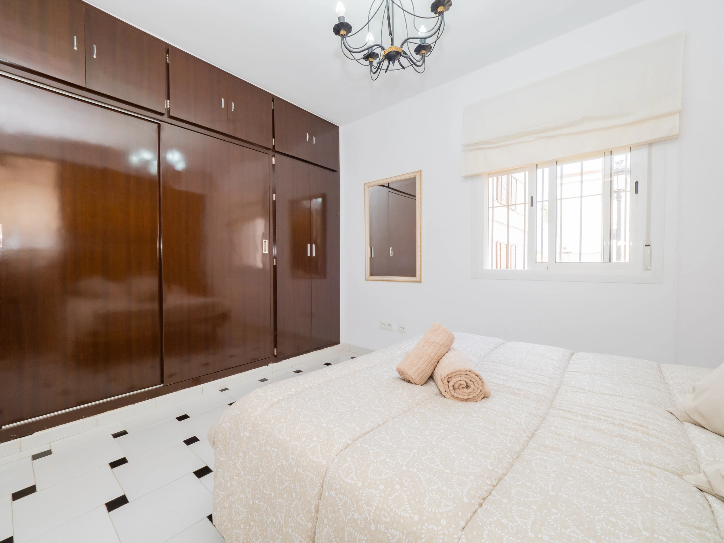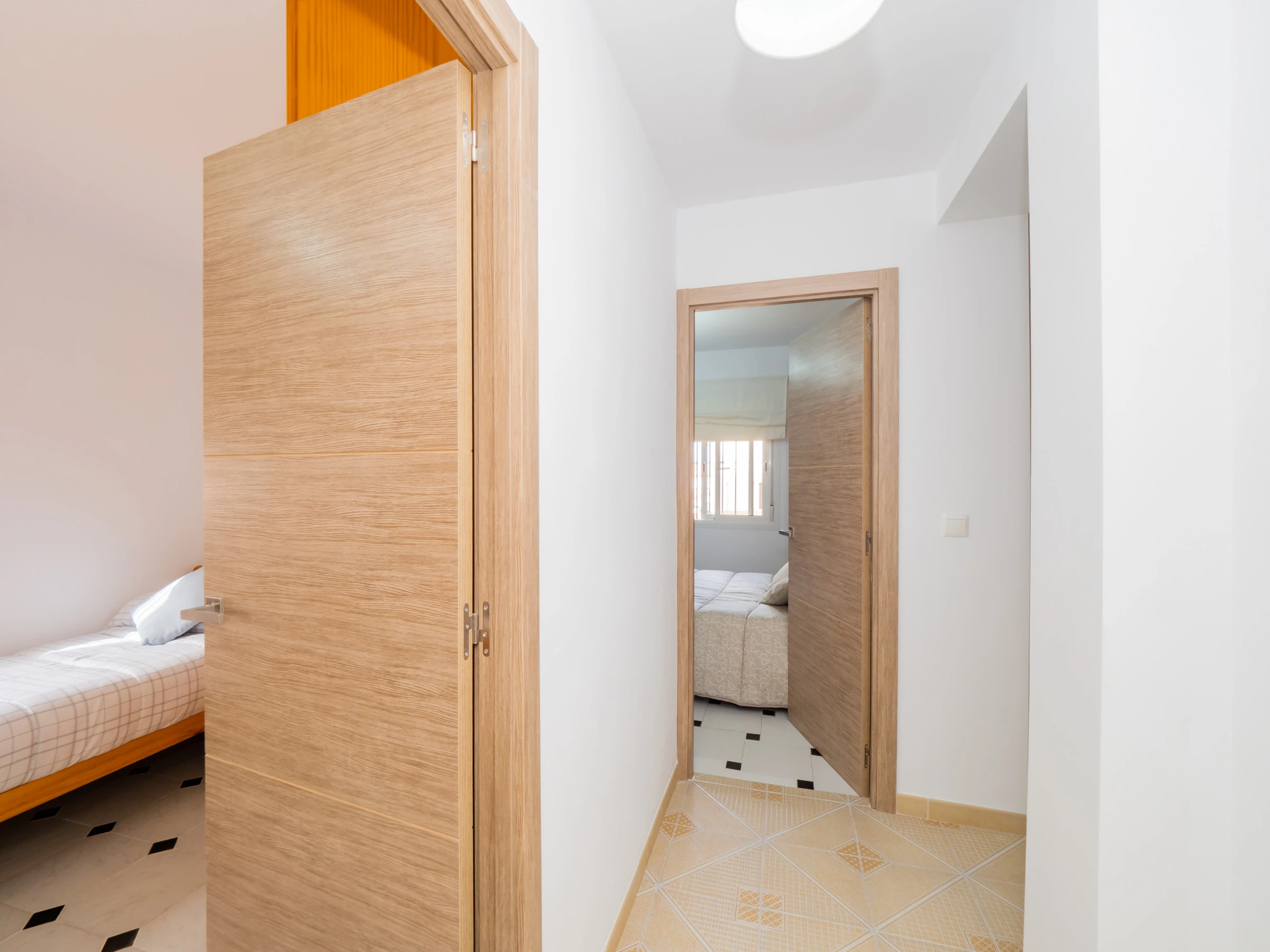 Le logement dispose de deux chambres avec des fenêtres donnant sur l'extérieur et un espace pour ranger les bagages : une avec un lit double et l'autre avec deux lits individuels. De plus, le canapé-lit du salon permet une cinquième place, bien que dans certaines saisons, cela puisse avoir un coût supplémentaire. La salle de bain complète dispose d'un receveur de douche. 🚿🛏️