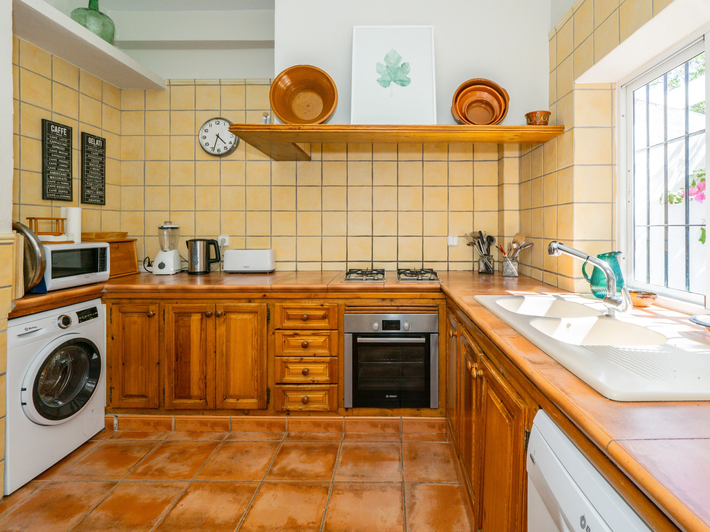 La cuisine indépendante est entièrement équipée d'appareils électroménagers modernes (réfrigérateur, micro-ondes, four, lave-vaisselle, cafetière, grille-pain, presse-agrumes, etc.) et bénéficie d'un bon éclairage naturel grâce à ses grandes fenêtres donnant sur le jardin.