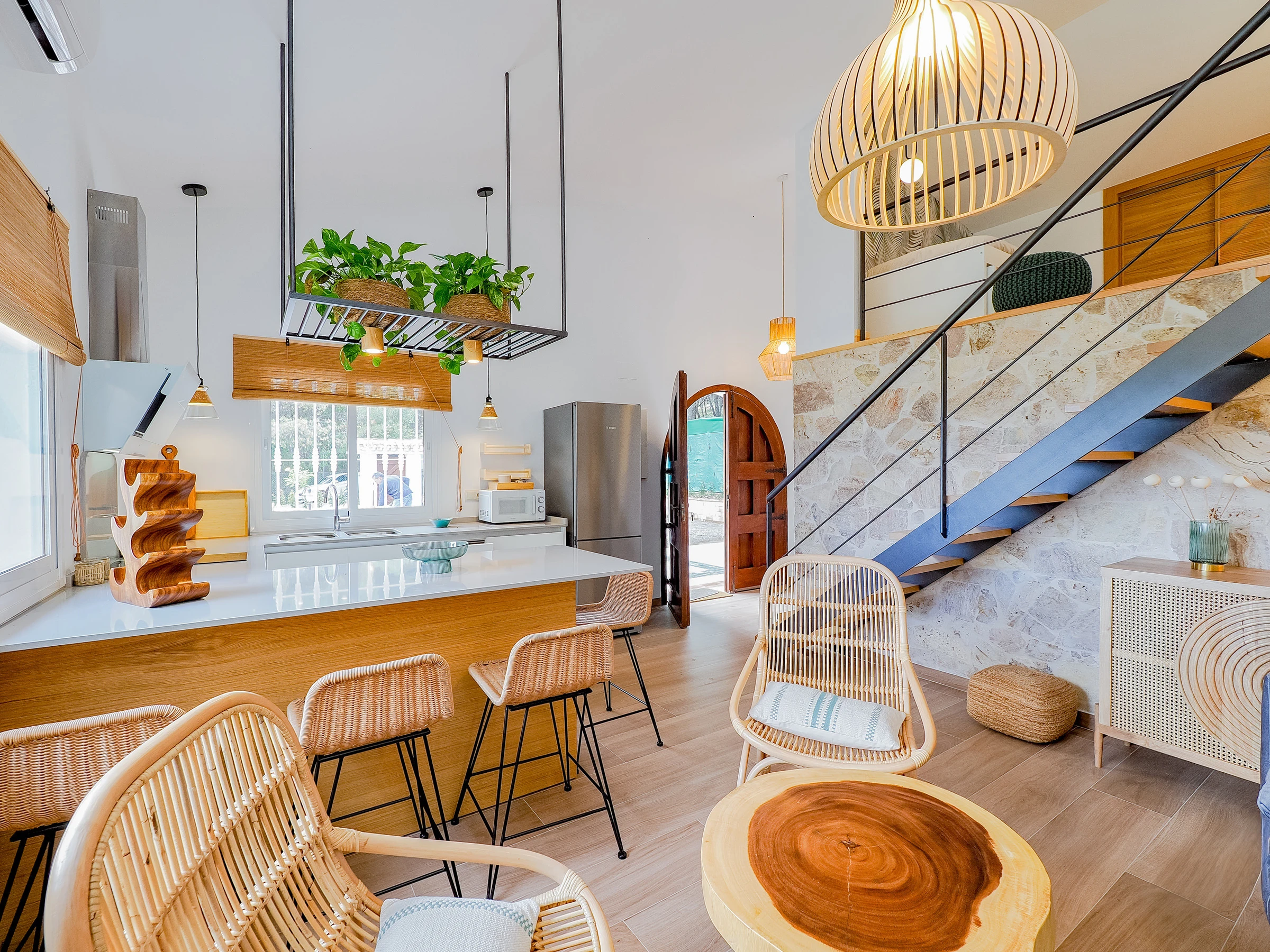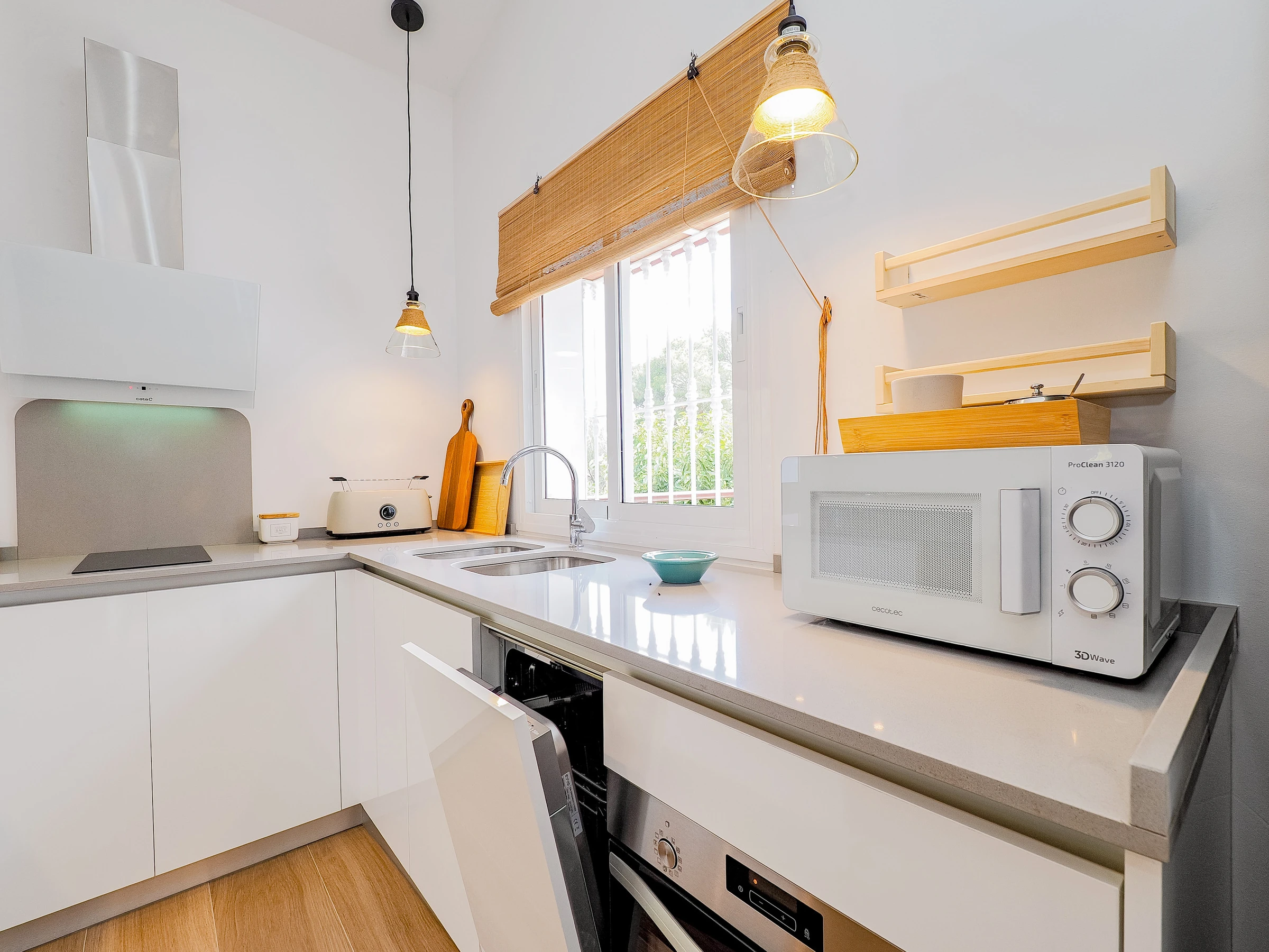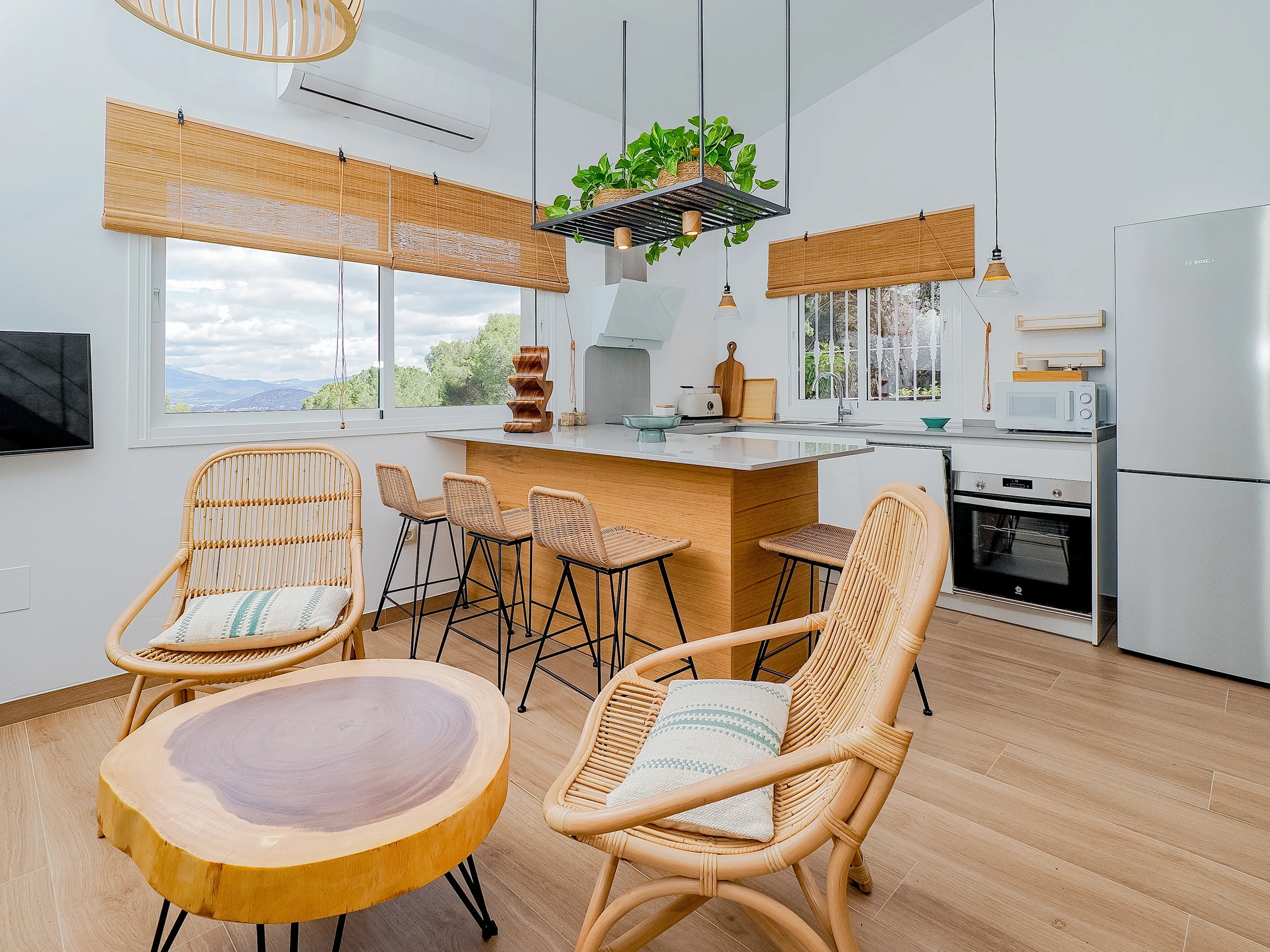 Le logement dispose du chauffage, de la climatisation, d'un accès internet wifi, d'un lave-linge, d'un fer à repasser, d'un sèche-cheveux et d'un grand jardin avec du mobilier extérieur pour profiter de l'air libre. De plus, la parcelle est clôturée pour plus de sécurité et dispose d'un parking en plein air dans le même bâtiment. Les vues sur la montagne et la proximité de lieux emblématiques tels que les terrains de golf, les parcs aquatiques, les plages et les villes reconnues font de cette maison un endroit parfait pour se déconnecter et explorer la région.
