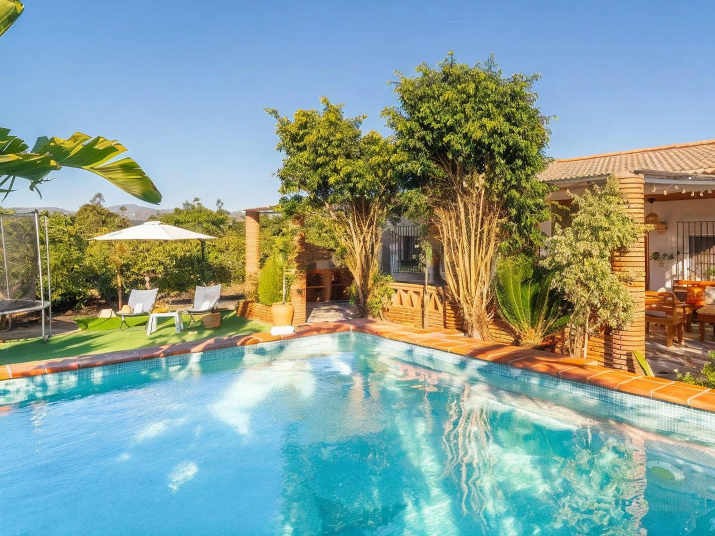 À propos de ce logement : La Villa Rocío à Vélez-Málaga est un havre de paix intime et entièrement privé, niché en pleine nature. Elle comprend une piscine d'eau salée avec banquette, une grande terrasse avec barbecue, un jardin, deux chambres doubles, un vaste salon avec cheminée et canapé-lit italien, une cuisine moderne et une salle de bains spacieuse.