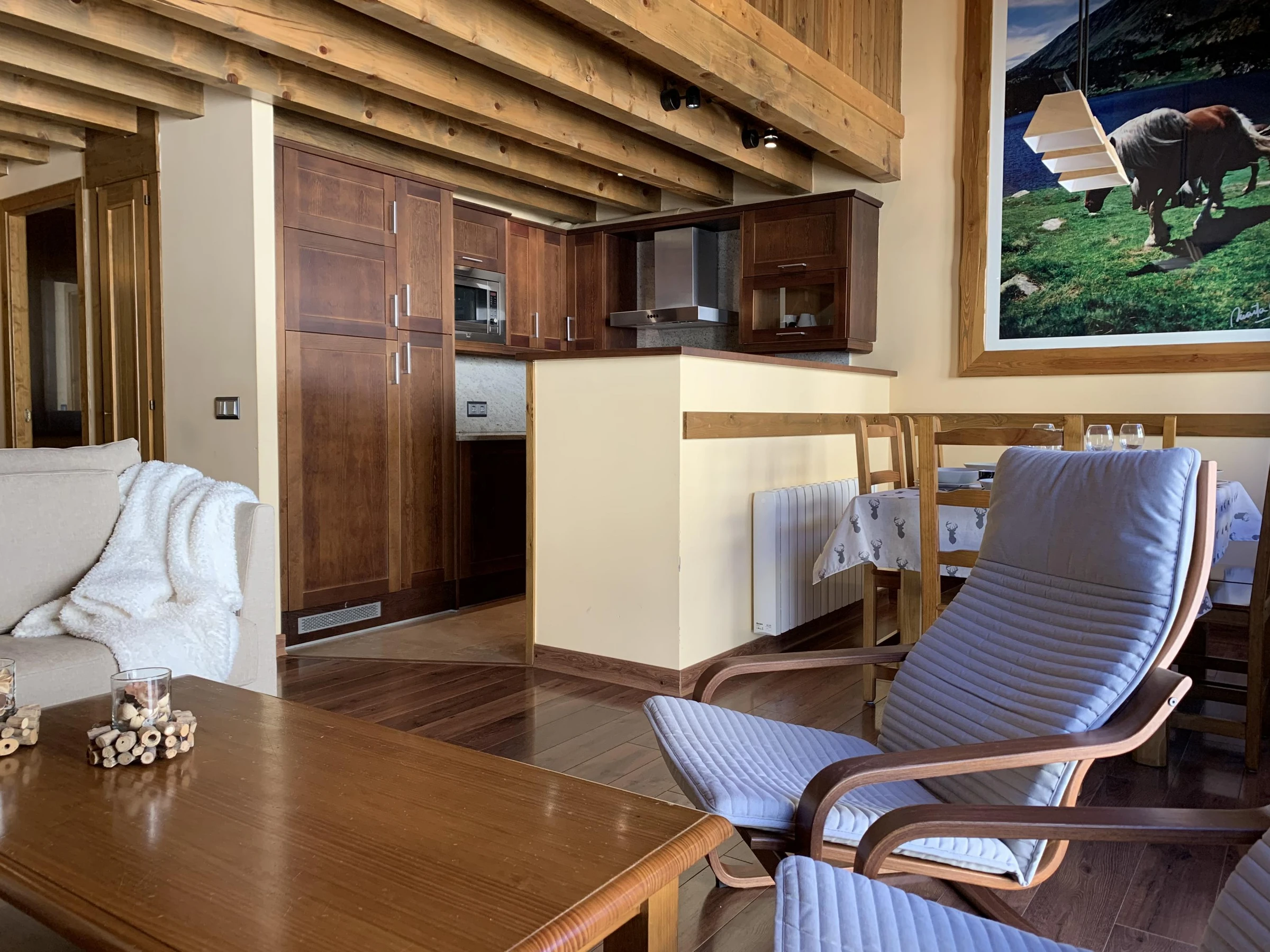 Duplex de 3 chambres et 2 salles de bains, salon avec canapé-lit et cuisine ouverte. Entièrement équipé avec draps, serviettes, ustensiles de cuisine, lave-vaisselle, micro-ondes, télévision... Nous disposons d'une connexion Wi-Fi gratuite, de casiers et d'un parking selon disponibilité