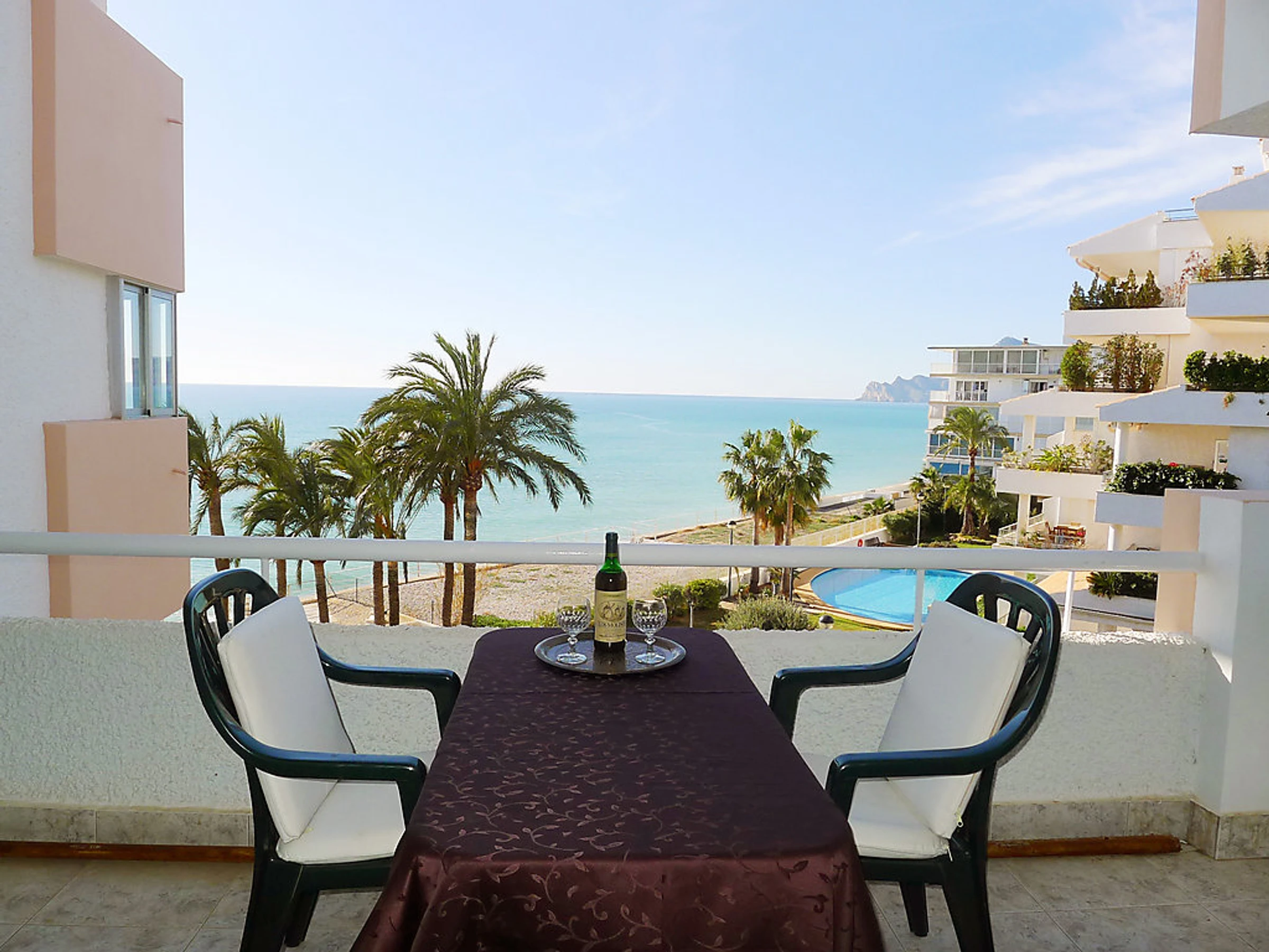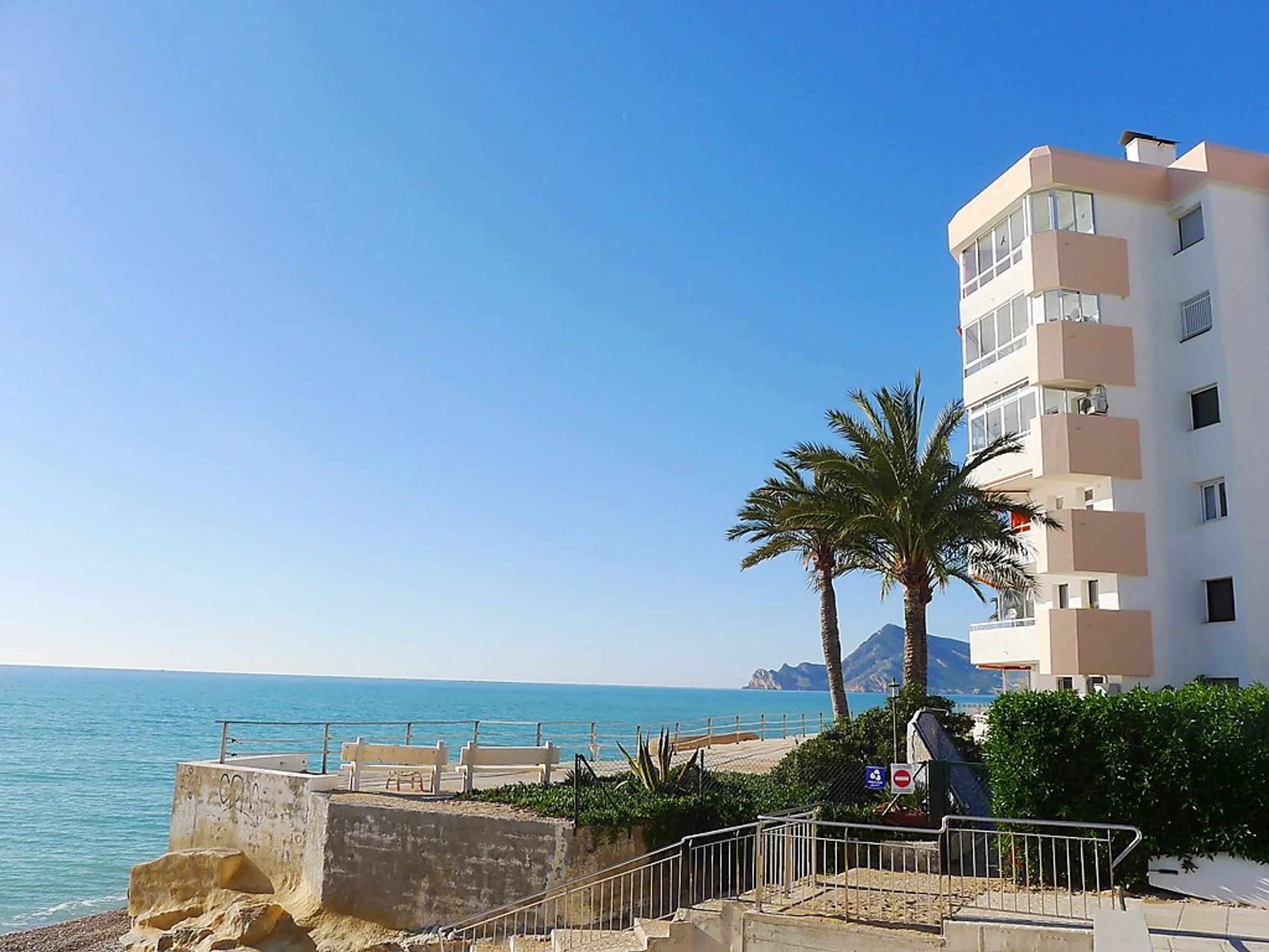 Petite résidence "Altea Sol". À 1 km du centre d'Altea, dans l'arrondissement Cap Negret, juste au bord de la mer, accès direct à la plage. En commun: terrain avec pelouse, 2 piscines (01.01.-31.12.). Douche extérieure. Infrastructures de la Maison: ascenseur. Magasins 400 m, supermarché 1 km, restaurant 200 m. Attractions à proximité: Aqualandia, Mundomar, Terra Mítica. Région de randonnées: Bernia.