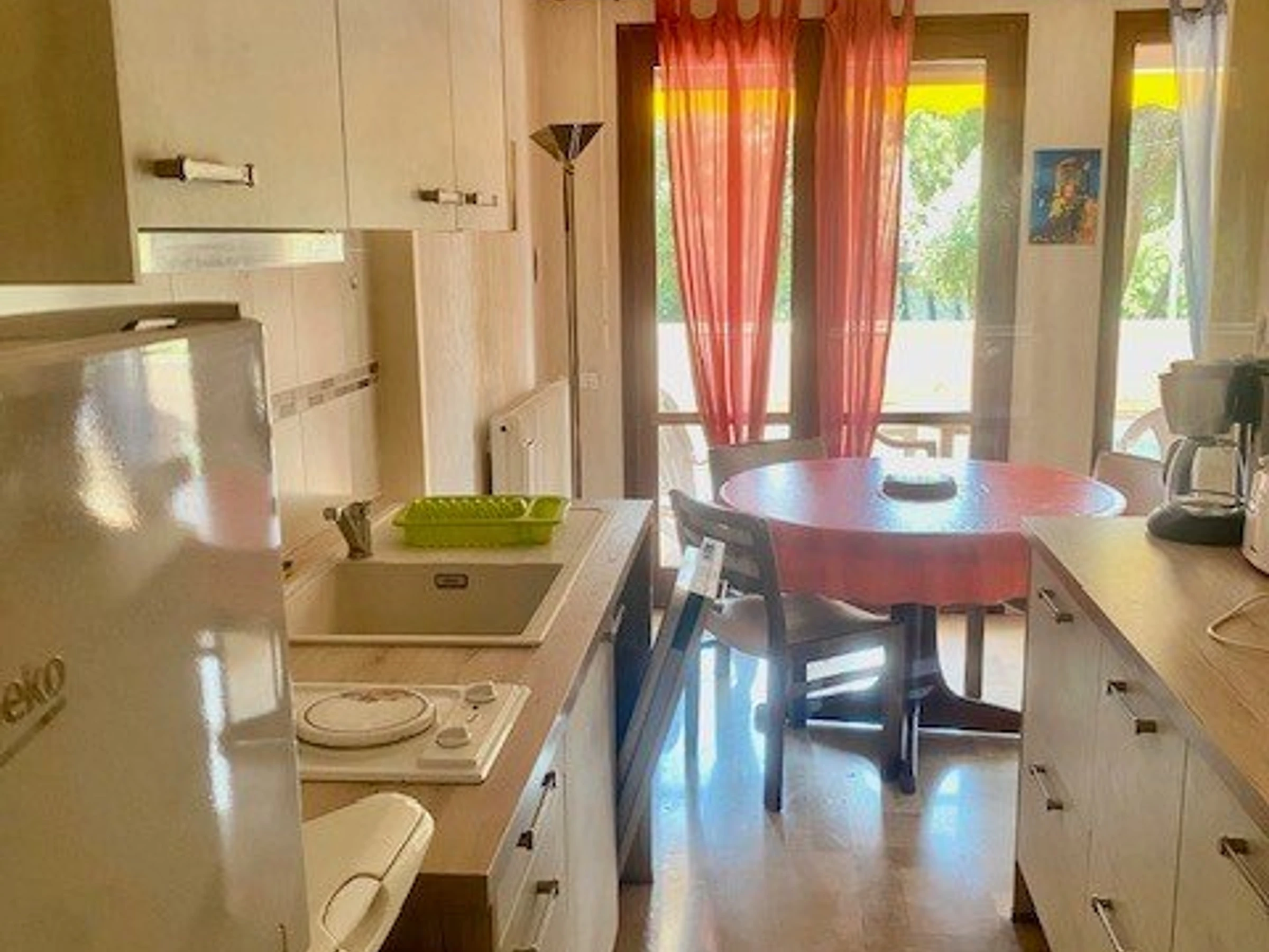 - CUISINE EQUIPEE : 2 plaques électriques, four, hotte, évier avec égouttoir, réfrigérateur/congélateur, cafetière électrique, bouilloire électrique, micro-ondes, grille-pain, lave-vaisselle, ustensiles usuels, 1 table + 4 chaises - fer à repasser.