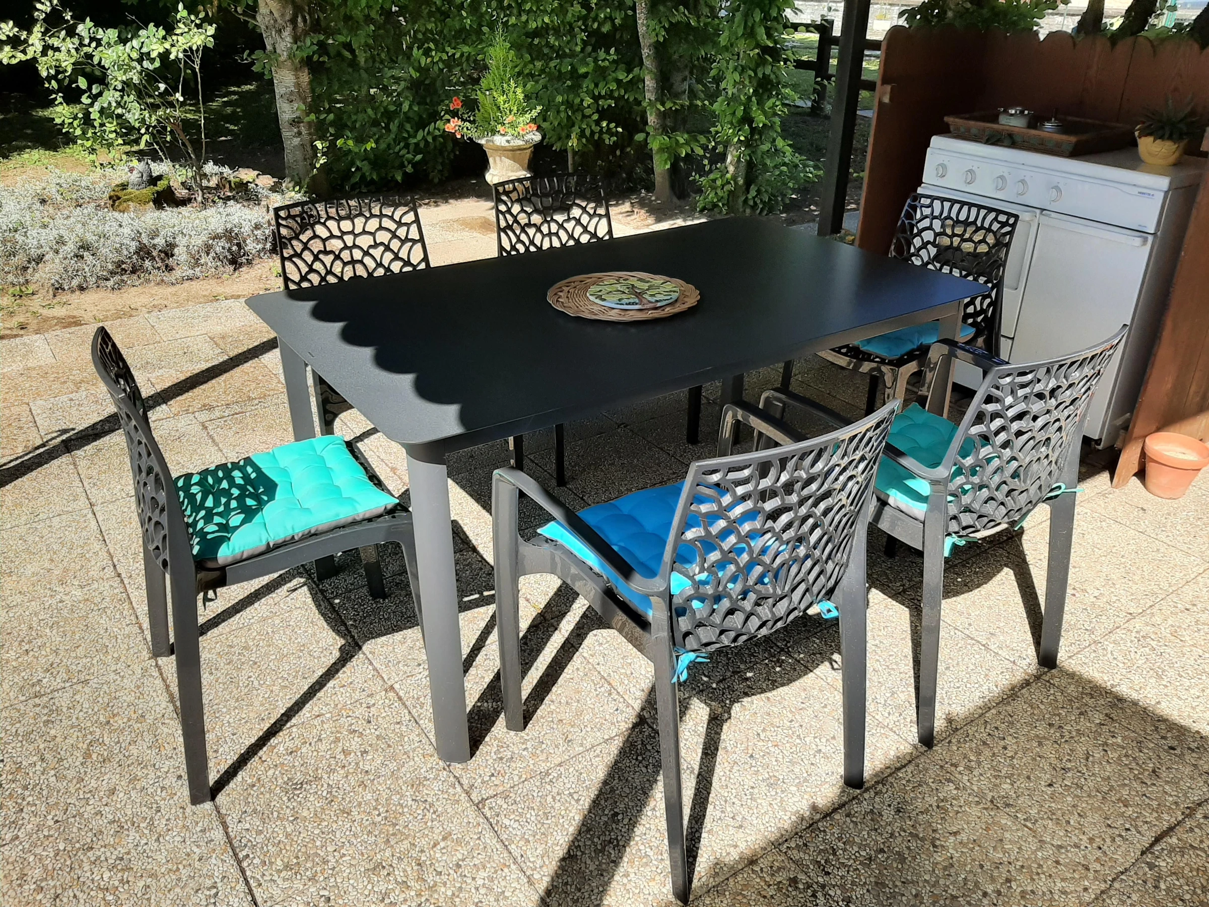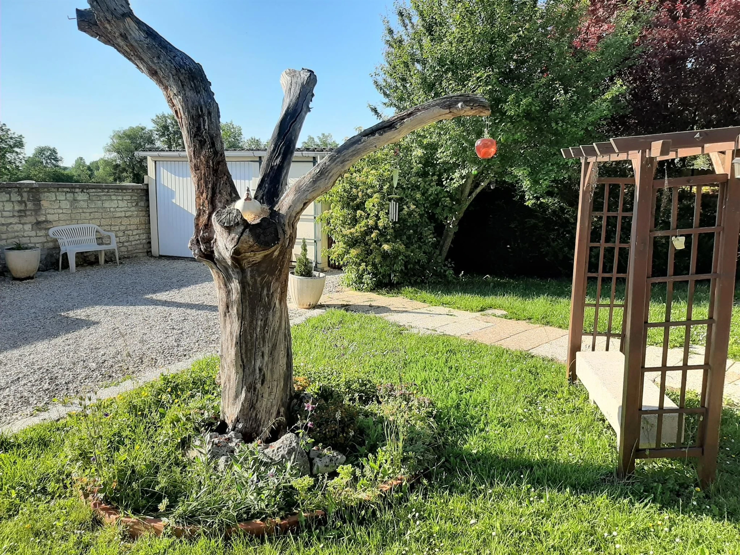 Grand jardin arboré et entièrement clos. Cuisine d'été. Salon de jardin et barbecue, grand garage.