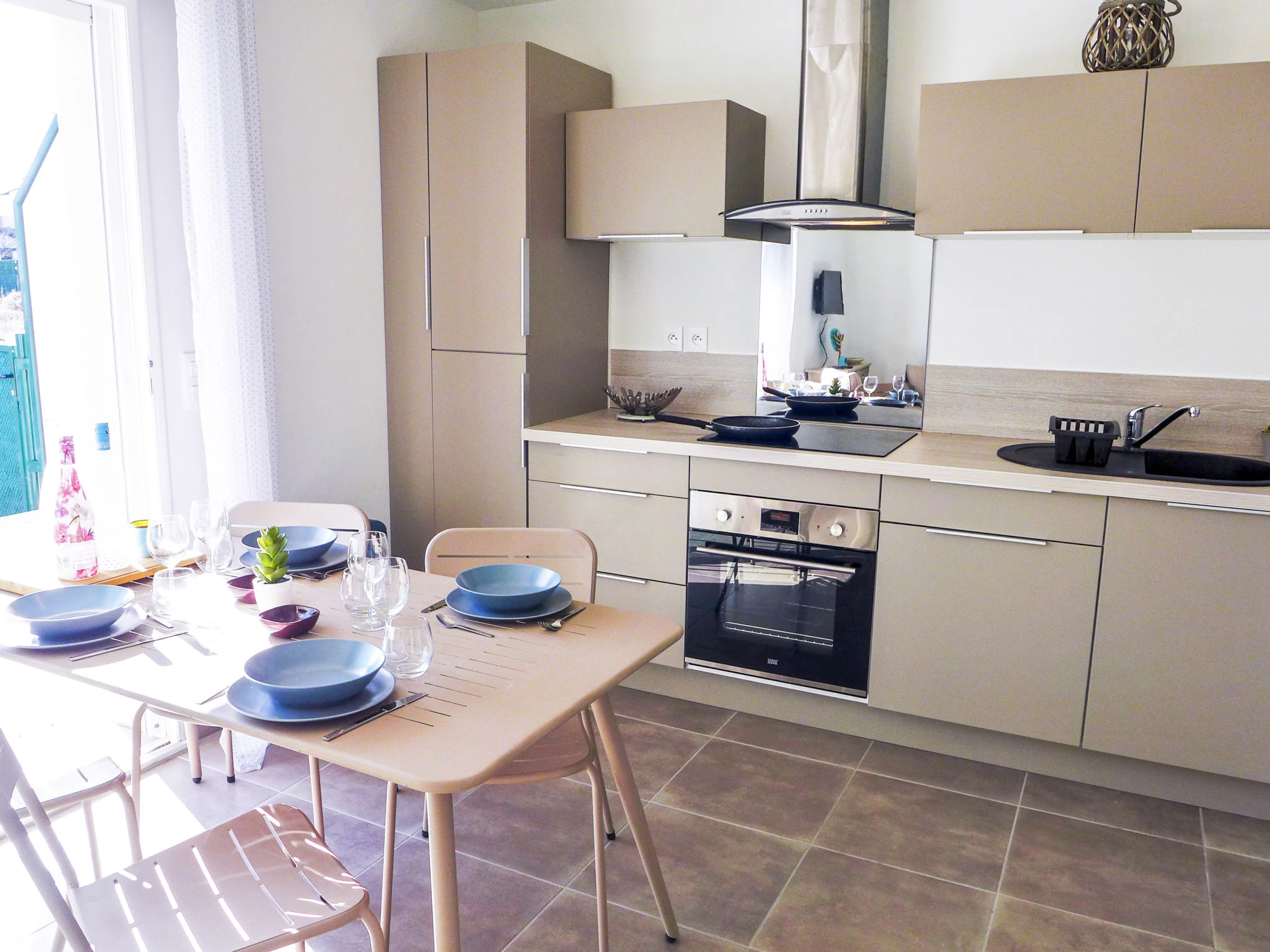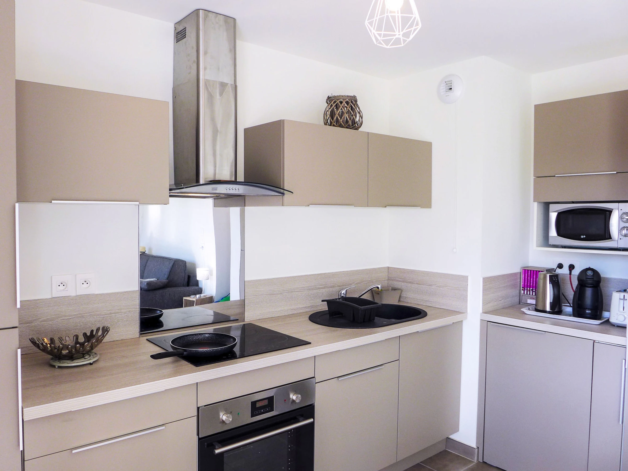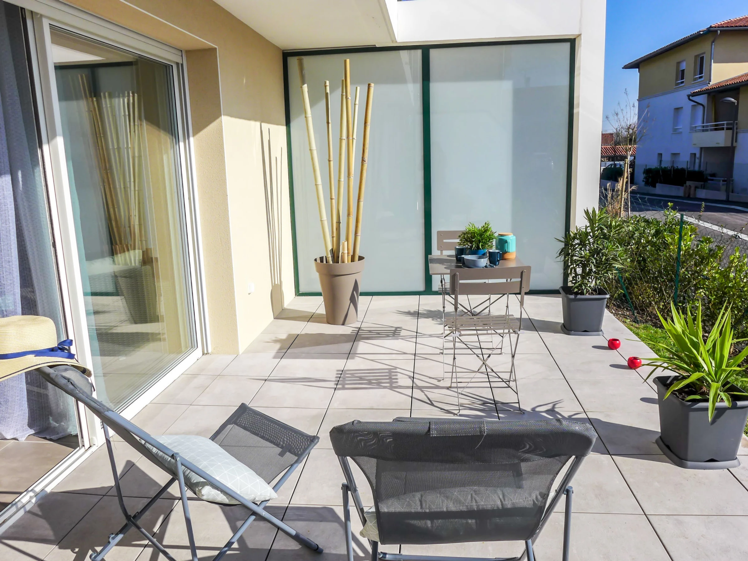 Anglet à 4 km de Biarritz: Résidence "Primevères", de 2 étages, année de construction 2017. À 3 km de la mer, à 3 km de la plage. Place de parking (nombre de places limité) près de la maison sur le terrain. Magasins 500 m, supermarché 1.3 km, restaurant 1 km, arrêt de bus "Hirigogne, ligne 4" 350 m, gare ferroviaire "Gare de Biarritz" 5.2 km, plage de sable "La Chambre d'Amour" 3 km. Terrain de golf 2.5 km, ecole de surf 3 km, tennis 4.5 km, centre équestre 3 km. Attractions à proximité: Marché des halles des 5 Cantons 1.7 km, Promenade de la Barre 3 km, Golf de Chiberta 3 km. La remise des clés a lieu à l’agence de Biarritz, 5 km.
