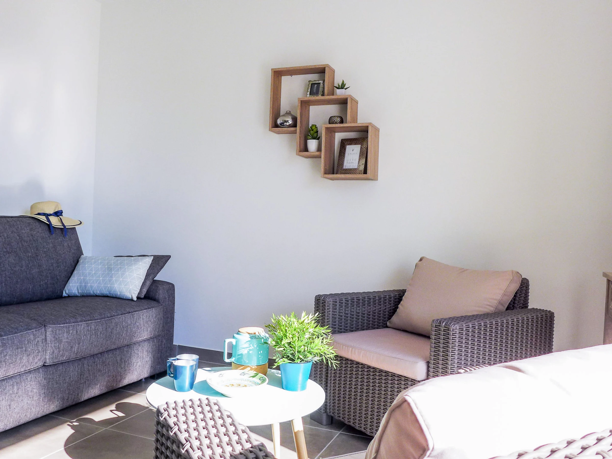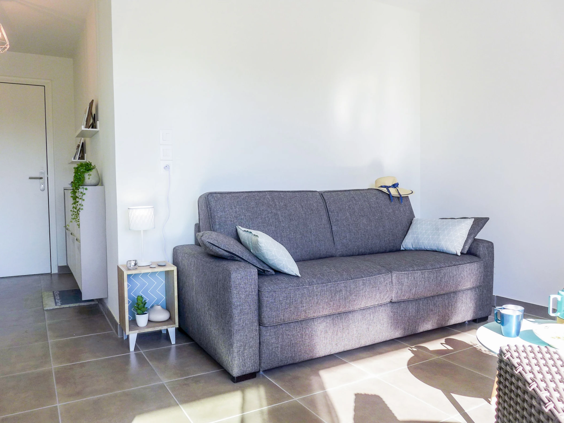 Studio 29 m2, au rez-de-chaussée, situation sud. Clair, aménagement confortable et moderne: séjour/salle à manger avec 1 divan-lit double (140 cm, longueur 190 cm), TV (écran plat), DVD. Sortie sur la terrasse, orientée sud. Cuisine ouverte (four, 4 plaques vitrocéramiques, four micro-ondes). Douche/WC. Terrasse 17 m2, situation sud. Meubles de terrasse. A disposition: lave-linge. Internet (Connexion WIFI, en sus). Veuillez noter: détecteur de fumée. [hidden]