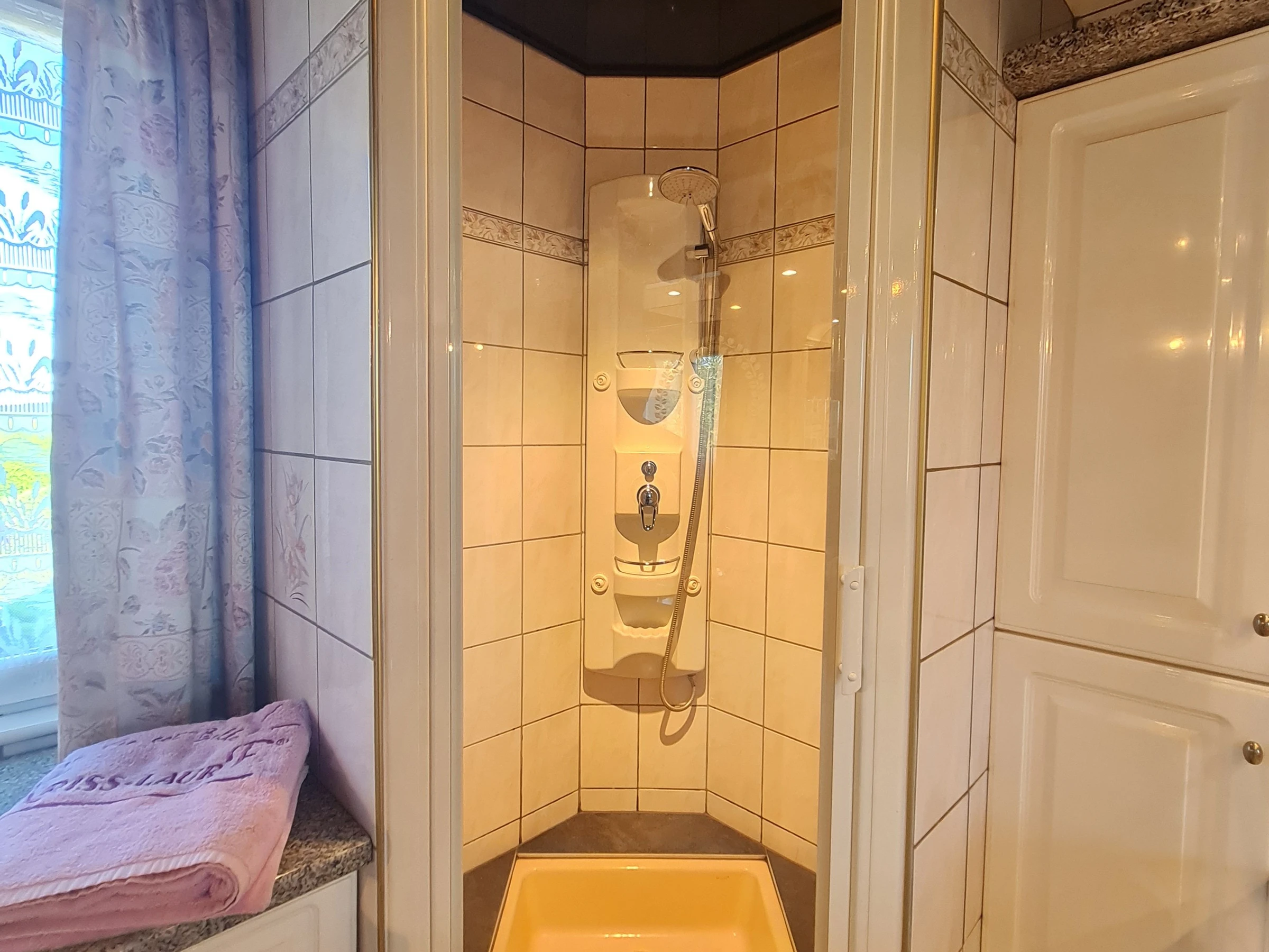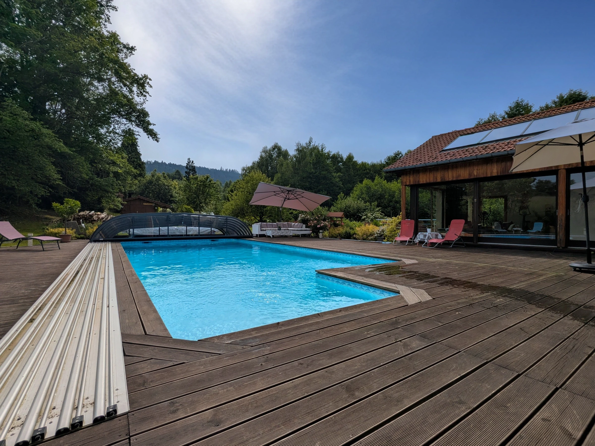Dans le respect des horaires d’accès, vous pourrez profiter des installations de la maison comprenant une belle piscine de 10 x 5 m. chauffée par des panneaux solaires (du 01 juin au 30 août), une terrasse d’été, des appareils de musculation . SPA intérieur toute l’année (25€ la séance) , un Hammam (30€ la séance)., et pour le côté bien-être des conseils et séances de réflexologie plantaire (30€ la demi heure ou 55€ l heure sur réservation). Au premier étage d'une grande maison la Chambre Sapin est équipée d'un lit 2 pers. 160/200 cm et dispose d'un balcon. WC avec lavabo attenant. Salle de bains privative (baignoire, douche) non attenante.