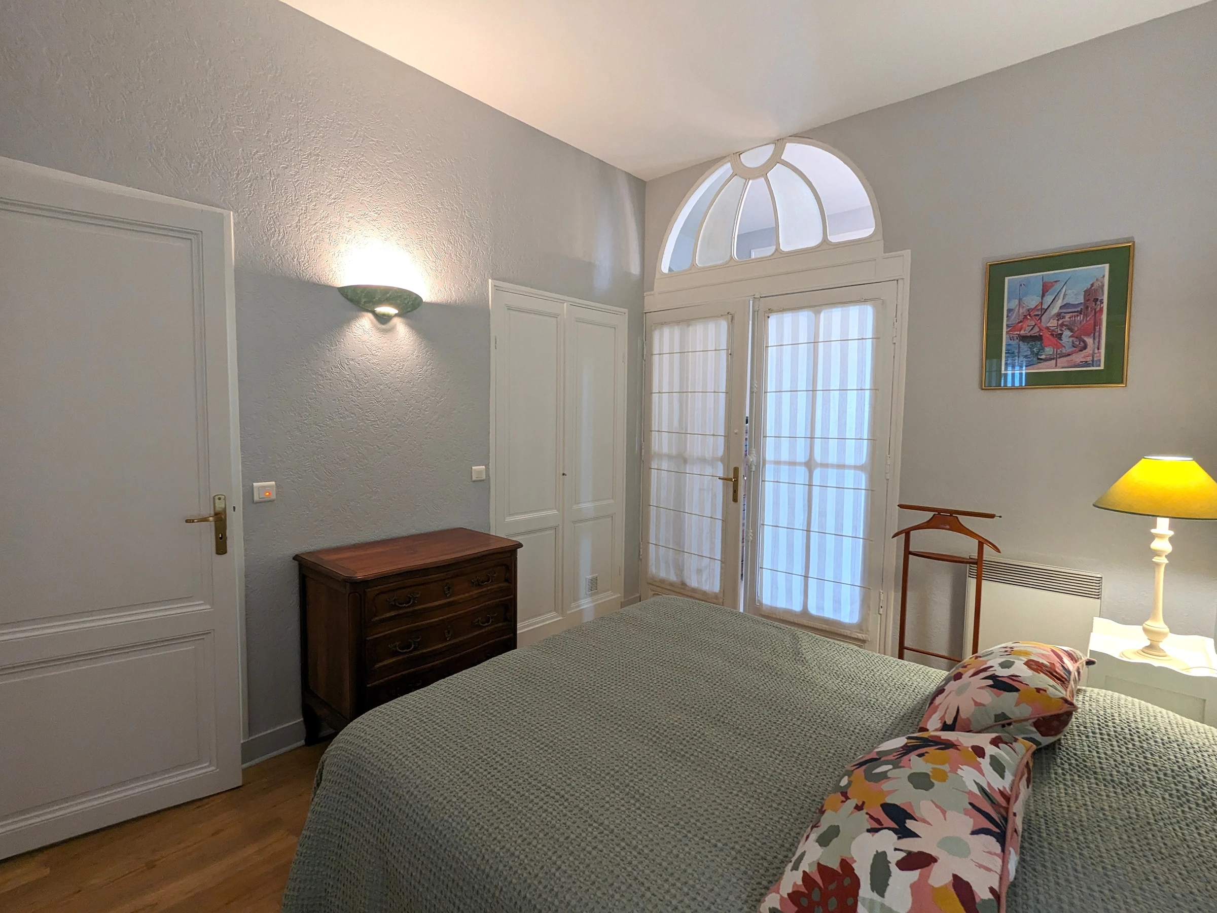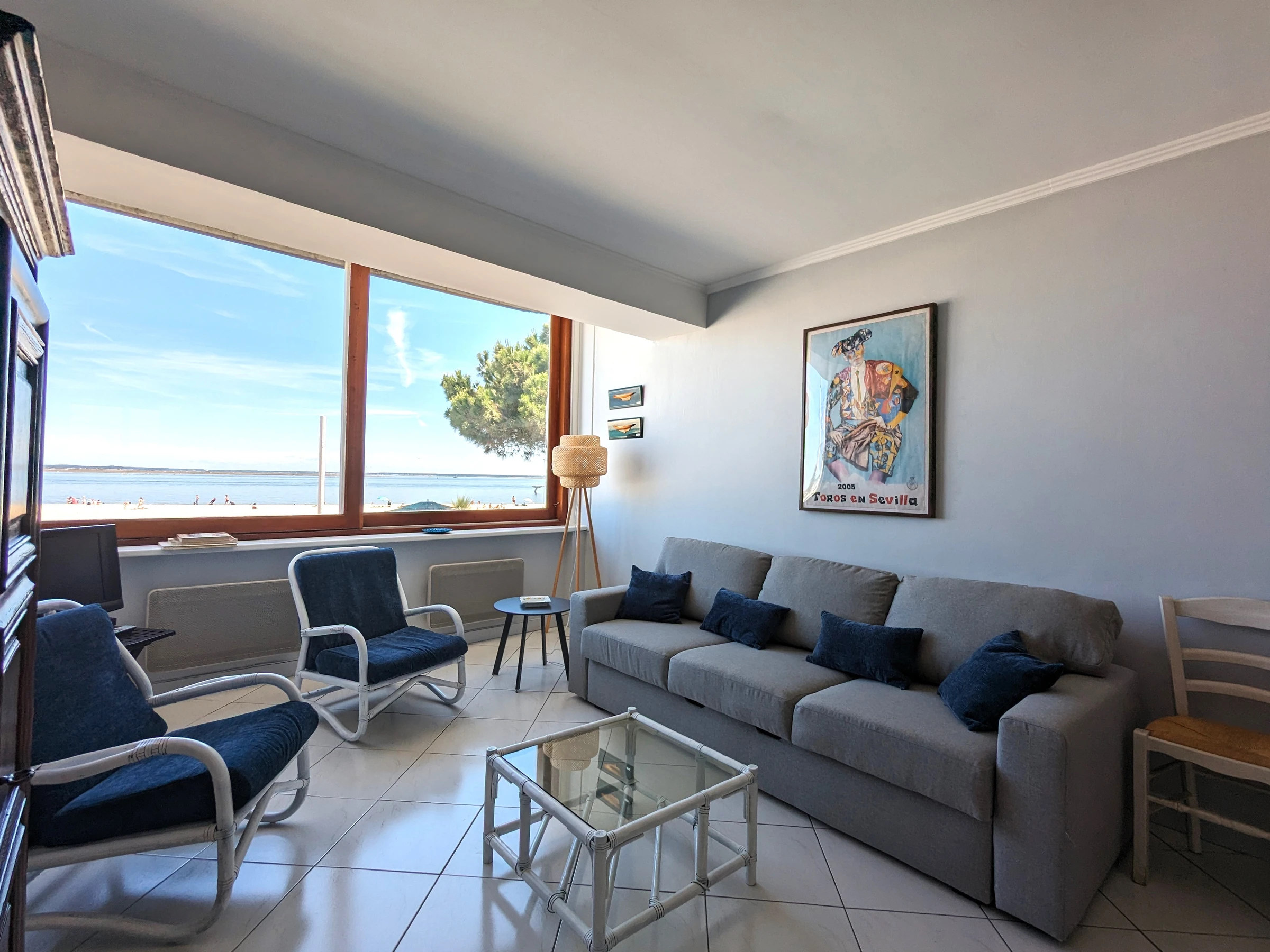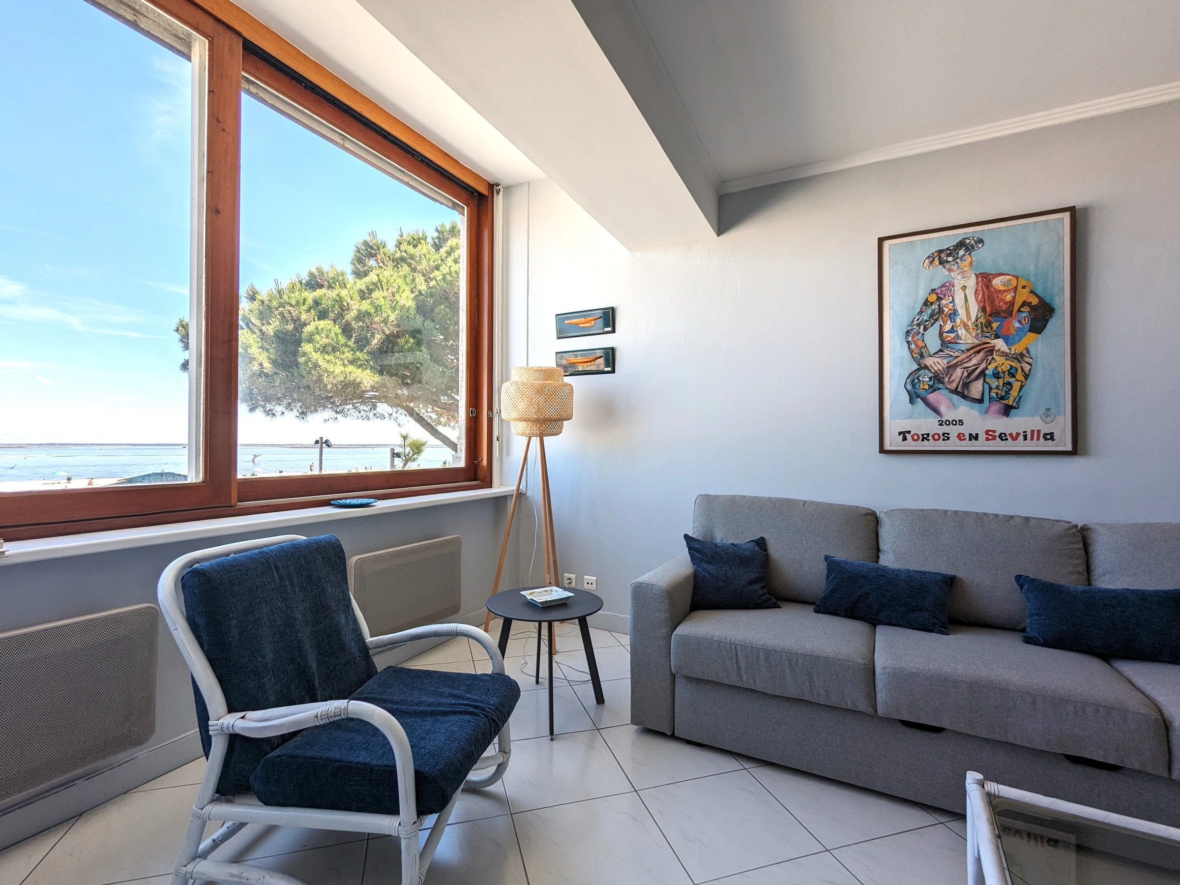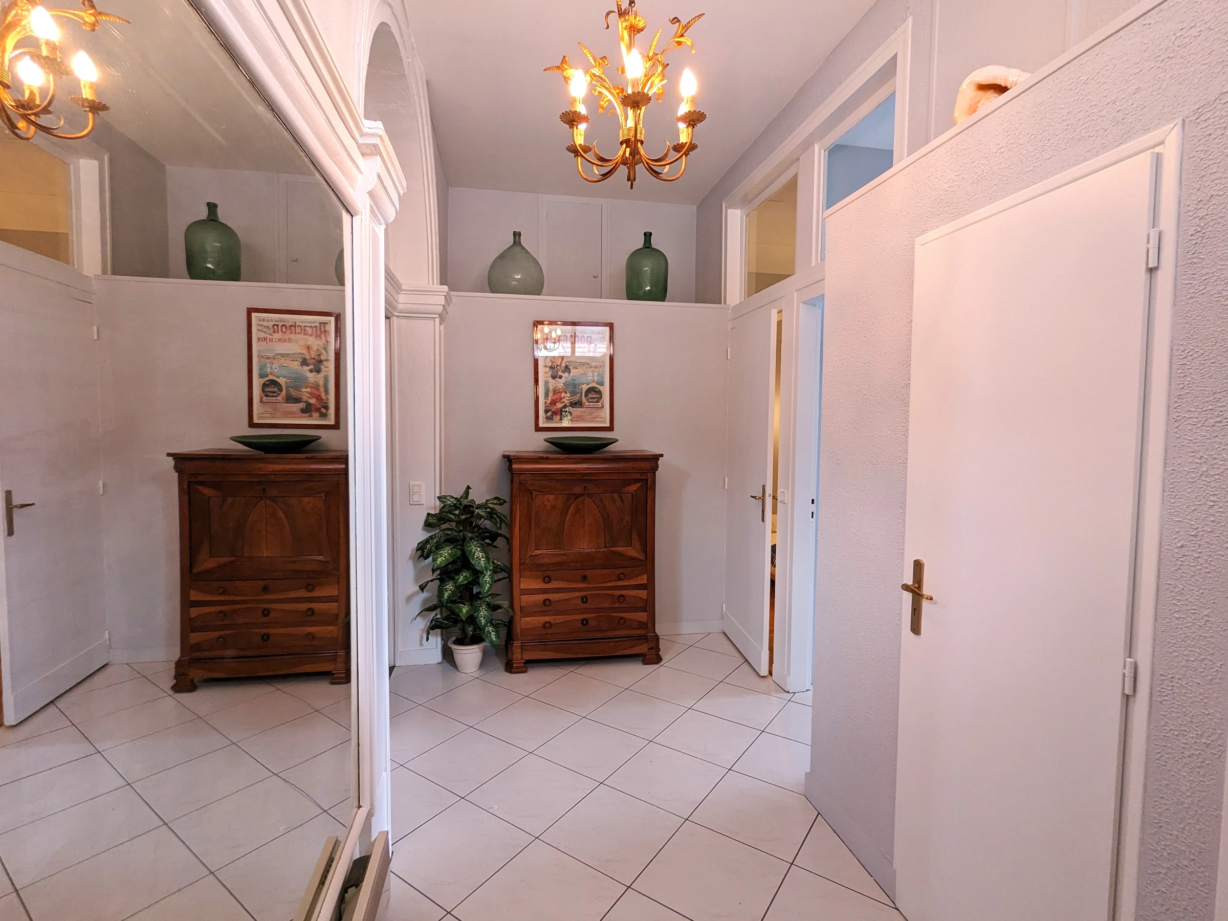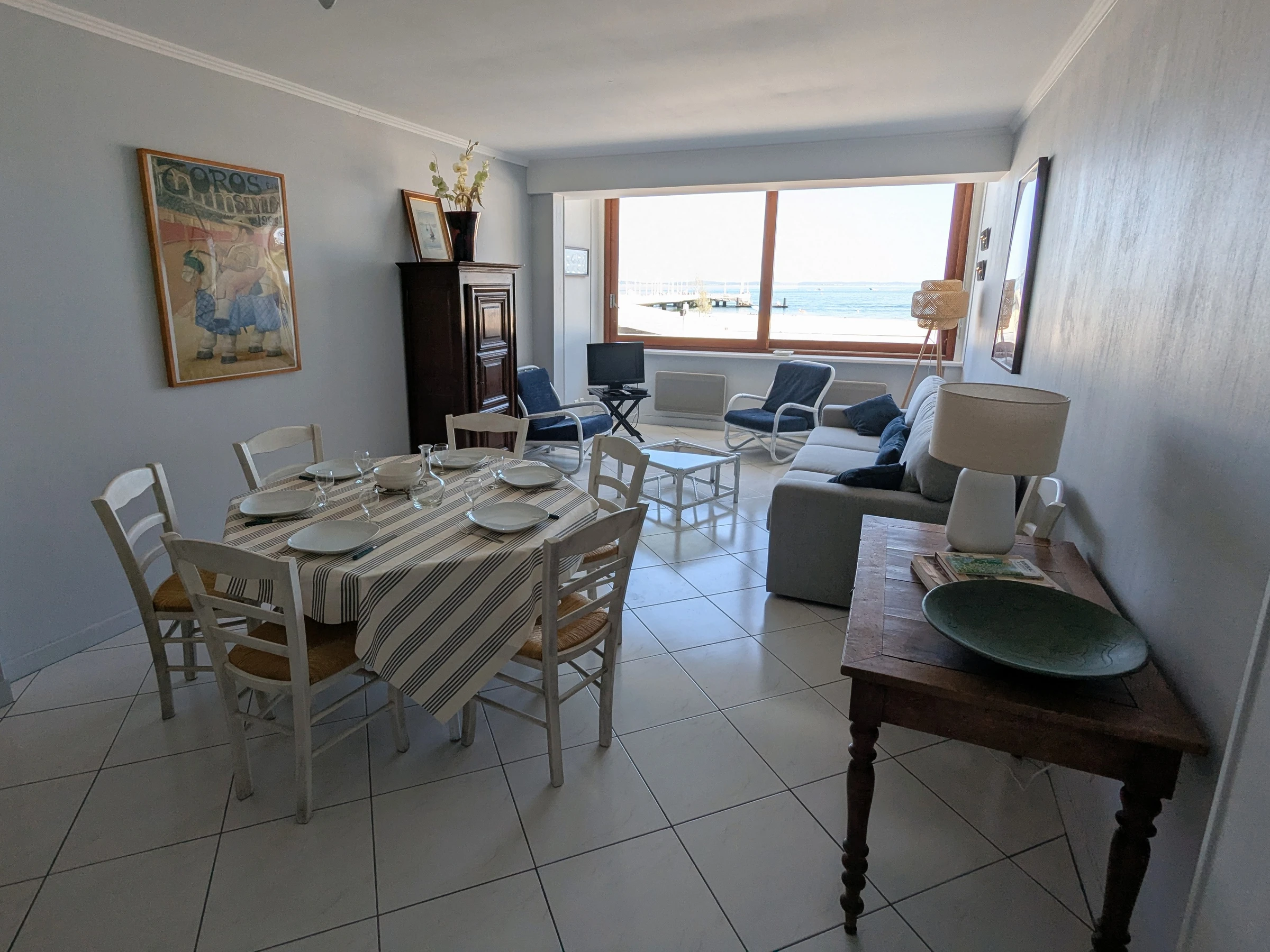 L'appartement est au RDC de la résidence, il donne face au Bassin (= promenade Gounouilhou, au dessus des restaurants du front de mer). Il se compose de 75 m² hab. comprenant :