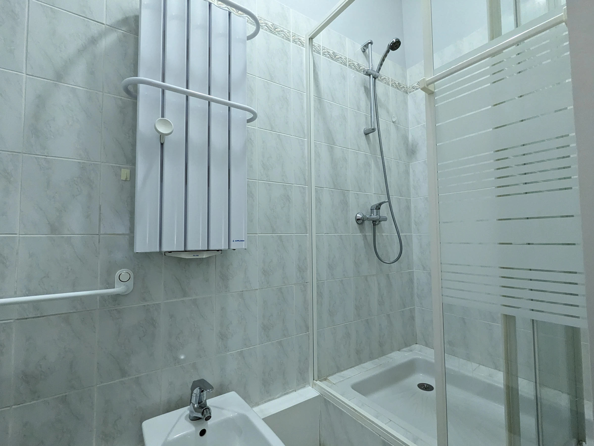 -1 chambre (lit 140 x 190 cm - pas de fenêtre) - placard avec lave-linge + salle d'eau (cabine de douche, lavabo)