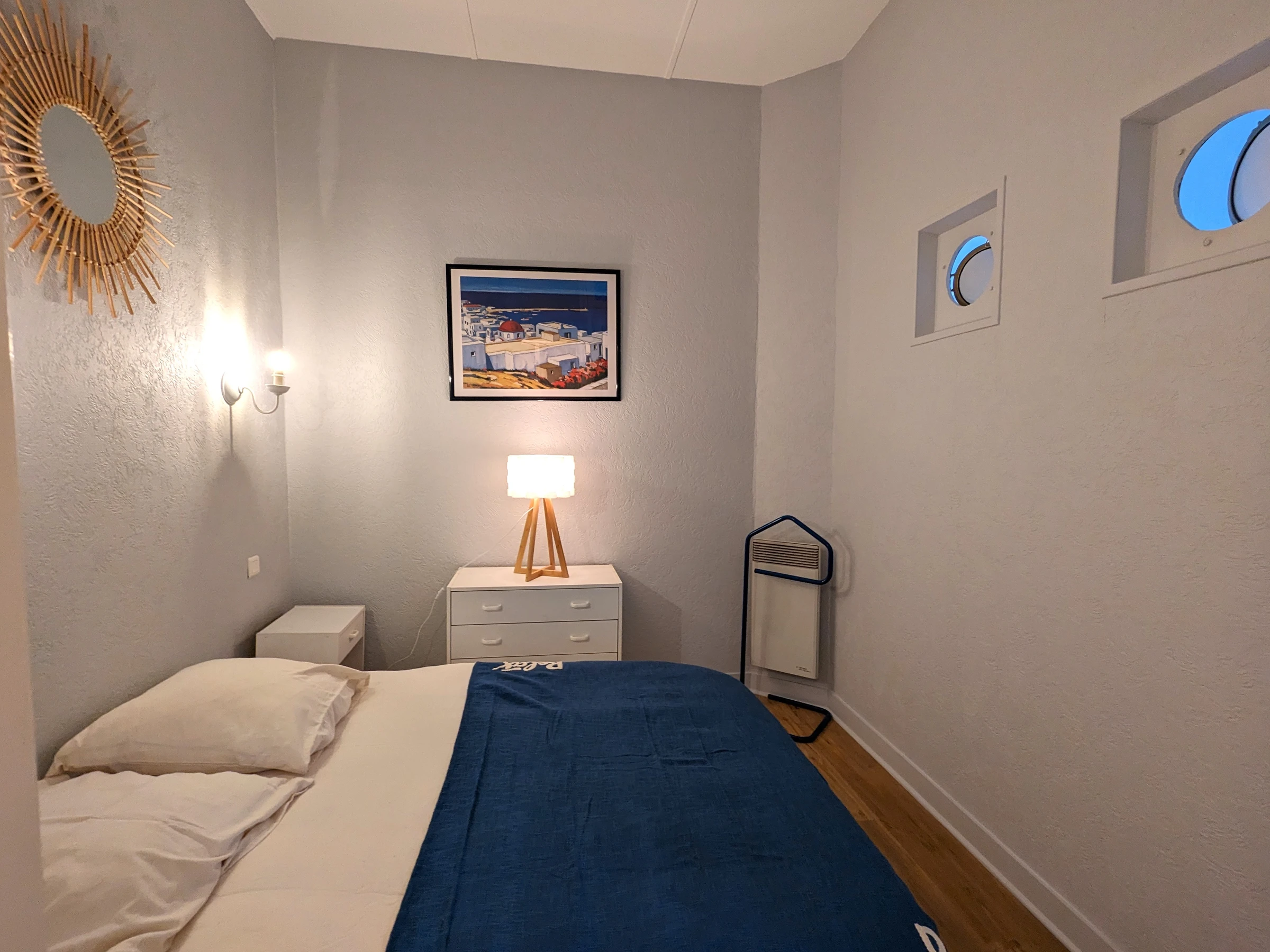-1 chambre (lit 160 x 200 cm - pas de fenêtre) + salle d'eau (cabine de douche, lavabo)