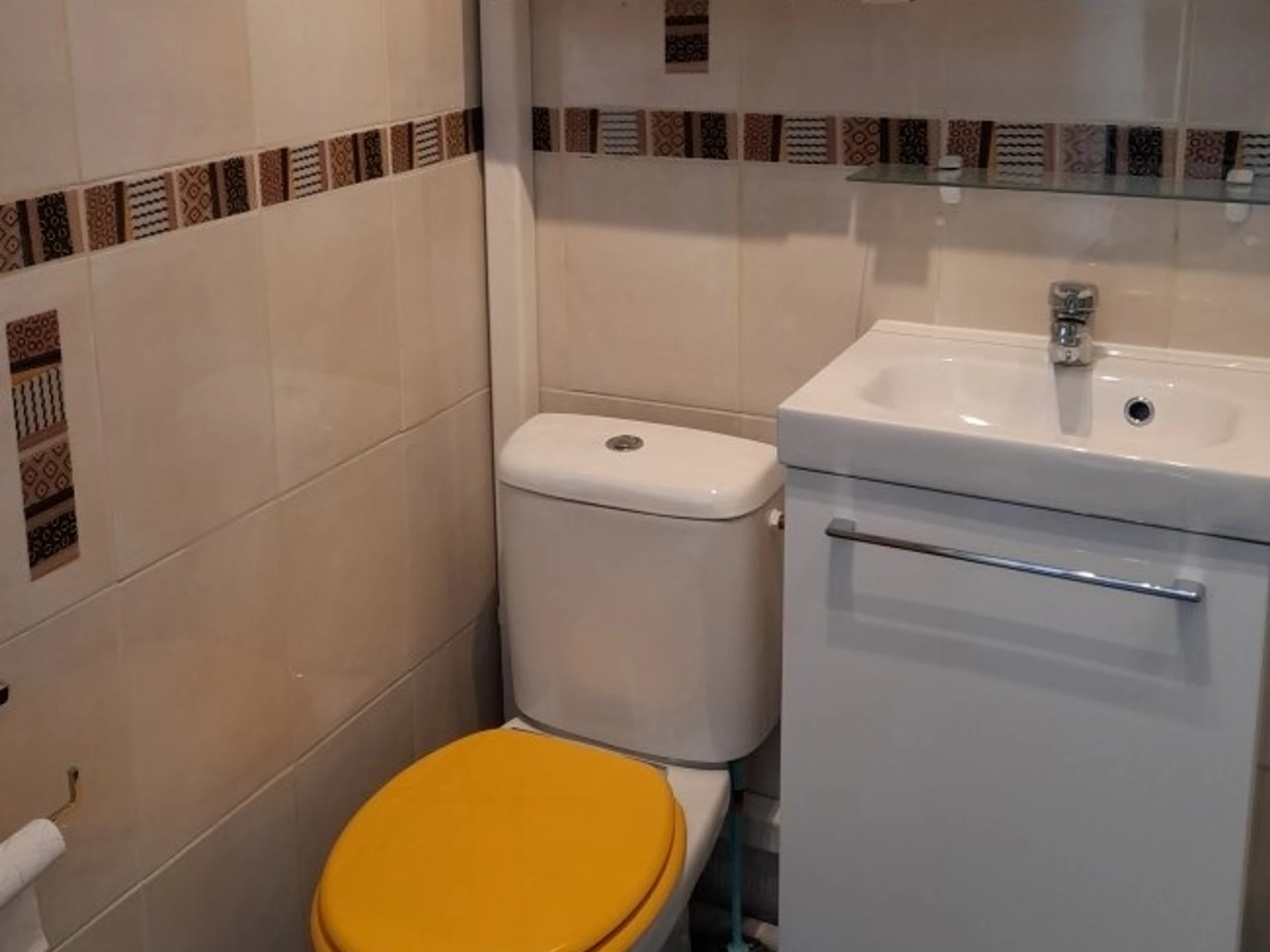 Sa chambre avec une literie en 140 qui offre un couchage pour deux personnes et placard. Une salle d'eau avec WC.