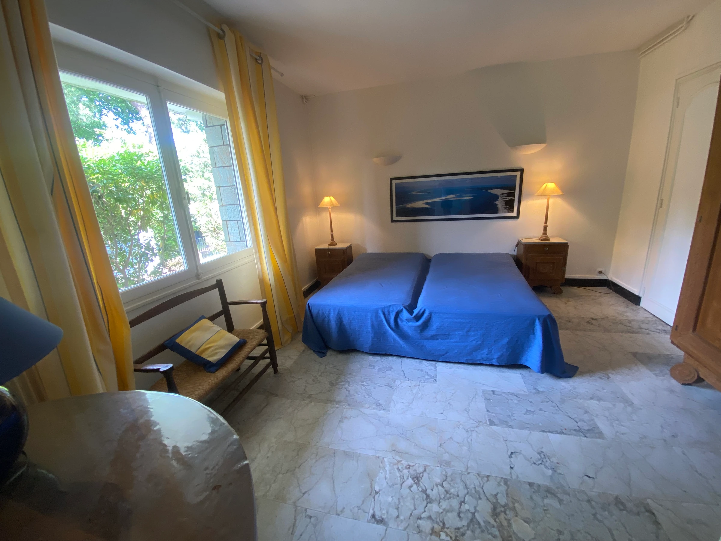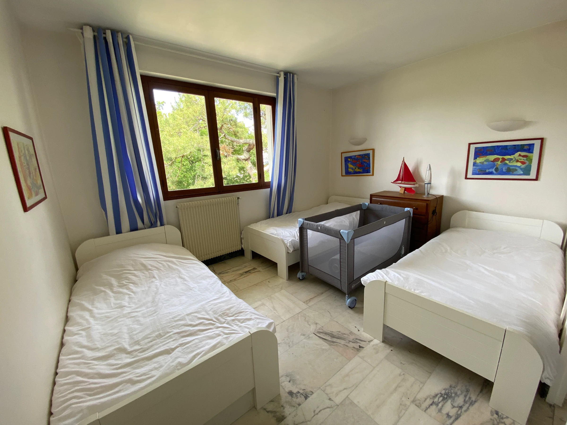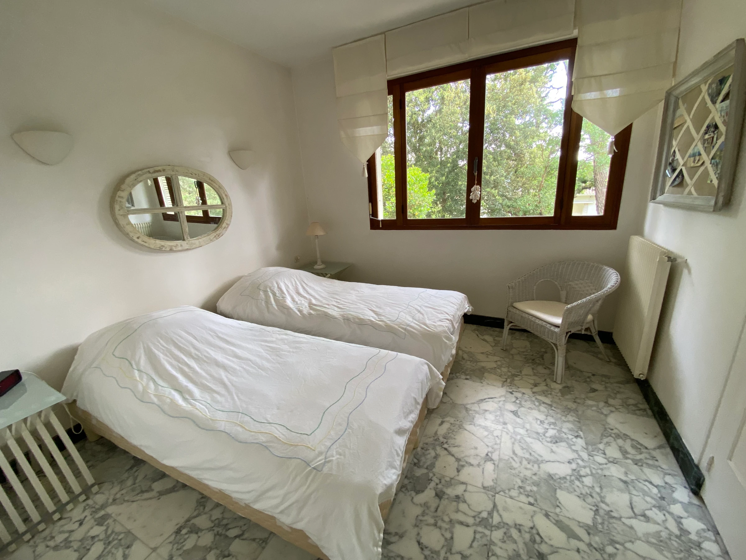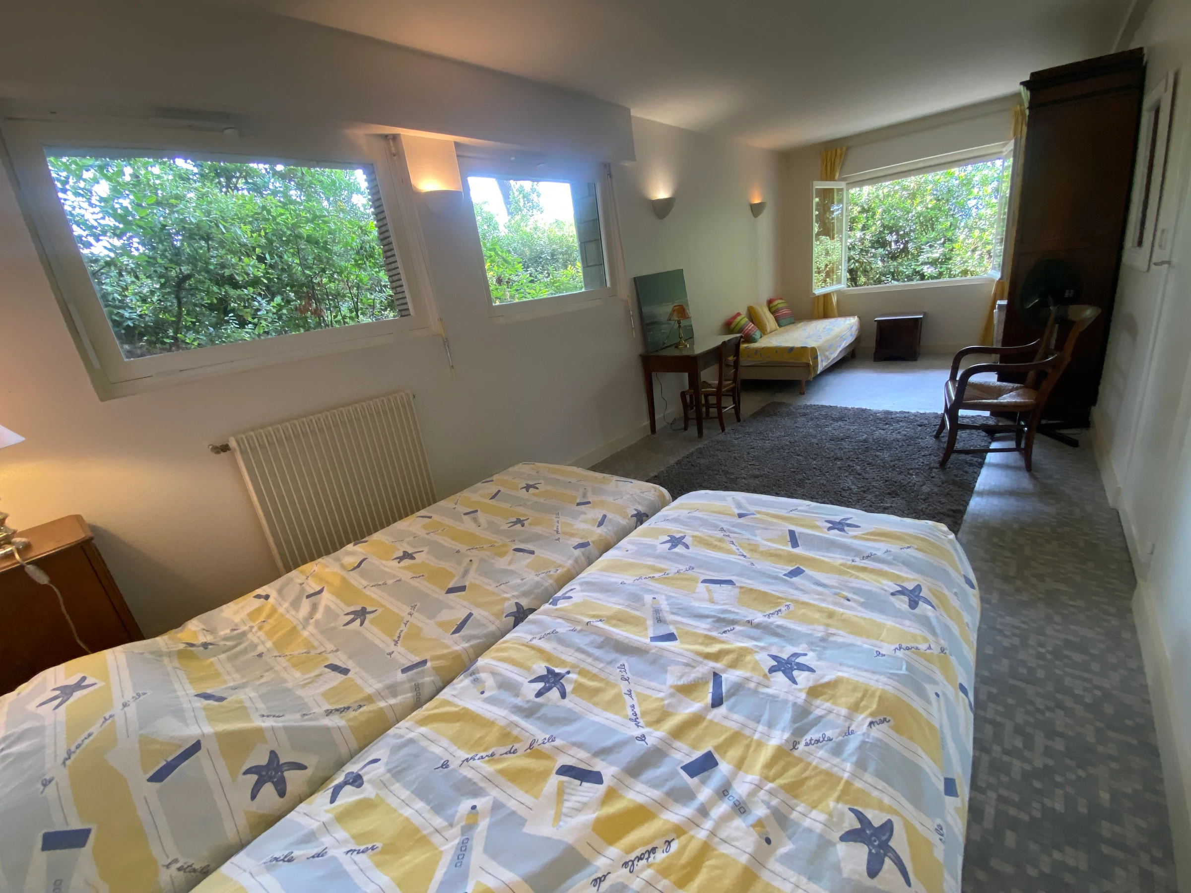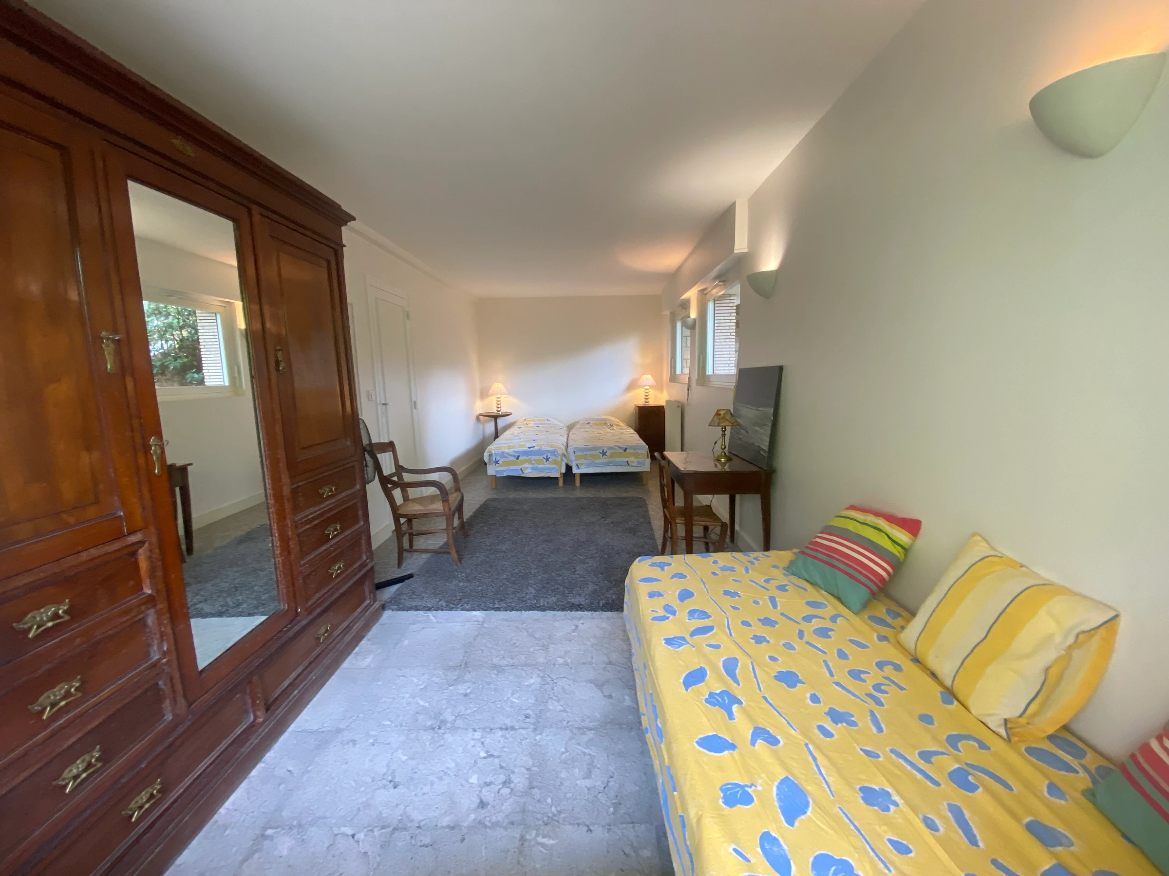 rez de jardin : -1 Chambre avec 2 lits 1 place (90X190) + cabinet de toilette.