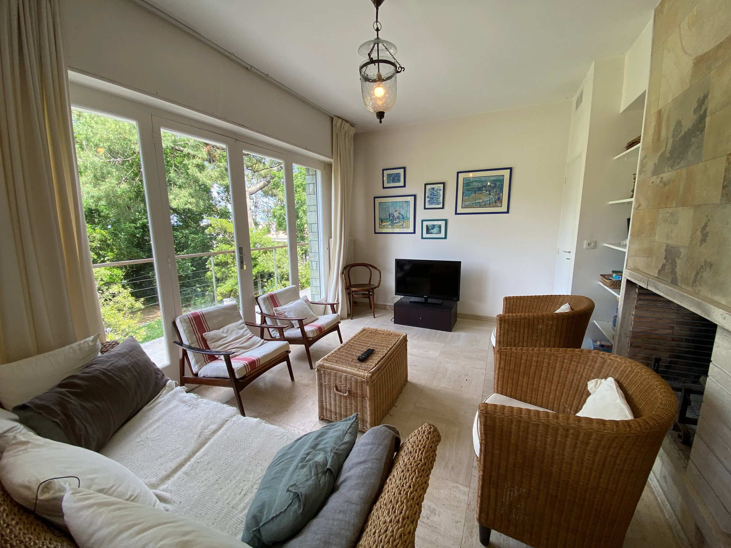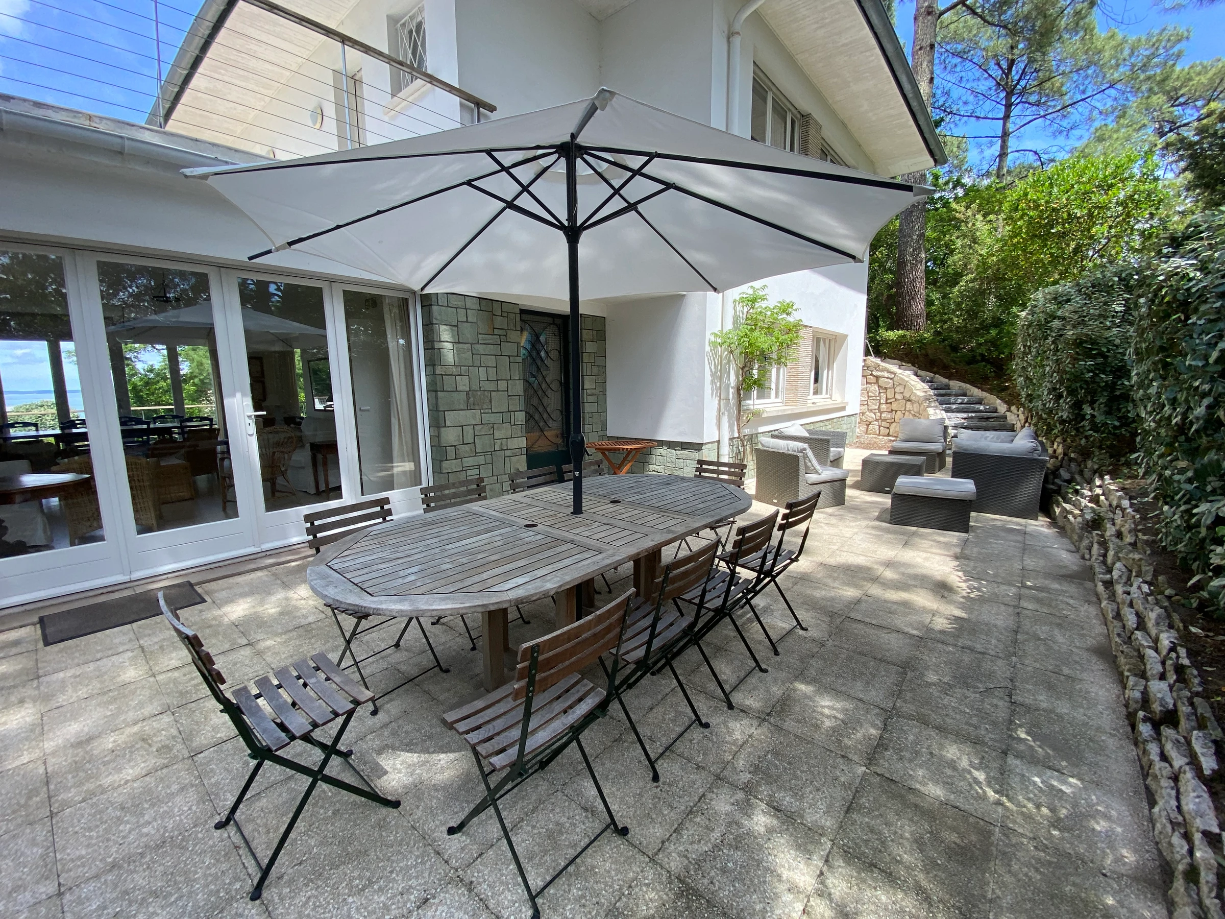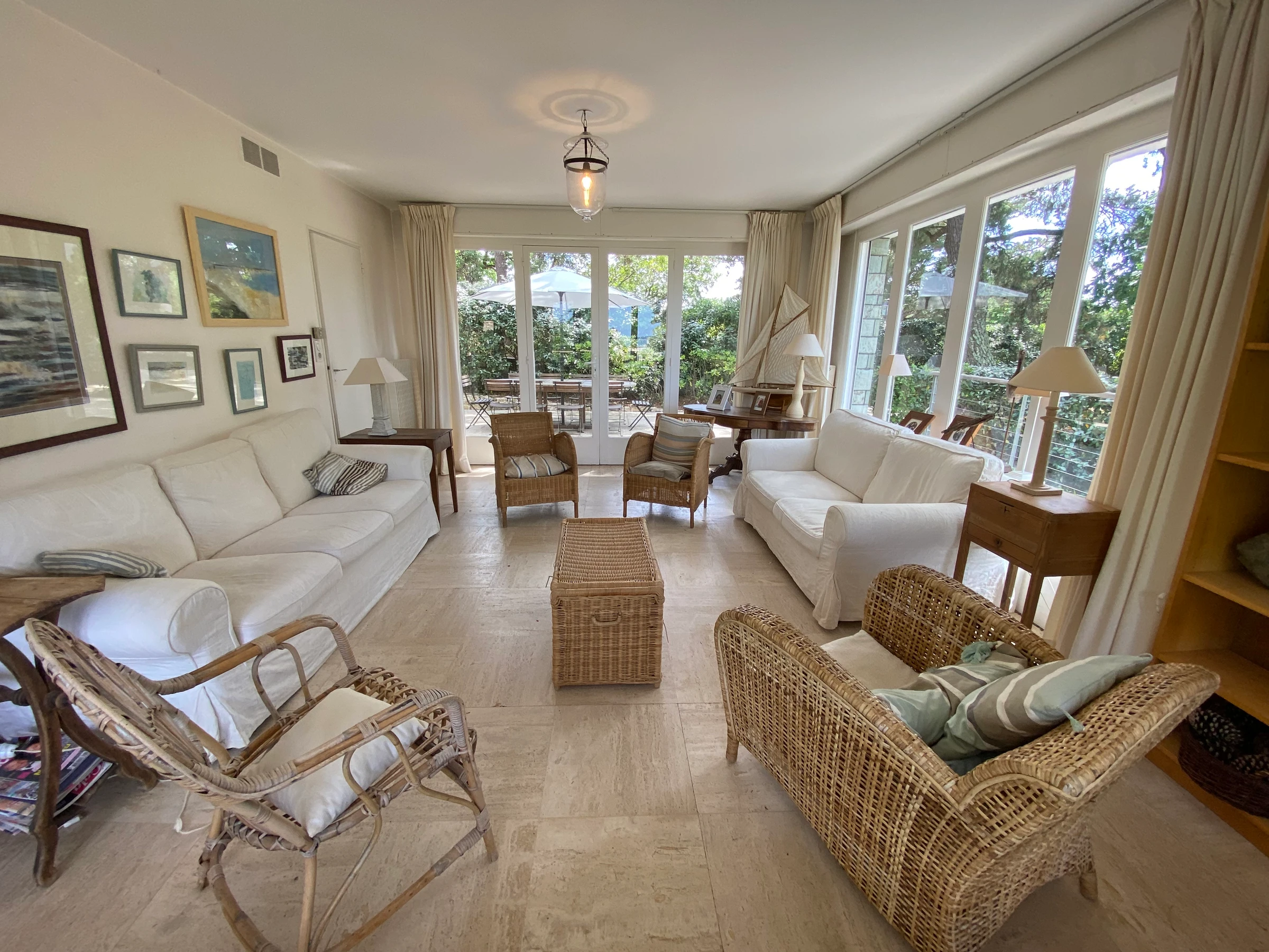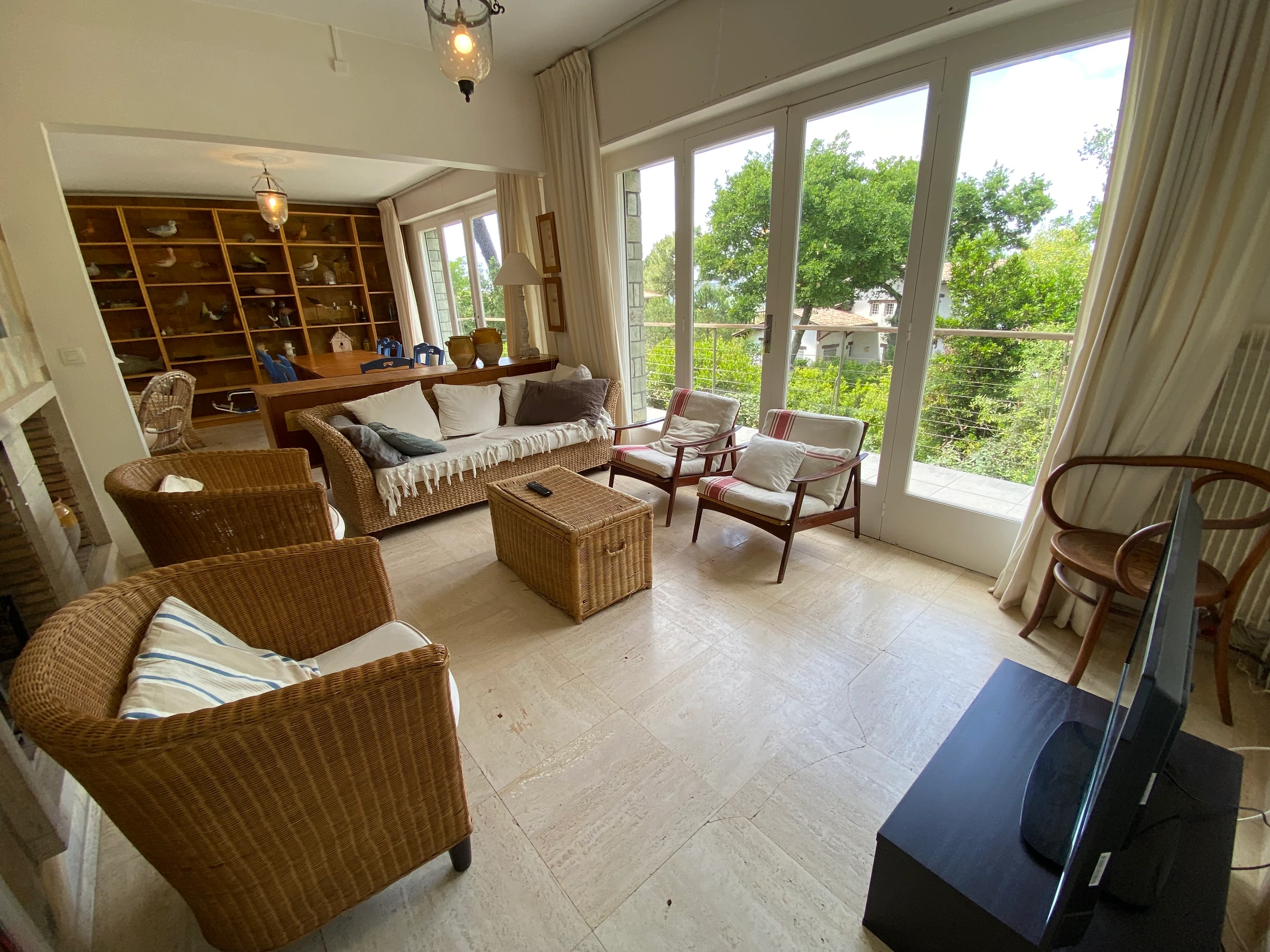 - séjour double avec coin repas et salon TV donnat sur terrasse avec mobilier et jolie vue mer