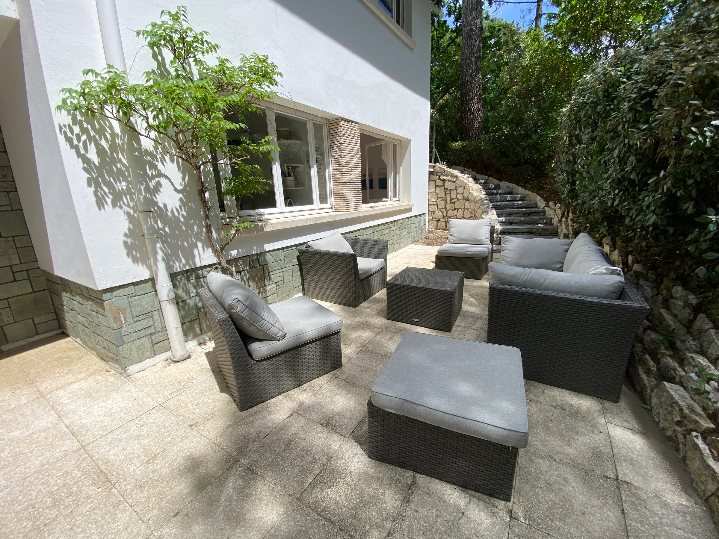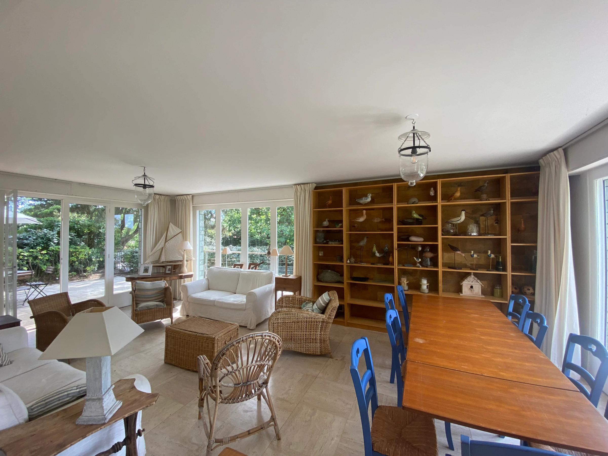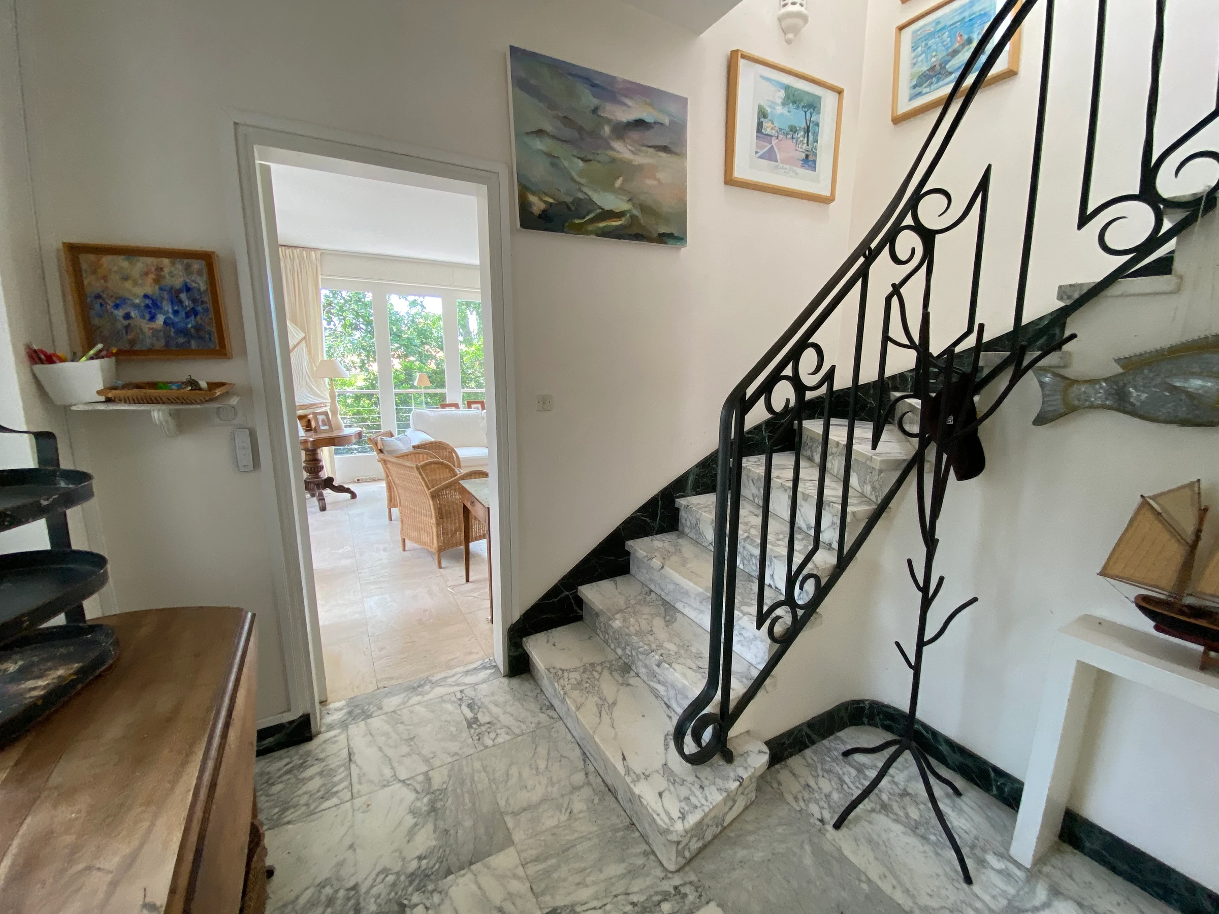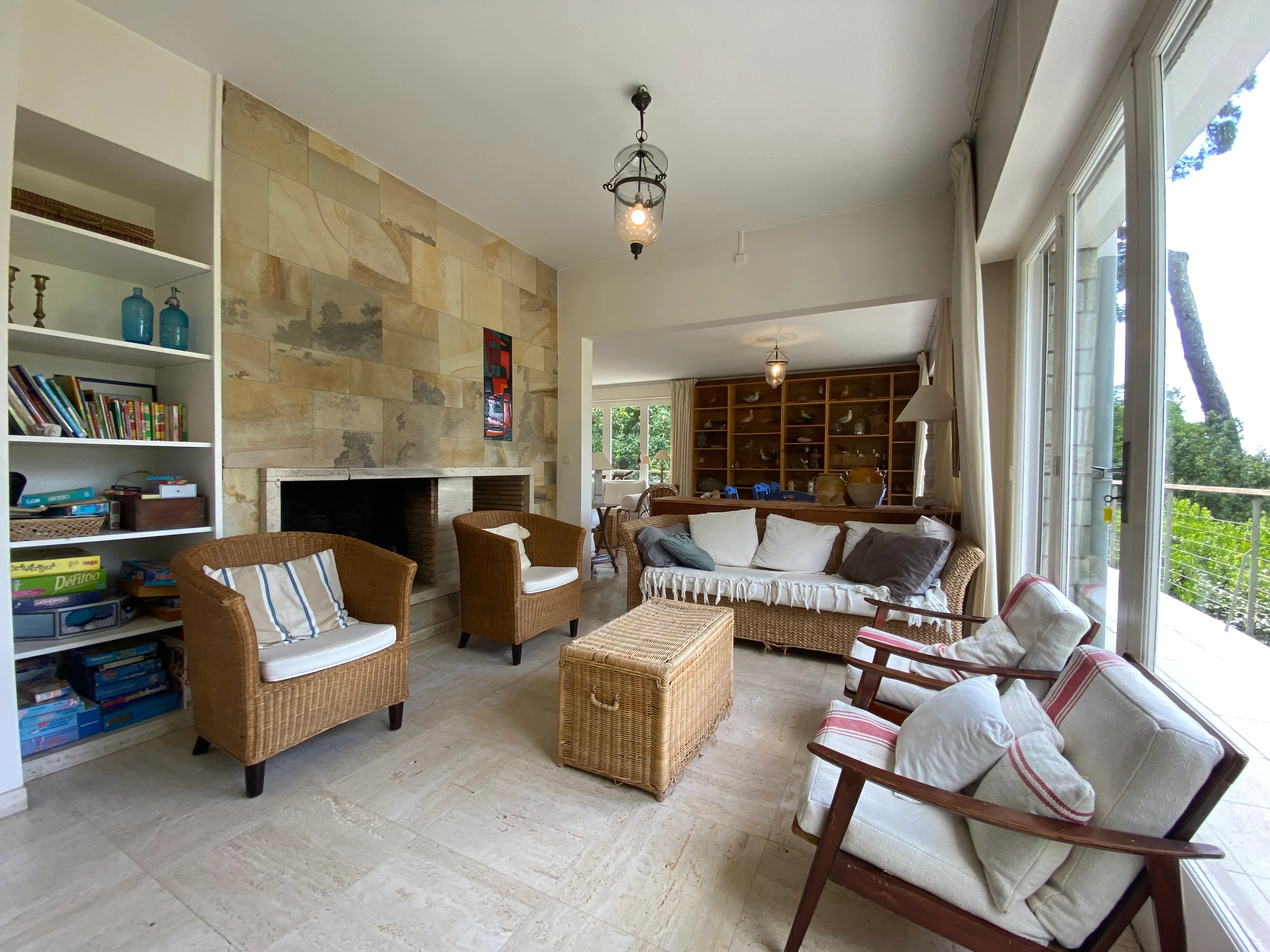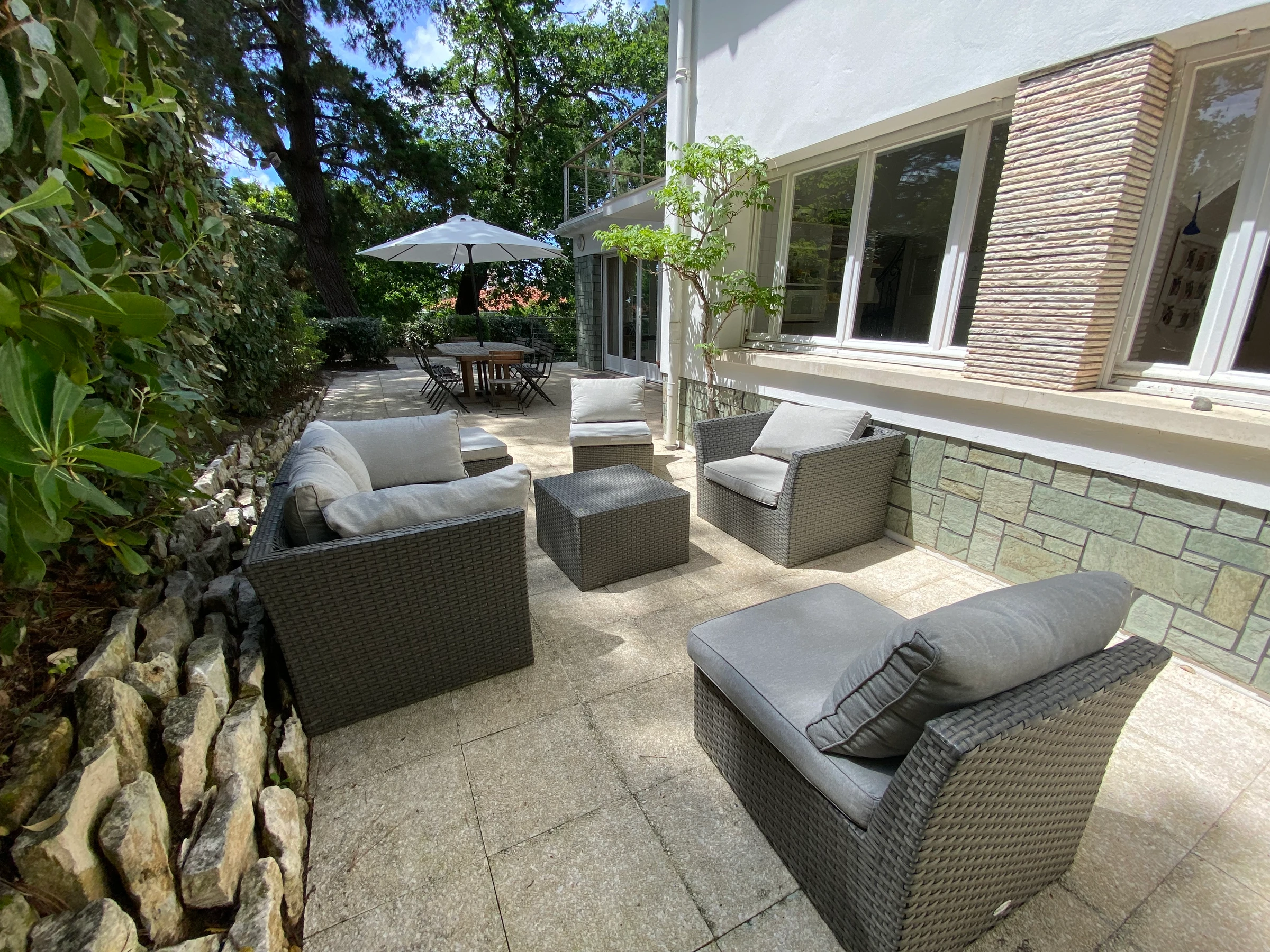 - séjour double avec coin repas et salon TV donnat sur terrasse avec mobilier et jolie vue mer