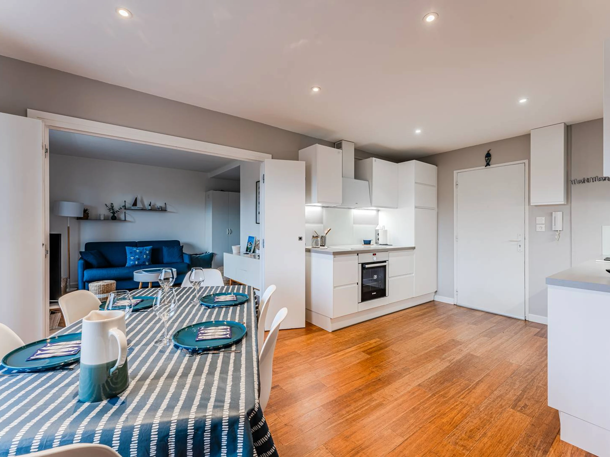 L’entrée dessert une cuisine entièrement équipée avec lave-vaisselle, machine Nespresso, four traditionnel, four micro-ondes, réfrigérateur avec compartiment congélateur, plaque à induction trois feux et hotte aspirante, ouverte sur un agréable espace salle à manger. L’espace nuit se compose d’une chambre exposée nord, équipée d’un lit double en 140 cm et de rangements, tandis que le salon, doté d’une télévision et d’un canapé-lit convertible en 140 cm, s’ouvre sur une alcôve offrant de nombreux rangements dont à l'intérieur un lave-linge et dessert une salle d’eau moderne avec douche à l’italienne et toilettes.