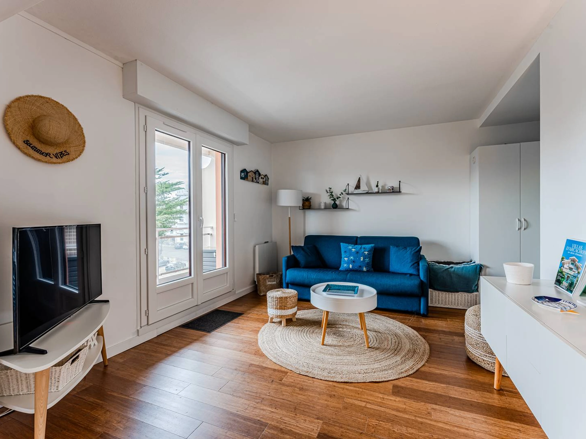 Situé dans le quartier prisé de Pereire, à seulement 170 mètres de la plage, cet appartement T2 d’environ 48 m² se trouve au 3ème étage avec ascenseur d’une résidence soignée, en seconde ligne. Il dispose d’un balcon filant offrant une vue dégagée sur la verdure, ainsi que d’une place de stationnement privative. Confortable et fonctionnel, il peut accueillir jusqu’à quatre personnes pour un séjour à deux pas du bassin.