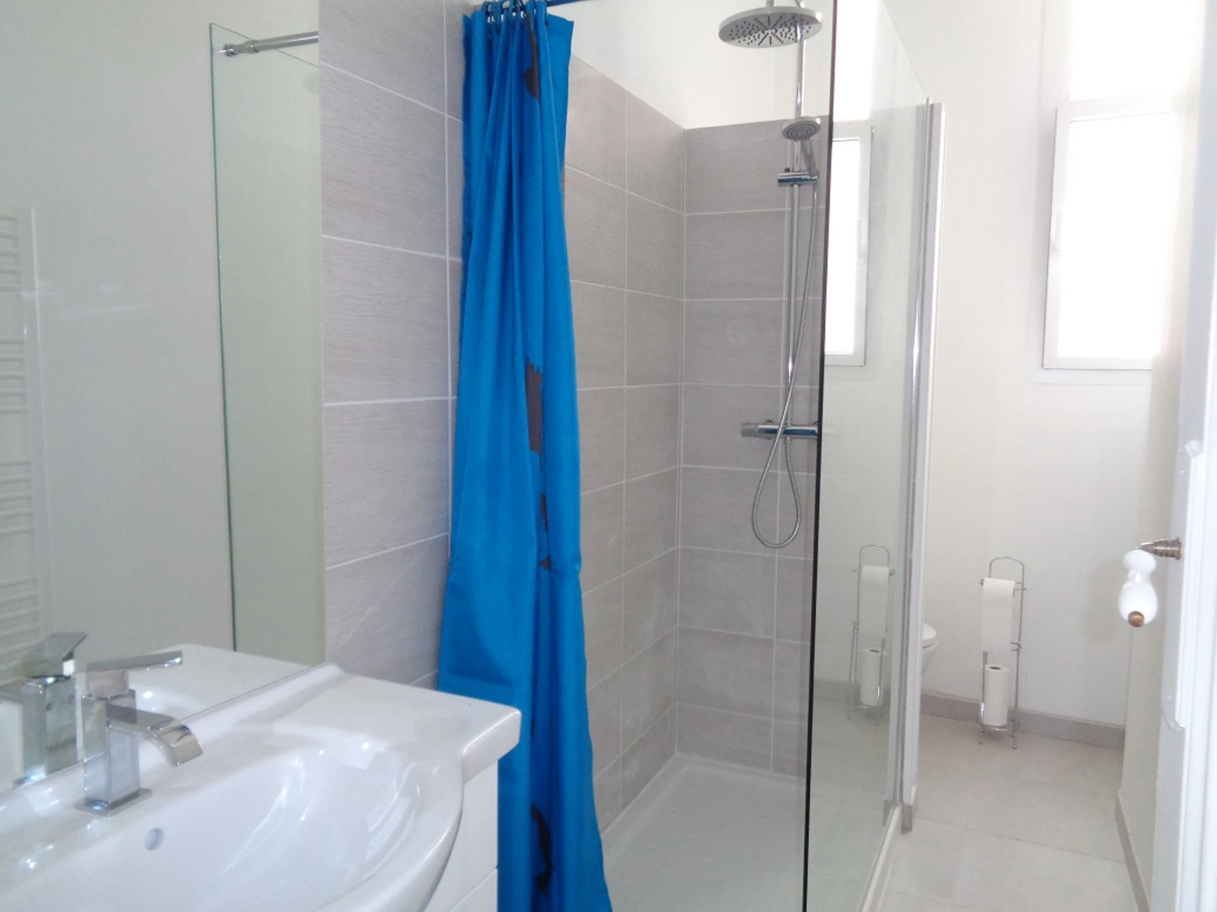 - salle d'eau avec lavabo, douche et WC.