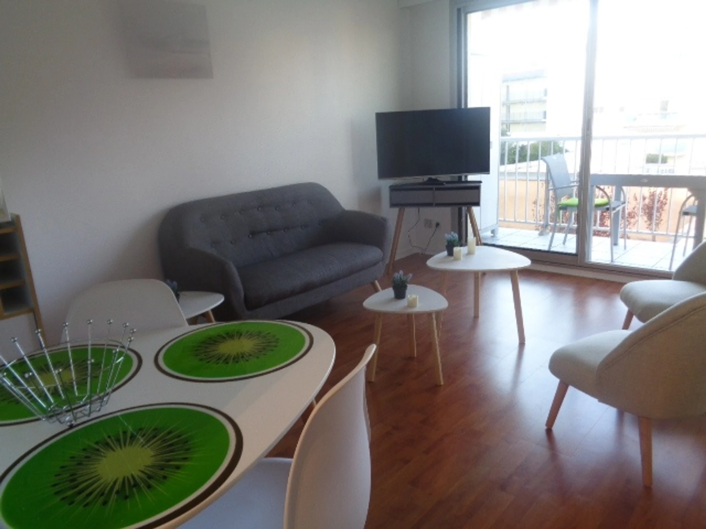 -Séjour avec 2 lits rabattables à 1 place (90x190) et coin repas, TV, donnant sur balcon sud avec MOBILIER -Kitchenette équipée : – réfrigérateur top, micro-ondes grill, 2 plaques électriques.