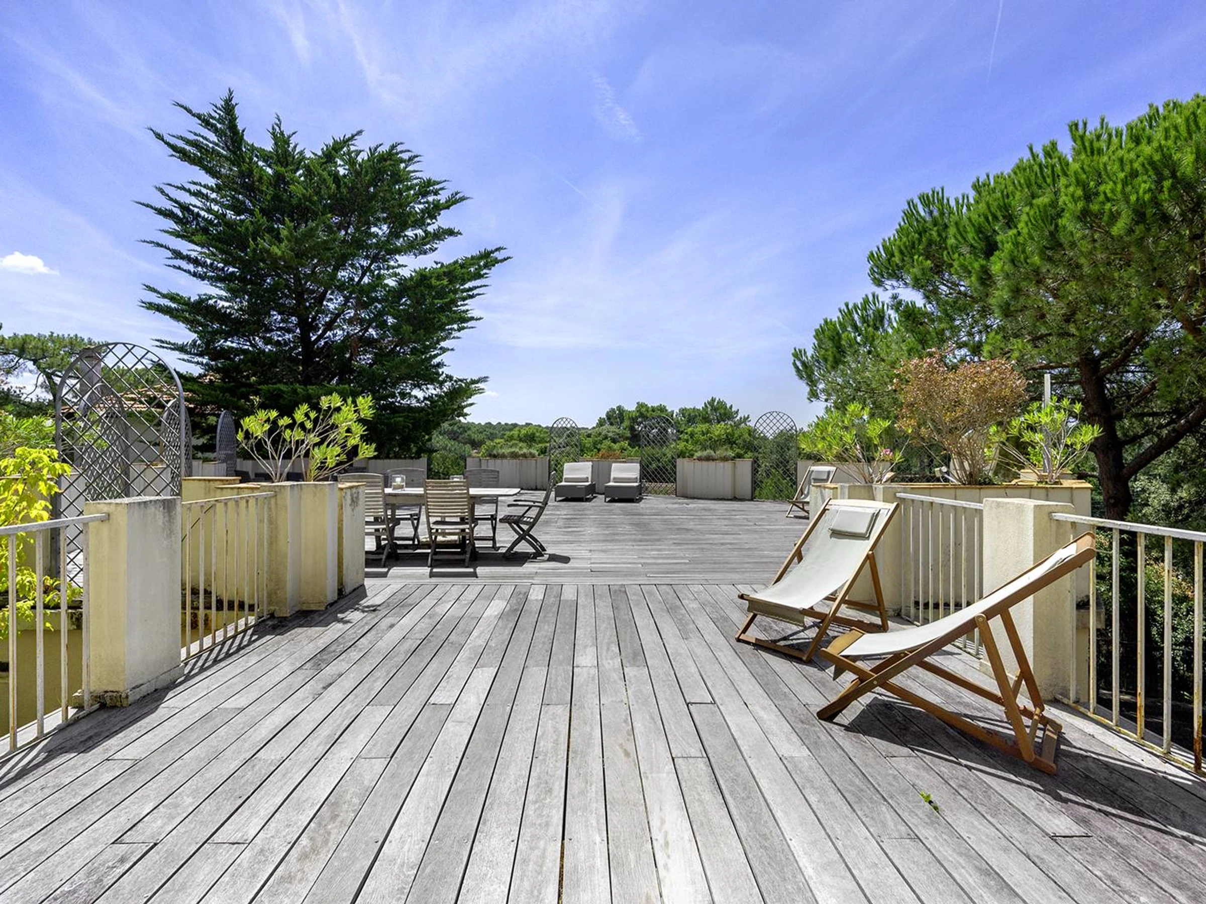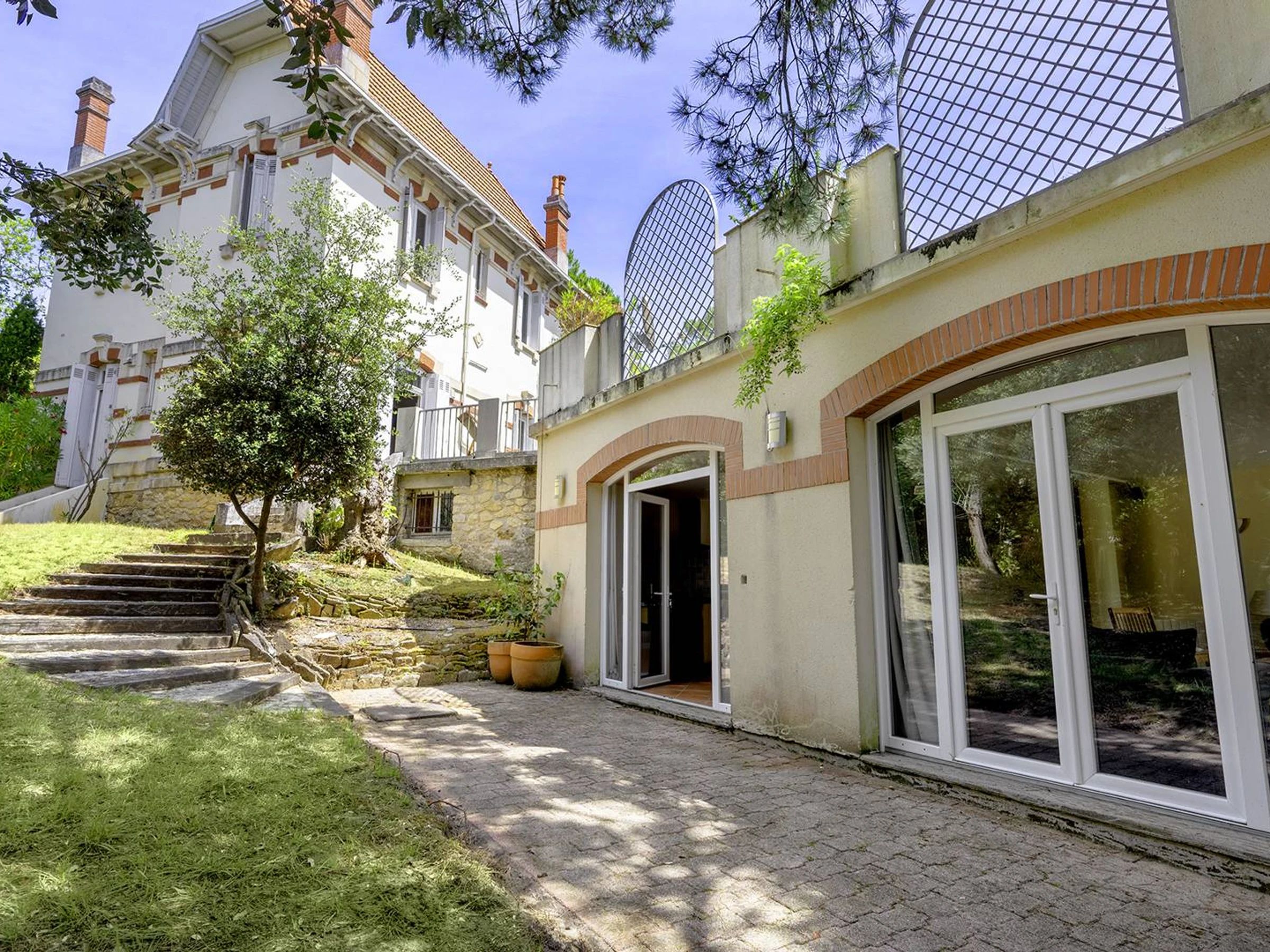 À 2 pas du Moulleau et de la Plage des Arbousiers, demeure familiale de style arcachonnais qui se compose d'une villa principale, d'une dépendance et d'une spacieuse terrasse, le tout sur un terrain de 2000 m². Le jardin s'ouvre sur une pinède qui mène directement à la plage.