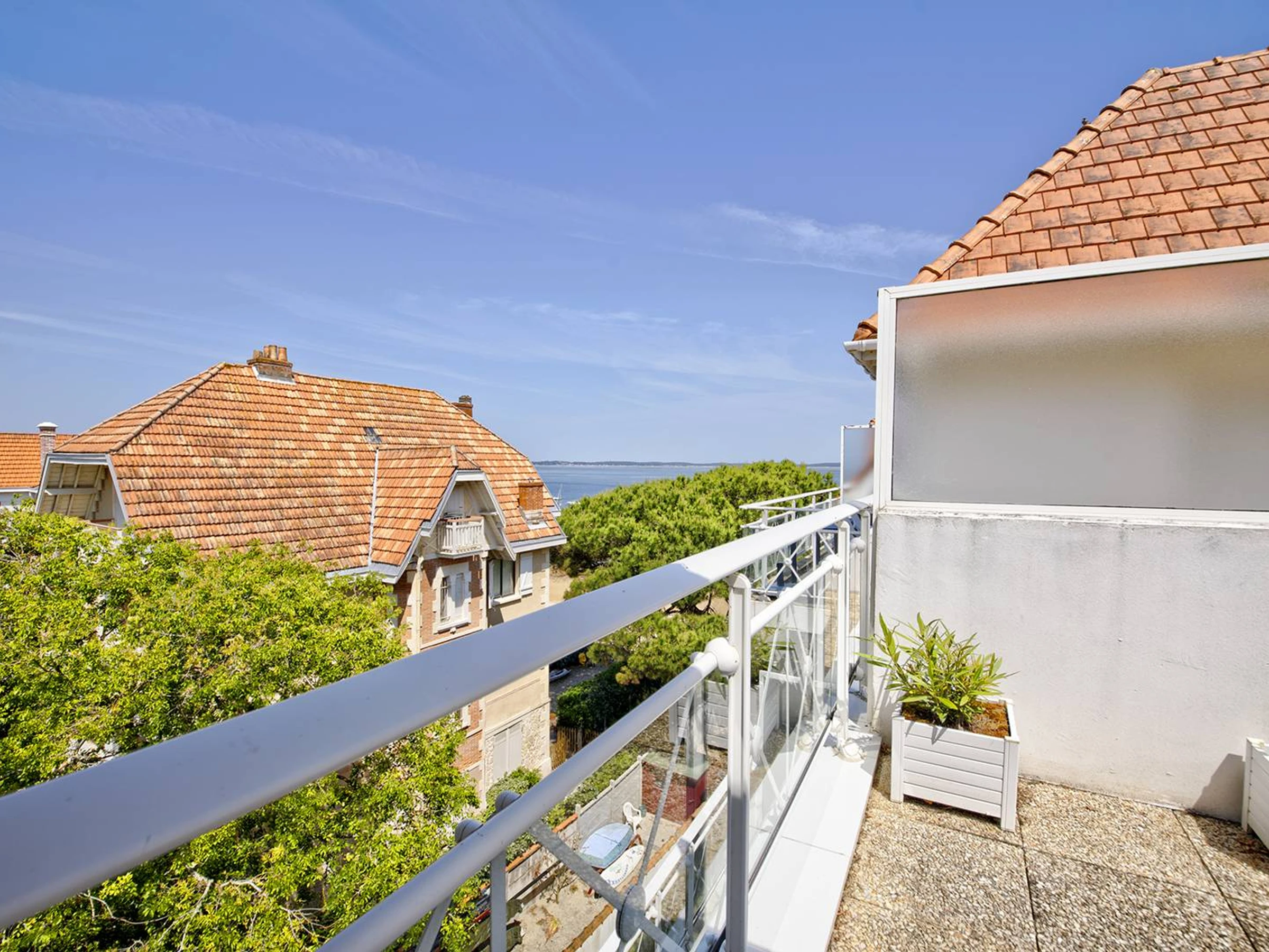 Cette résidence en première ligne offre un accès direct et privé aux plages de Pereire, avec vue sur le bassin. Situé au 4ème et dernier étage, cet appartement de standing bénéficie d'un ascenseur et de deux places de parking. Il propose 4 chambres (F5), traversant, avec balcons et terrasse.