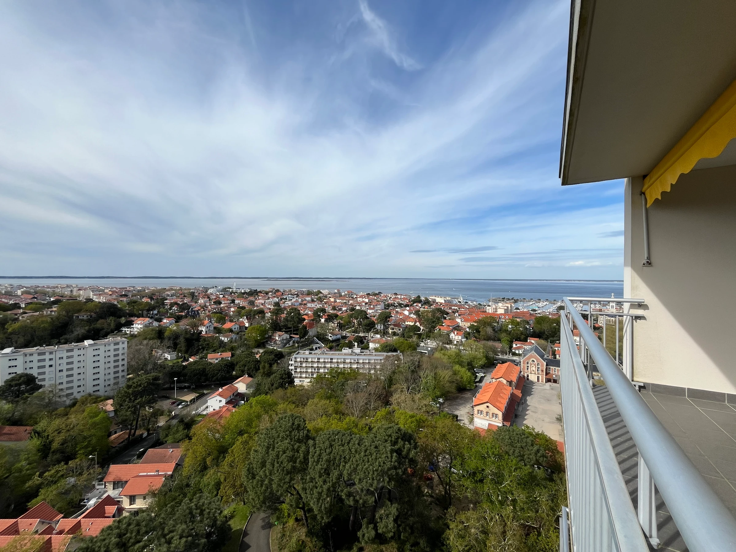 Une entrée avec un WC séparé et lave mains. Sa pièce à vivre se composant d'un double salon et d'une salle à manger, donnant sur un balcon, qui vous offre une vue imprenable sur le Bassin d'Arcachon. TV (pas de WIFI).