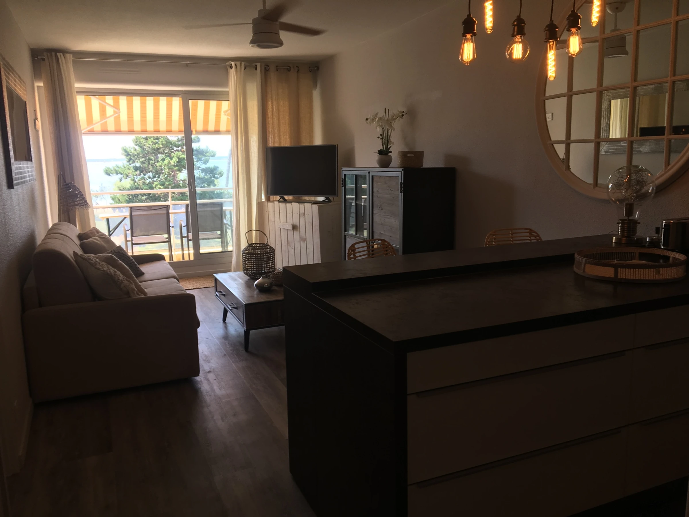 - Cuisine indépendante équipée de 4 plaques de cuisson, hotte, micro-ondes, four, réfrigérateur top avec freezer, lave-vaisselle, lave-linge / chambre avec 1 lit à 2 places (160x200) donnant sur balcon et vue bassin / cabine avec canapé-lit 2 places (133x190).