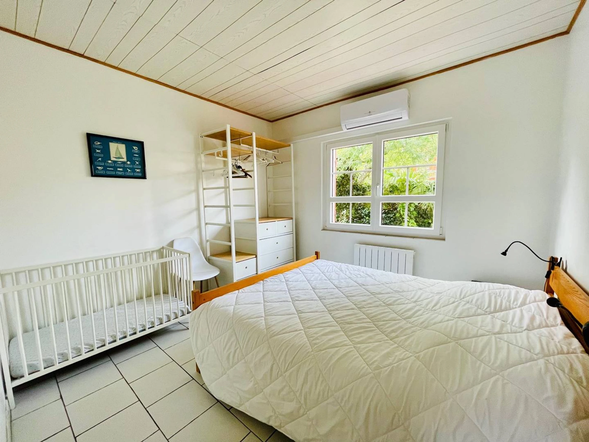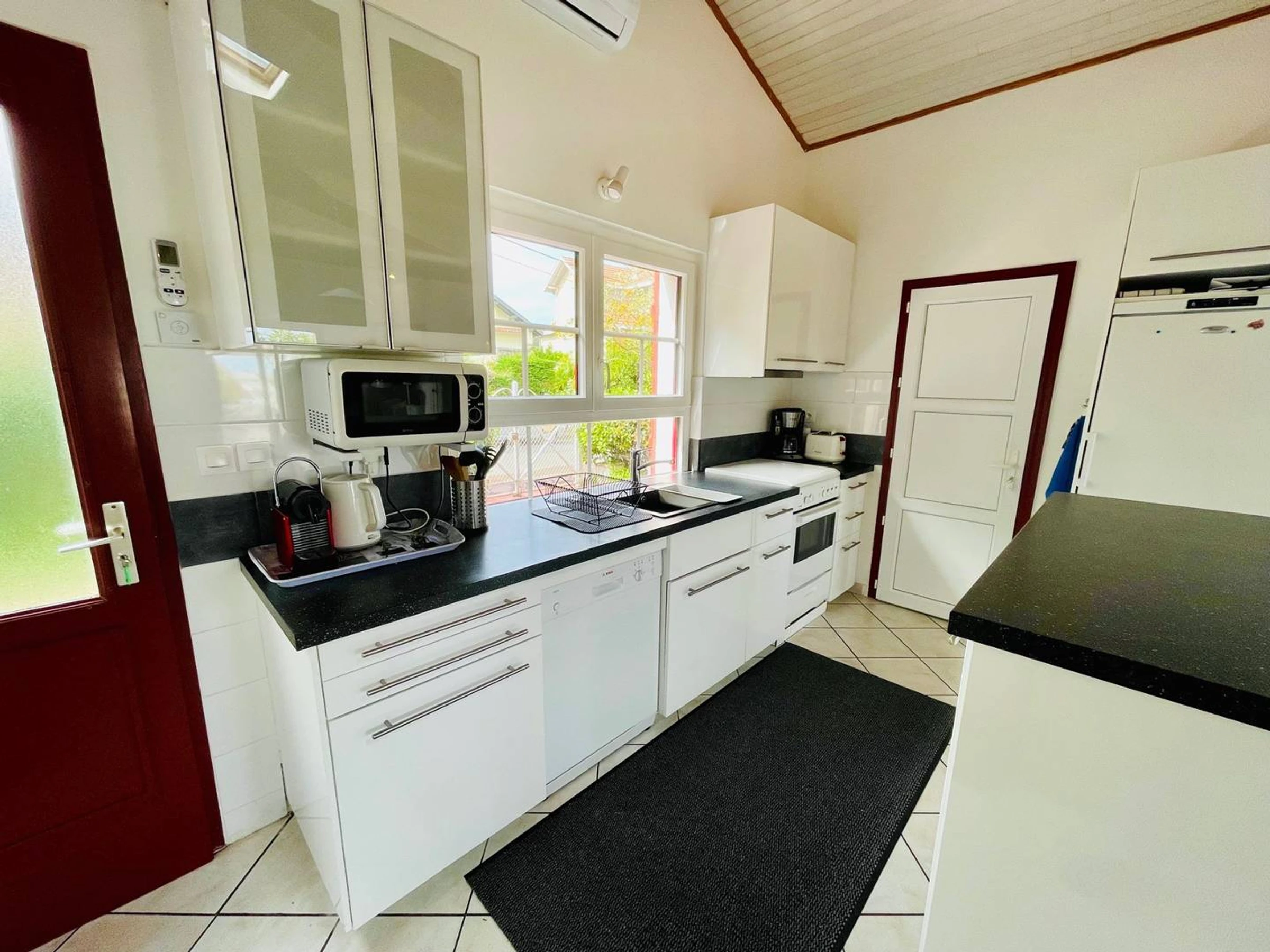 Dès l'entrée, vous découvrez une spacieuse pièce de vie climatisée, intégrant une cuisine entièrement équipée avec une gazinière à 4 feux, un four micro-ondes, un lave-vaisselle, un réfrigérateur avec compartiment congélateur et une cafetière Nespresso. La cuisine est séparée du salon par un îlot central. Le salon, qui donne sur la terrasse arrière, est agréablement aménagé avec des fauteuils, un canapé et une télévision. La chambre principale, une suite parentale, comprend un lit en 160, une salle d'eau privative avec WC et un lave-linge. Deux autres chambres : l'une est équipée d'un lit en 160 (climatisée) et l'autre propose deux lits en 90. La maison dispose également d'une salle de bain supplémentaire et de WC séparés.
