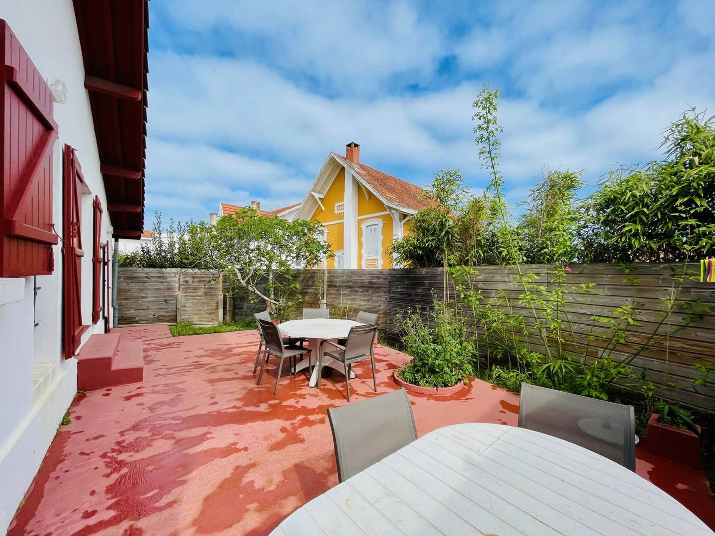 À seulement 600 mètres de la plage, dans un paisible quartier résidentiel, cette maison de style basque de plain-pied d'environ 85 m² offre des terrasses et peut accueillir jusqu'à 6 personnes.