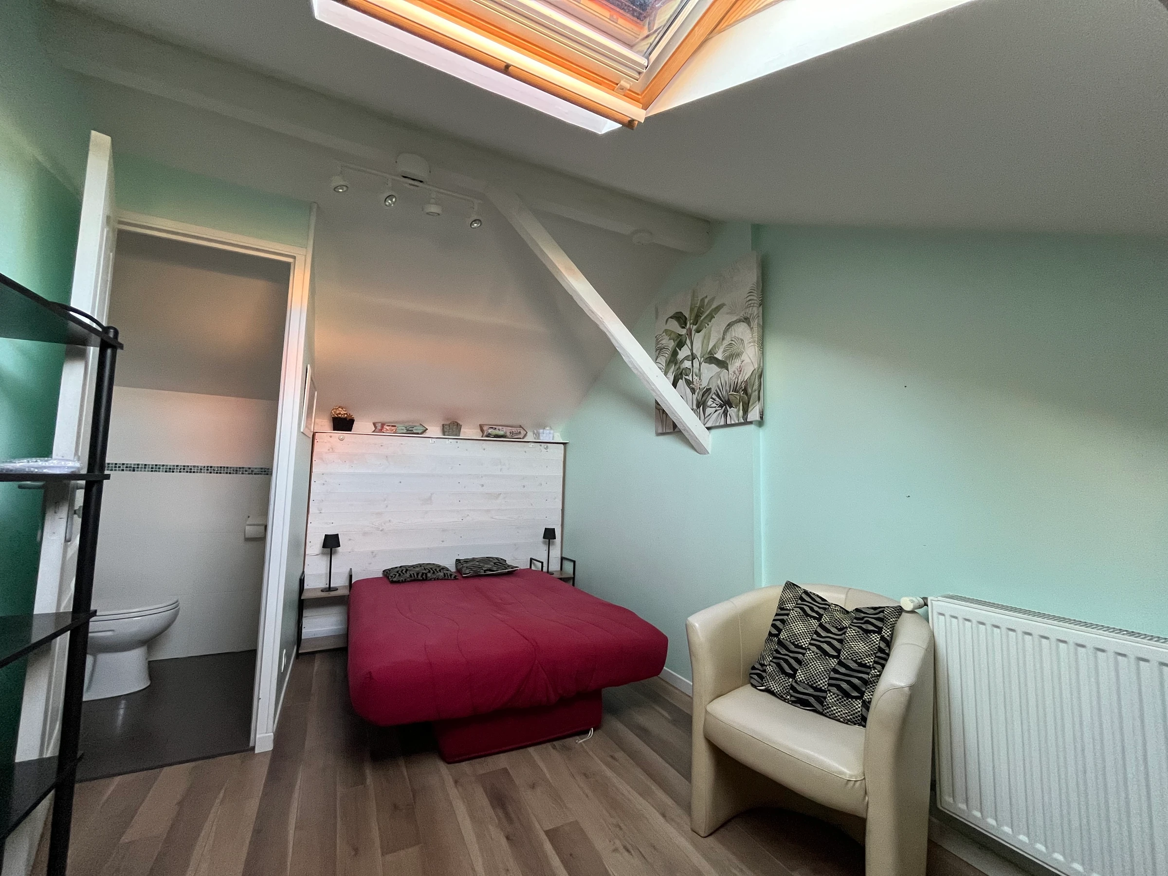 Les deux autres chambres sont en étage sous rampant, (escalier un peu raide pour y monter), elles ont chacune un point d'eau avec vasque et WC. Une possède un clic clac pour deux couchages et la dernière deux lits en 90. La maison est entièrement climatisée.
