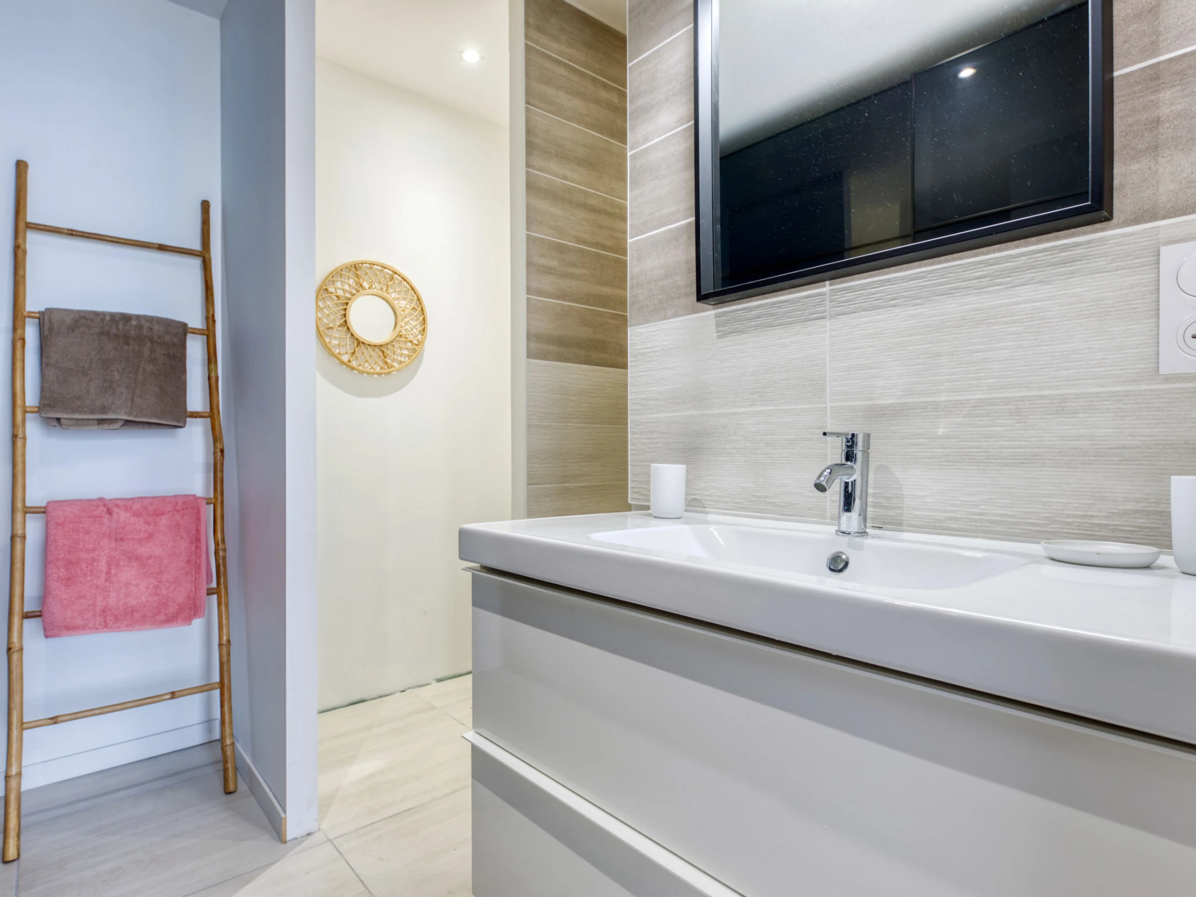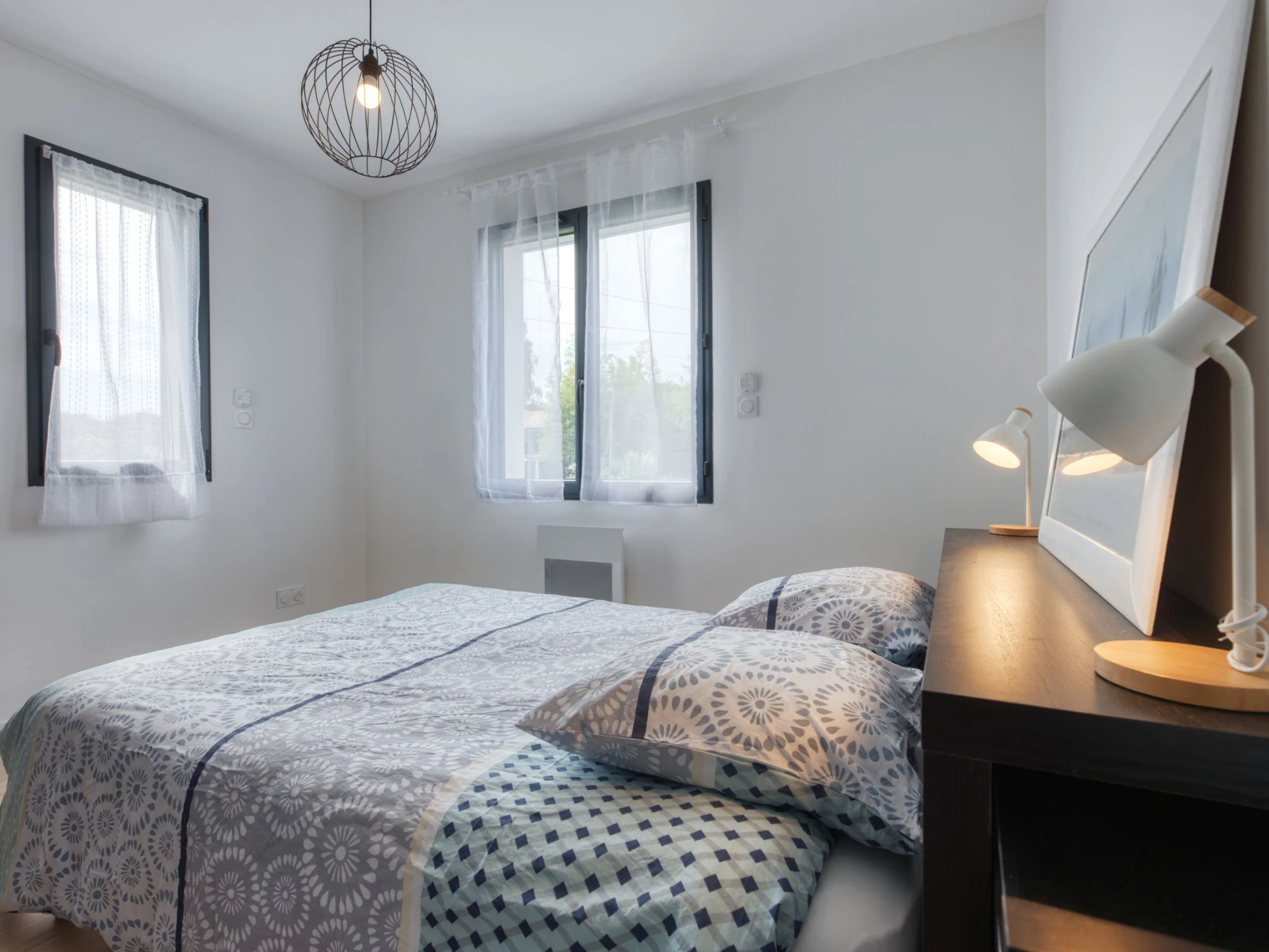 Maison mitoyenne 4 pièces 100 m2. Clair, aménagement confortable et agréable: séjour/salle à manger avec baie vitrée avec table pour les repas et TV (écran plat), air-conditionné. Sortie sur la terrasse. 1 chambre avec Dressing avec 1 grand-lit (140 cm, longueur 200 cm), douche/WC. 1 chambre avec 1 grand-lit (140 cm, longueur 200 cm). 1 chambre avec 2 lits (90 cm, longueur 200 cm). Cuisine ouverte (four, lave-vaisselle, 3 plaques à induction, grille-pain, bouilloire électrique, micro-ondes, cafetière électrique, Capsules pour machine à café (Nespresso) (NON INCLUSES)). Douche, WC séparé. Chauffage. Grande terrasse 35 m2, situation est et situation nord. Meubles de terrasse, barbecue (portable), chaises longues (2). A disposition: lave-linge, fer à repasser, chaise haute pour enfant, lit bébé, sèche-cheveux. Internet (Connexion WIFI, gratuit). Veuillez noter: adapté(e) aux familles. Maison non-fumeur. Détecteur de fumée. Annonce d'un particulier (art 155, IV du CGI).
