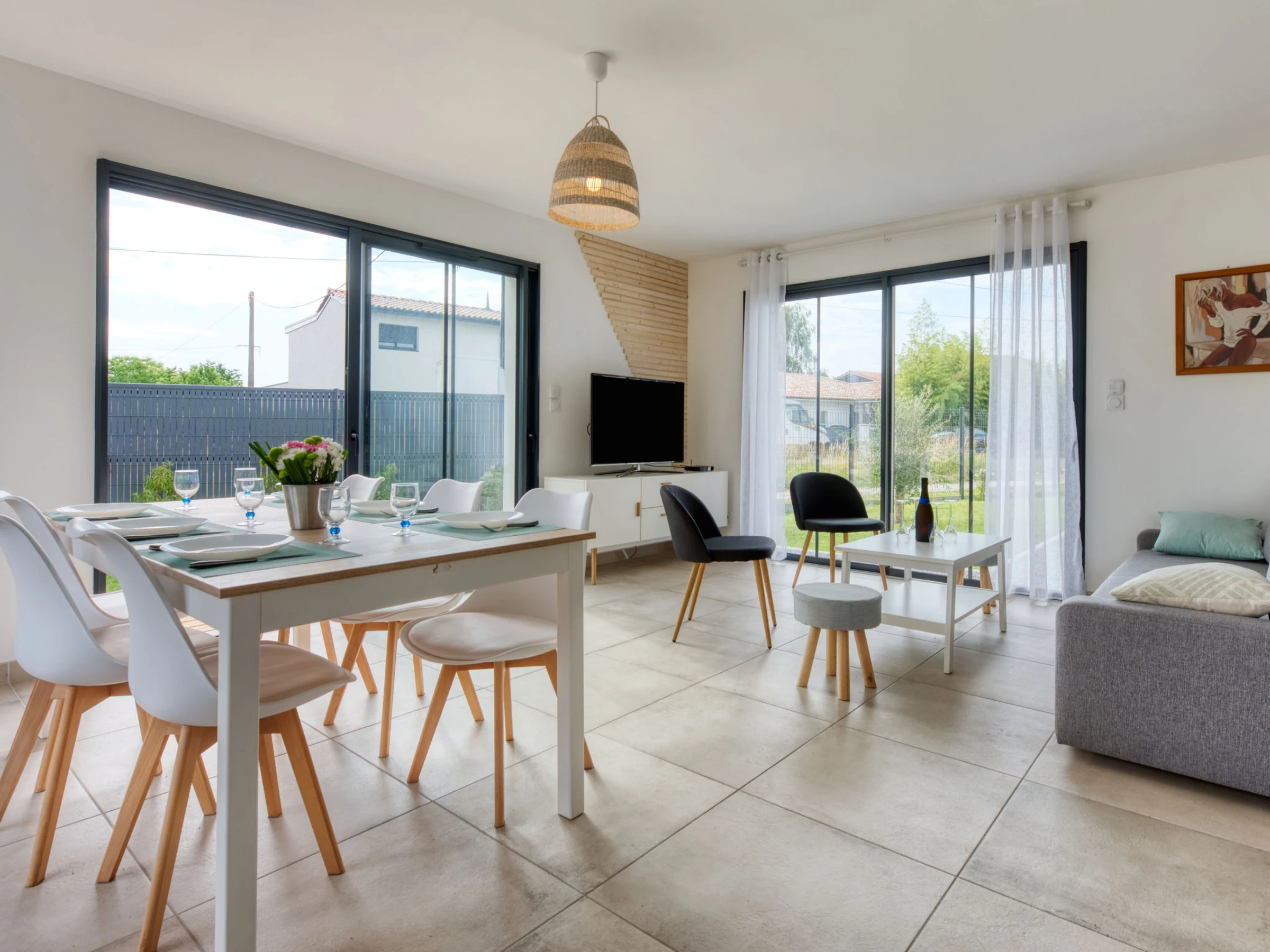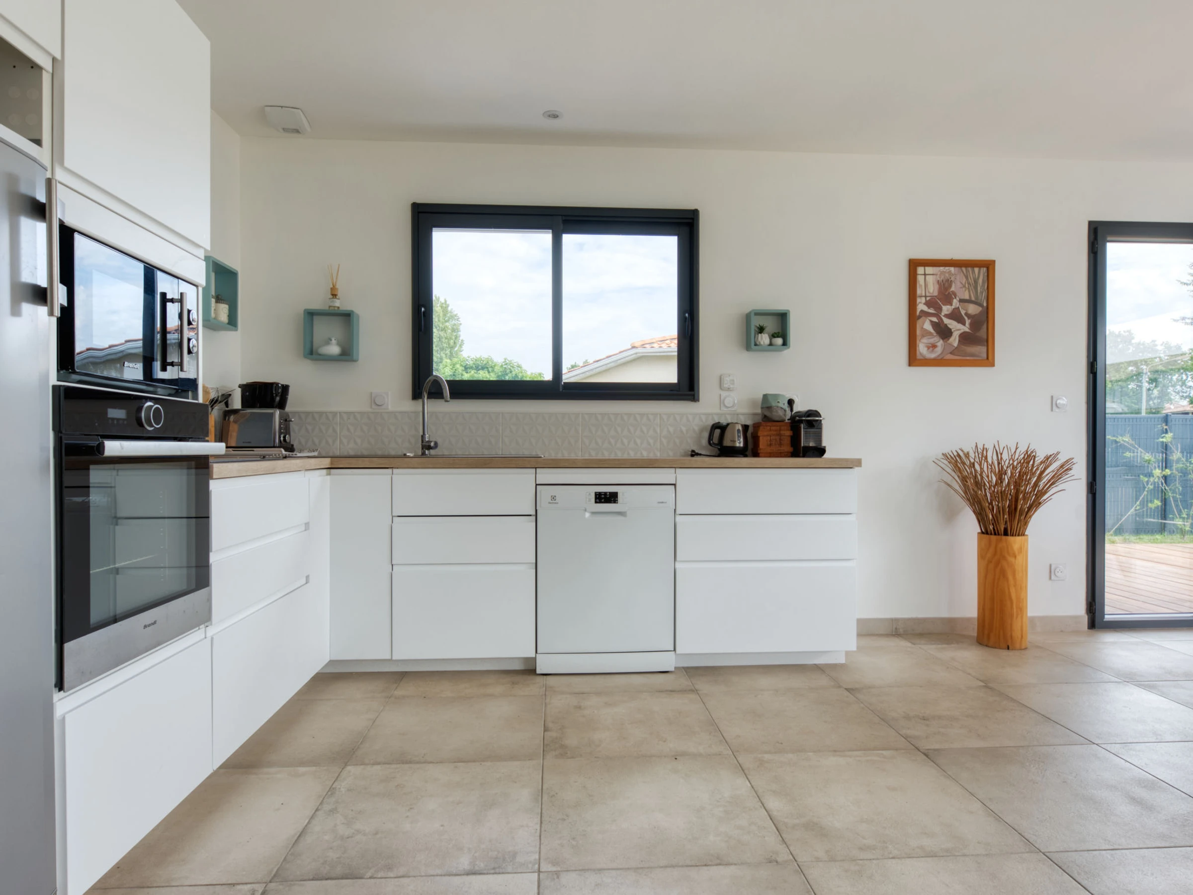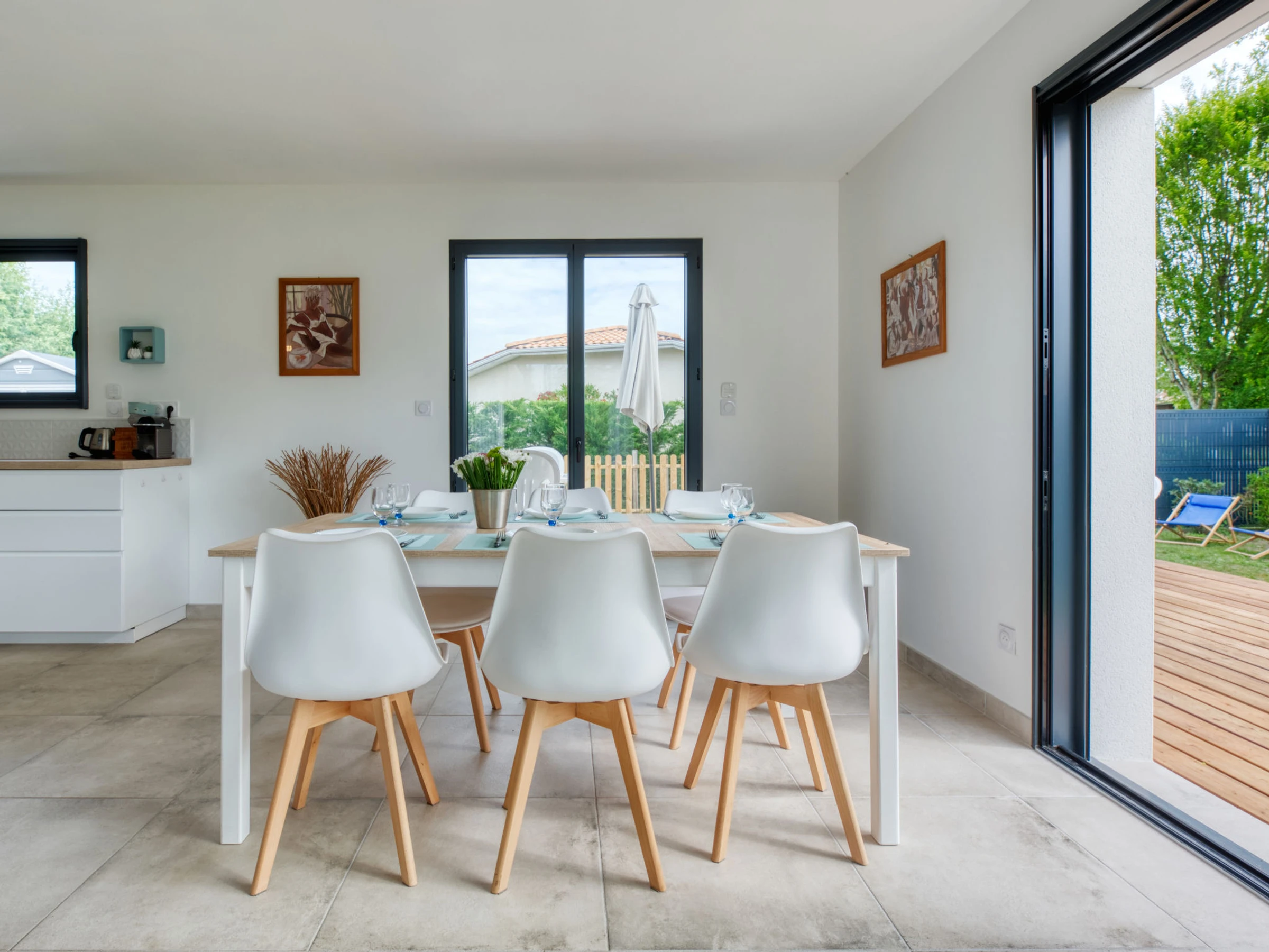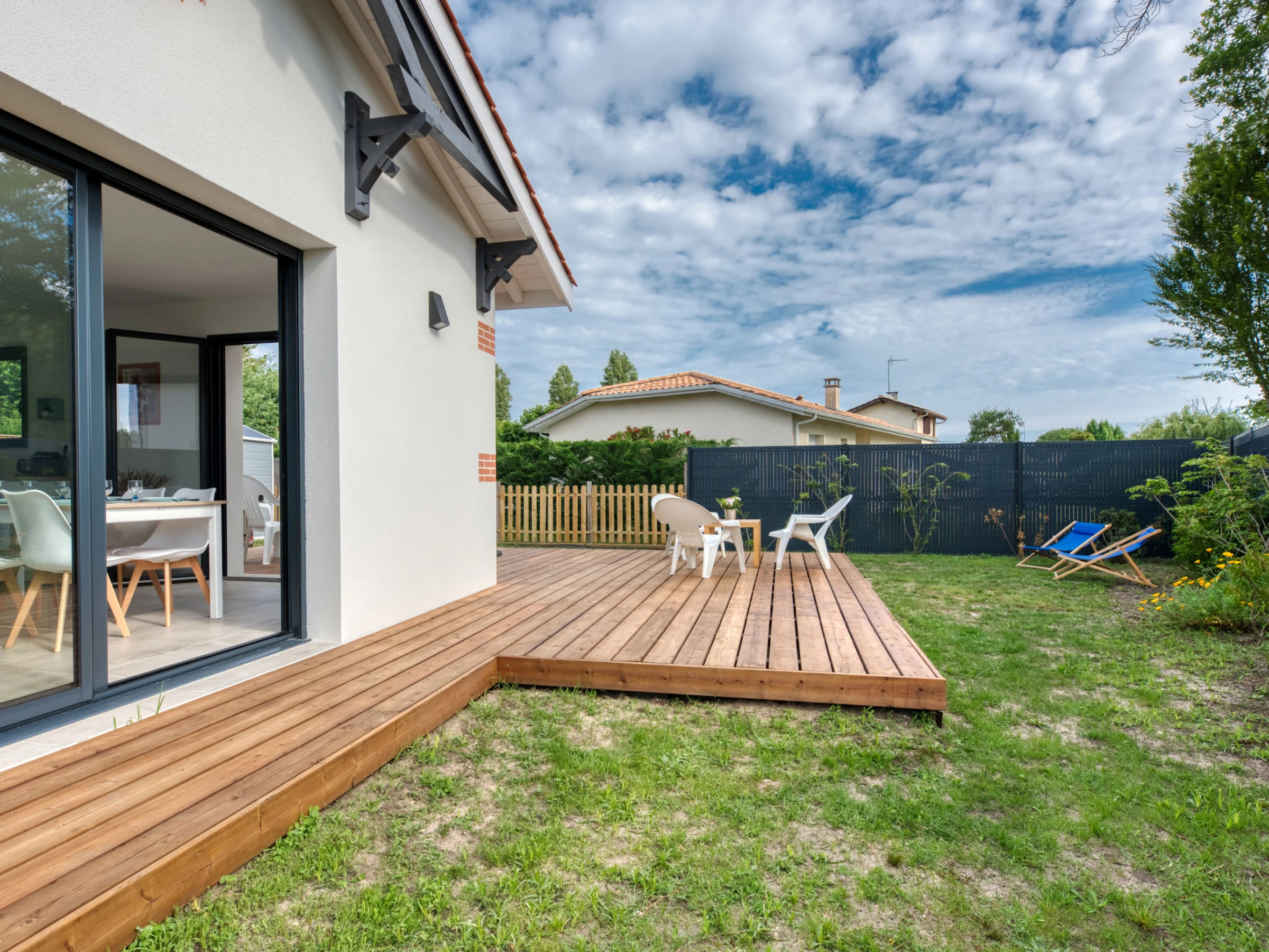 La Teste De Buch à 5 km de Arcachon: Belle maison individuelle moderne "Séoube Testerine", année de construction 2023. À 1.5 km du centre de La-Teste-de-Buch, à 5.5 km du centre d'Arcachon, à 25 km du centre de Biscarrosse, à 5 km de la mer, à 5 km de la plage. A usage privé: terrain 300 m2 (clôturé), place de parking (pour 2 voitures) près de la maison sur le terrain. Magasin d'alimentation 1.8 km, supermarché 1.7 km, centre commercial 2 km, restaurant 800 m, bar 2.4 km, boulangerie 1.9 km, gare ferroviaire "Le Teste de Buch" 2.5 km, plage de sable "La Hume" 5 km, parc "La Chêneraie" 4.2 km, centre thermal "Thalazur" 6.4 km. Port plaisance 2.5 km, terrain de golf (18 trous) 3.6 km. Attractions à proximité: Dune du Pyla 6.7 km, Bassin Aventures 5.1 km, Marché Municipal 1.7 km, Cinéma Grand Ecran 2.3 km, Navette Maritime pour le Cap Ferret 5.8 km, ArcaJetMarine 5.1 km. Les lacs connus sont facilement accessibles: Lac de la Magdeleine 6.4 km, Lac de Cazaux 11.9 km. Environnement très sensible au bruit. Silence et bonne tenue exigés.