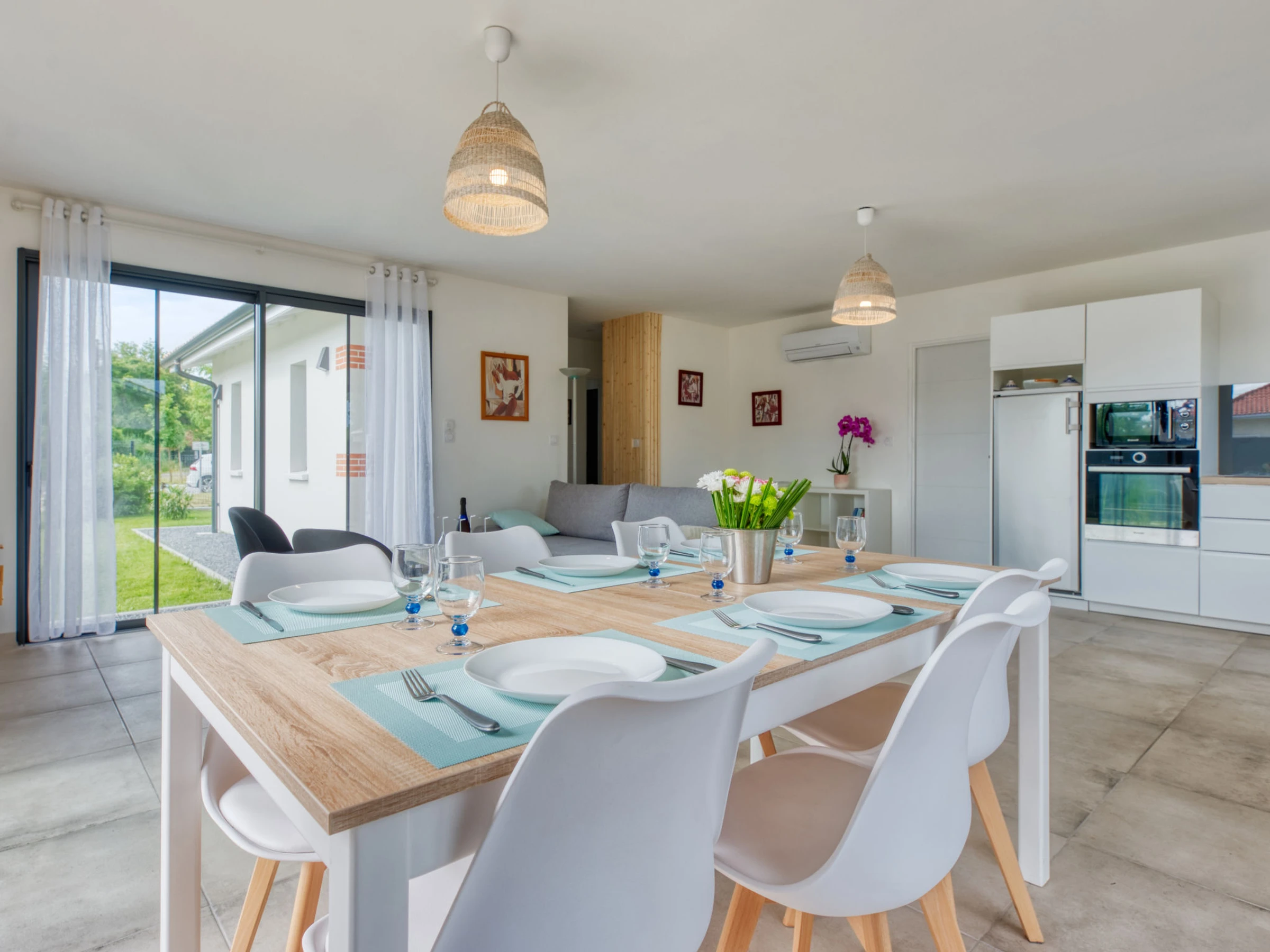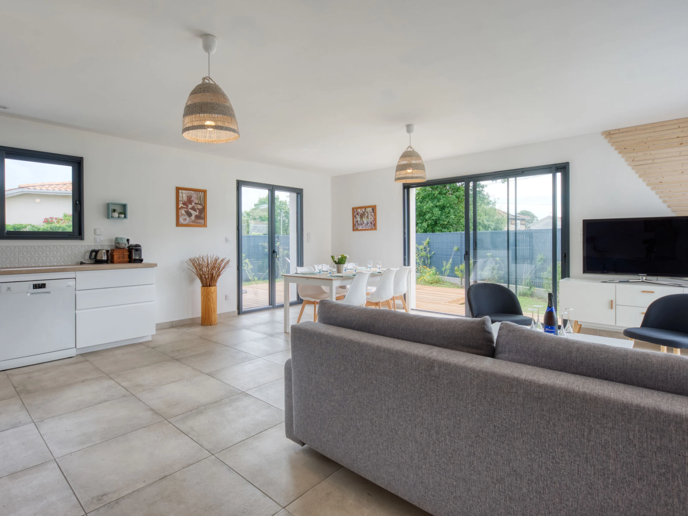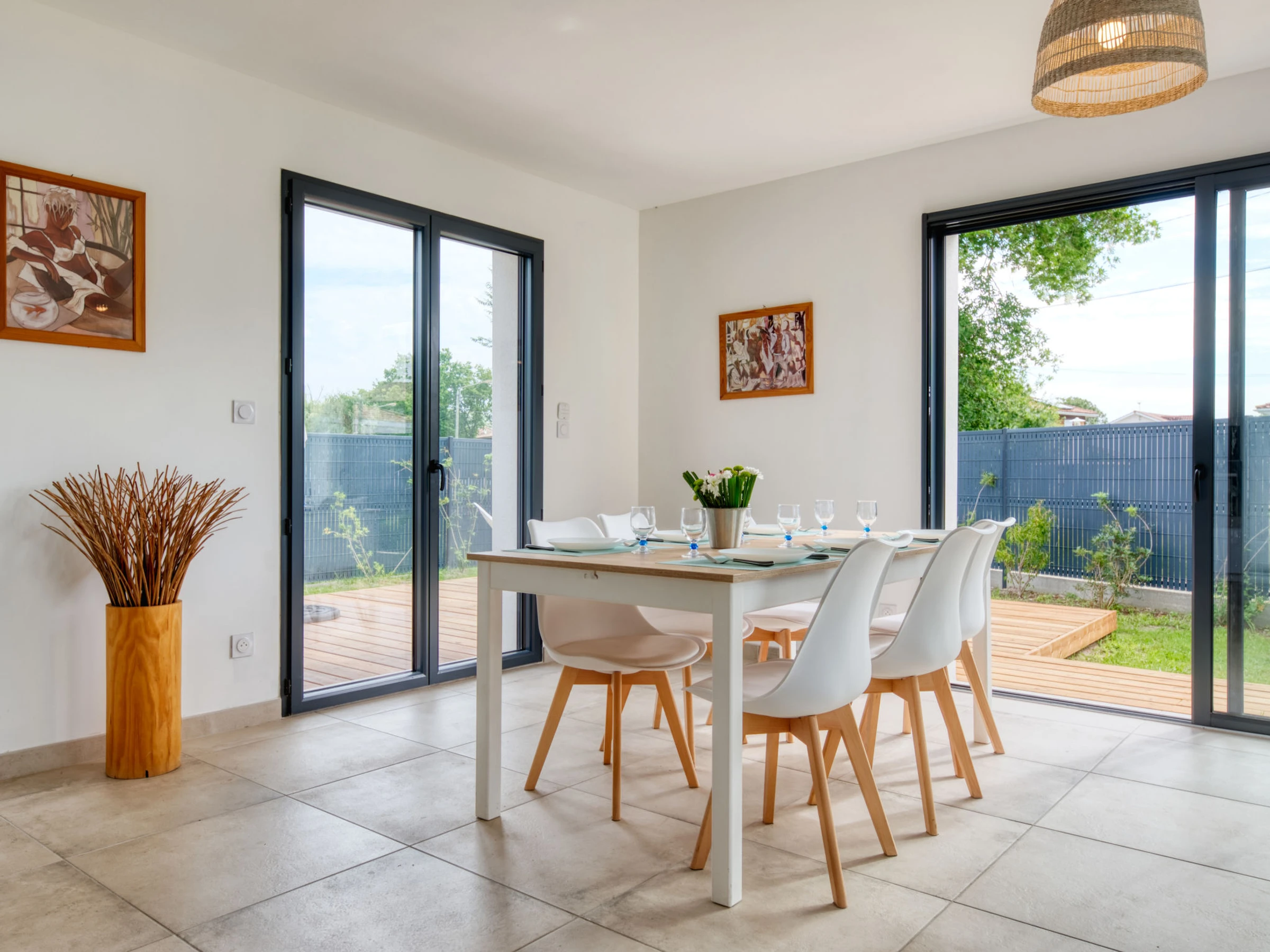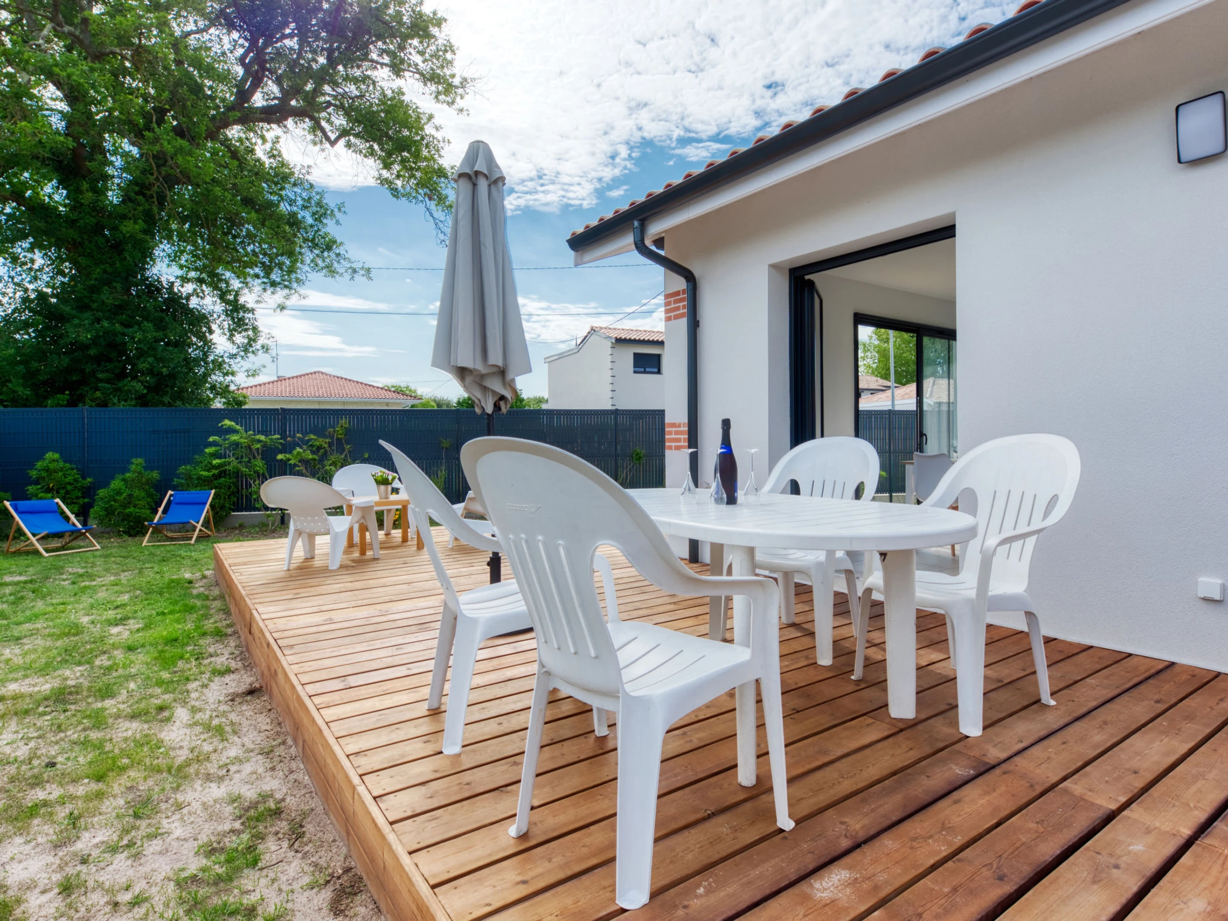 La Teste De Buch à 5 km de Arcachon: Belle maison individuelle moderne "Séoube Testerine", année de construction 2023. À 1.5 km du centre de La-Teste-de-Buch, à 5.5 km du centre d'Arcachon, à 25 km du centre de Biscarrosse, à 5 km de la mer, à 5 km de la plage. A usage privé: terrain 300 m2 (clôturé), place de parking (pour 2 voitures) près de la maison sur le terrain. Magasin d'alimentation 1.8 km, supermarché 1.7 km, centre commercial 2 km, restaurant 800 m, bar 2.4 km, boulangerie 1.9 km, gare ferroviaire "Le Teste de Buch" 2.5 km, plage de sable "La Hume" 5 km, parc "La Chêneraie" 4.2 km, centre thermal "Thalazur" 6.4 km. Port plaisance 2.5 km, terrain de golf (18 trous) 3.6 km. Attractions à proximité: Dune du Pyla 6.7 km, Bassin Aventures 5.1 km, Marché Municipal 1.7 km, Cinéma Grand Ecran 2.3 km, Navette Maritime pour le Cap Ferret 5.8 km, ArcaJetMarine 5.1 km. Les lacs connus sont facilement accessibles: Lac de la Magdeleine 6.4 km, Lac de Cazaux 11.9 km. Environnement très sensible au bruit. Silence et bonne tenue exigés.