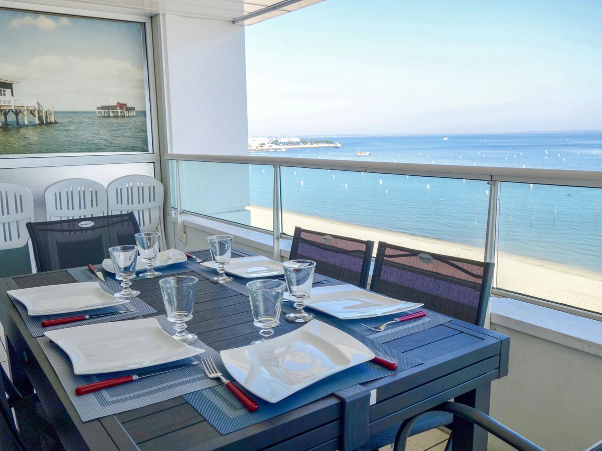 Apt 3 pièces 90 m2 au 2ème étage. Spacieux, aménagement confortable et agréable: séjour/salle à manger avec TV et écran plat. Sortie sur la terrasse. 1 chambre avec 1 grand-lit (1 x 160 cm). Sortie sur le balcon. 1 chambre avec 1 grand-lit (1 x 140 cm). Sortie sur le balcon. Cuisine (four, lave-vaisselle, 4 plaques à induction, four micro-ondes, congélateur, gril, cafetière électrique). Salle de bains, douche, 2 WC séparés. Chauffage au gaz. 2 balcons, situation sud-ouest balcon, situation nord-est terrasse. Meubles de terrasse, mobilier de balcon, chaises longues (2). A disposition: lave-linge, sèche-linge, fer à repasser, sèche-cheveux. Internet (Connexion WIFI, gratuit). Garage (2 Voitures). Veuillez noter: détecteur de fumée. Superbe vue sur le bassin d'Arcachon.